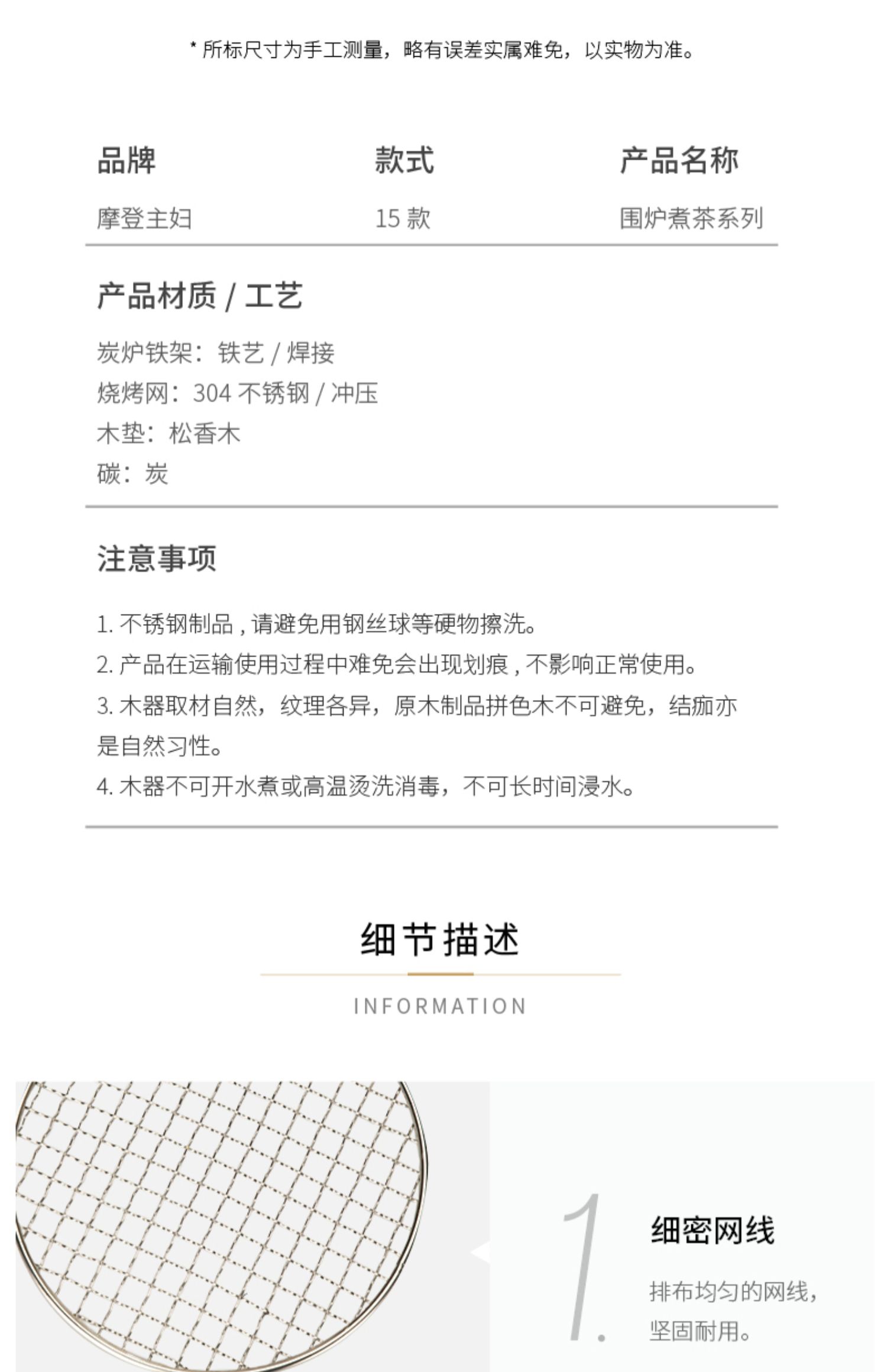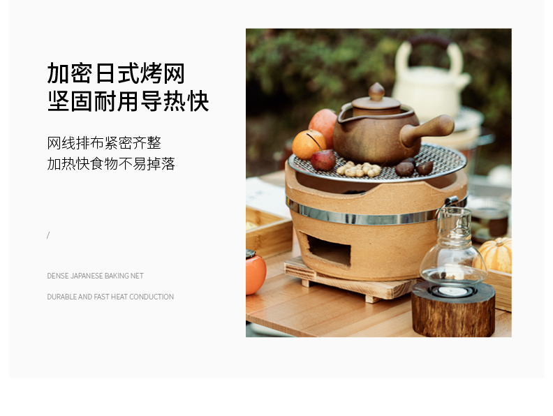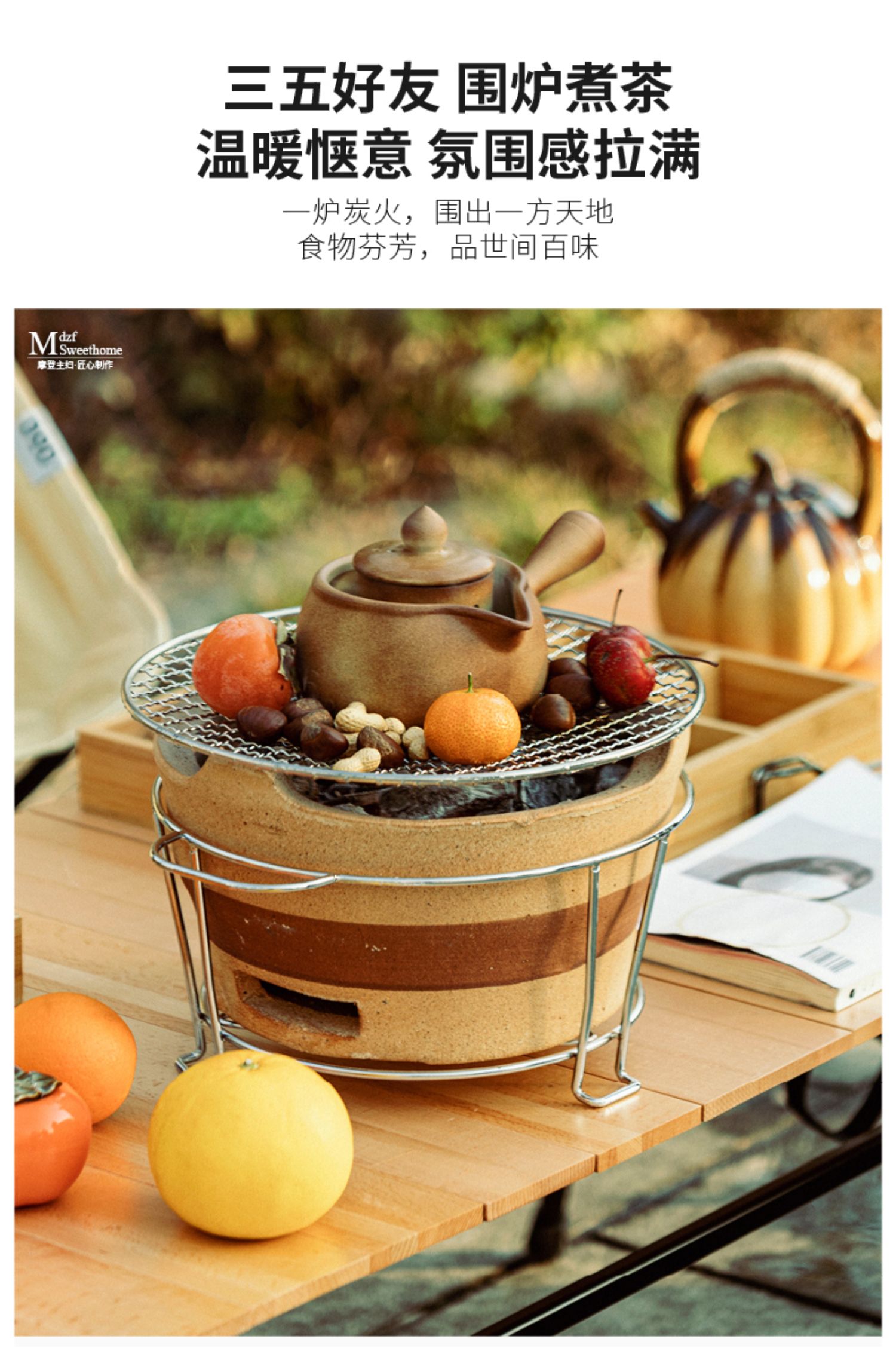 摩登主妇围炉煮茶家用室内烤网304不锈钢圆形茶壶电陶炉烧烤架网