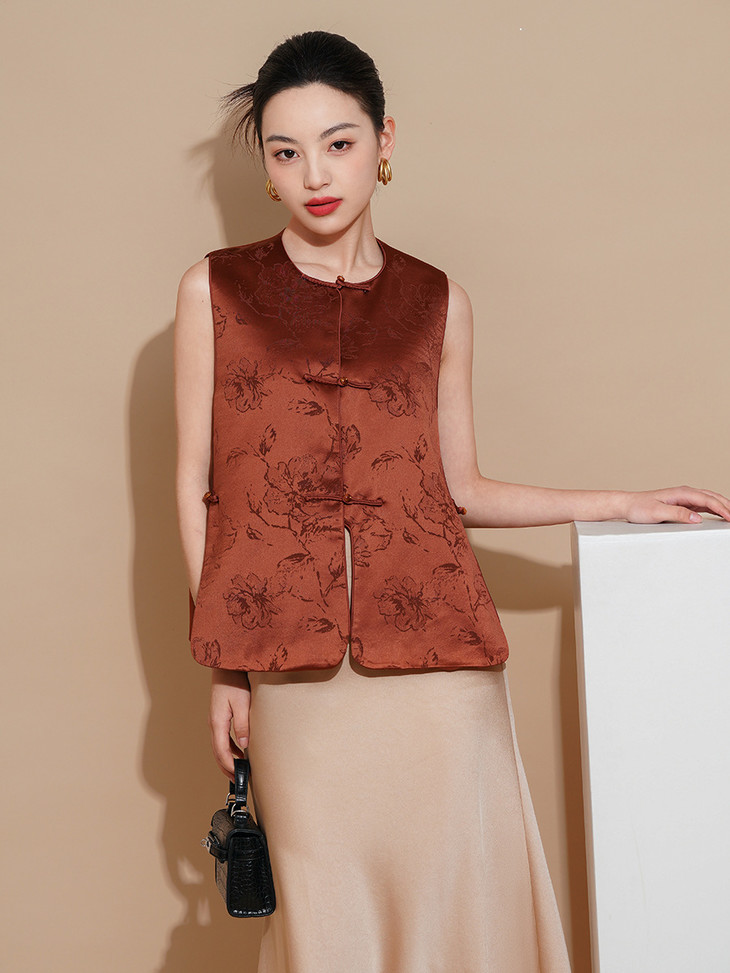 醋酸提花马甲高货唐装背心外搭坎肩LHS-MC01