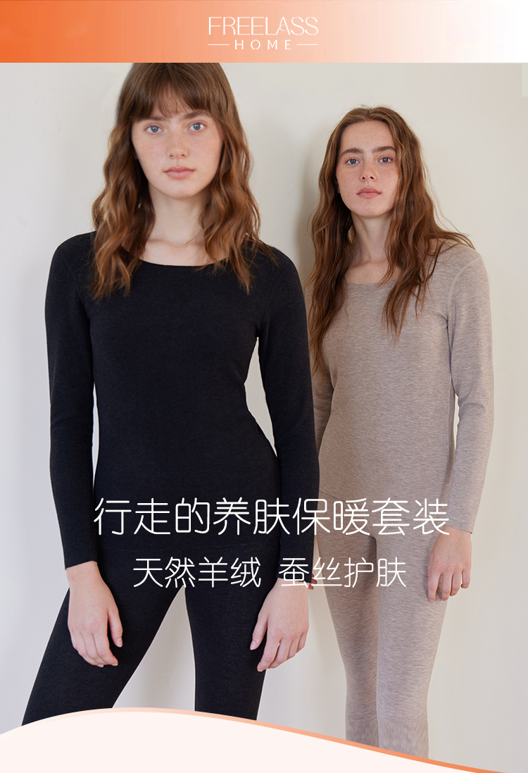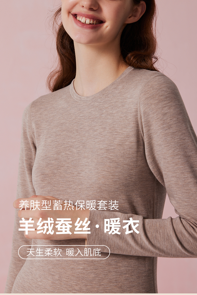 弗利少女羊绒蚕丝保暖内衣男女士打底衫紧身长袖加厚秋衣秋裤套装