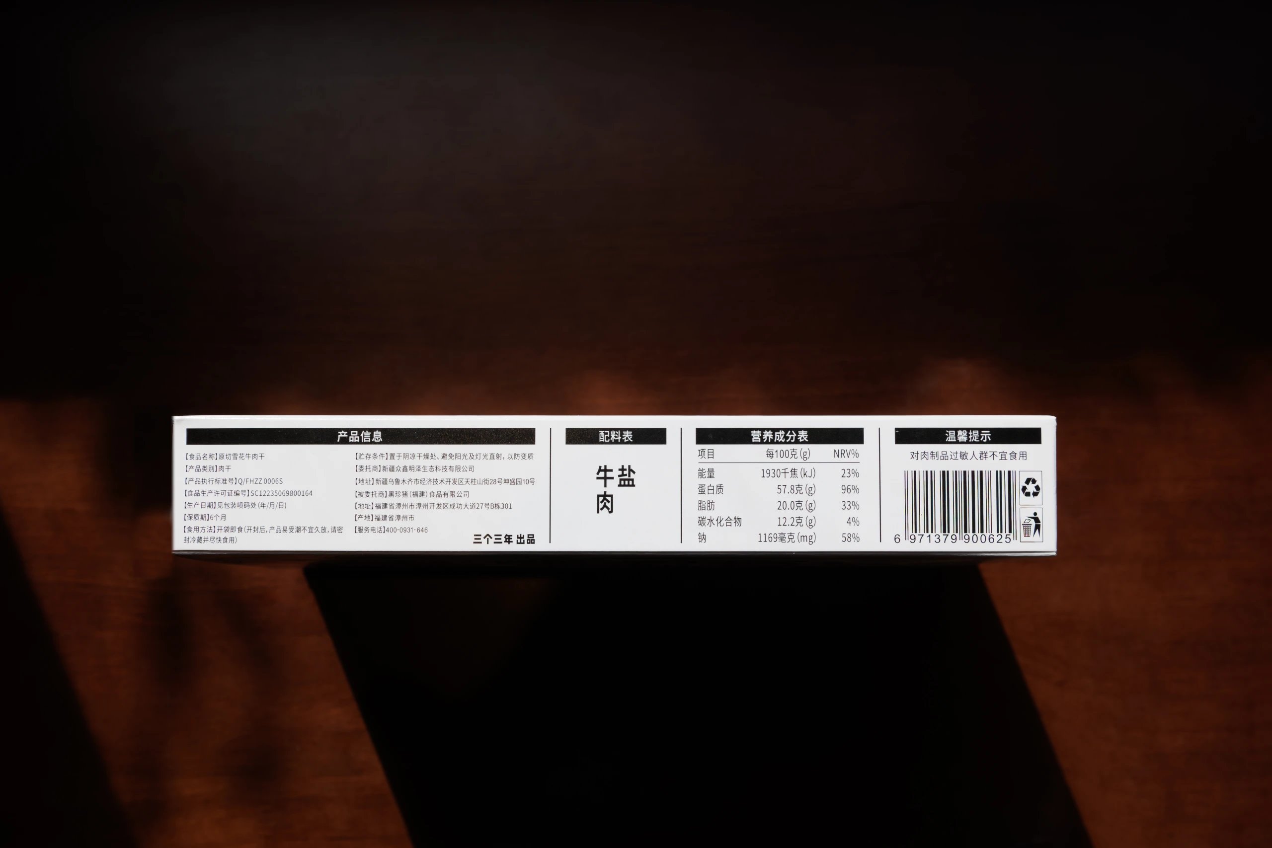 【品名】原切雪花牛肉干 【规格】50g/盒 【生产日期】近期 【保质期】6个月 【储存方式】置于阴凉干燥处、避光保存 【产地】福建省漳州市 【发货地】西安 【发货方式】随机不指定 【发货时效】48小时内 【不发货地区】港,澳,台 【加运费区域】新疆,西藏,海南+15元 【致敏物质】对肉质过敏人群不宜食用 【售后标准】下单即默认除货品损坏或质量问题,影响正常食用外,不接受退单。收到后请先开箱验货,如有问题请和快递面单一起,12小时内拍照给客服处理,如因个人原因造成的货品损坏,不在售后范围内,敬请谅解。