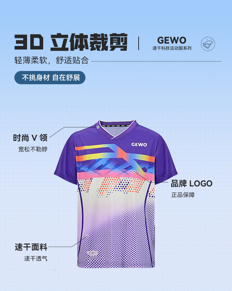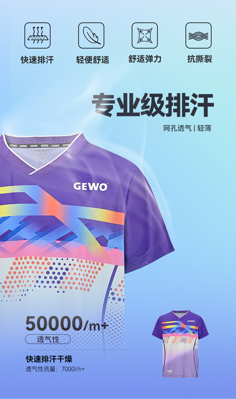 GEWO杰沃F17传奇专业乒乓球服捷沃运动T恤短袖比赛服轻薄透气速干面料