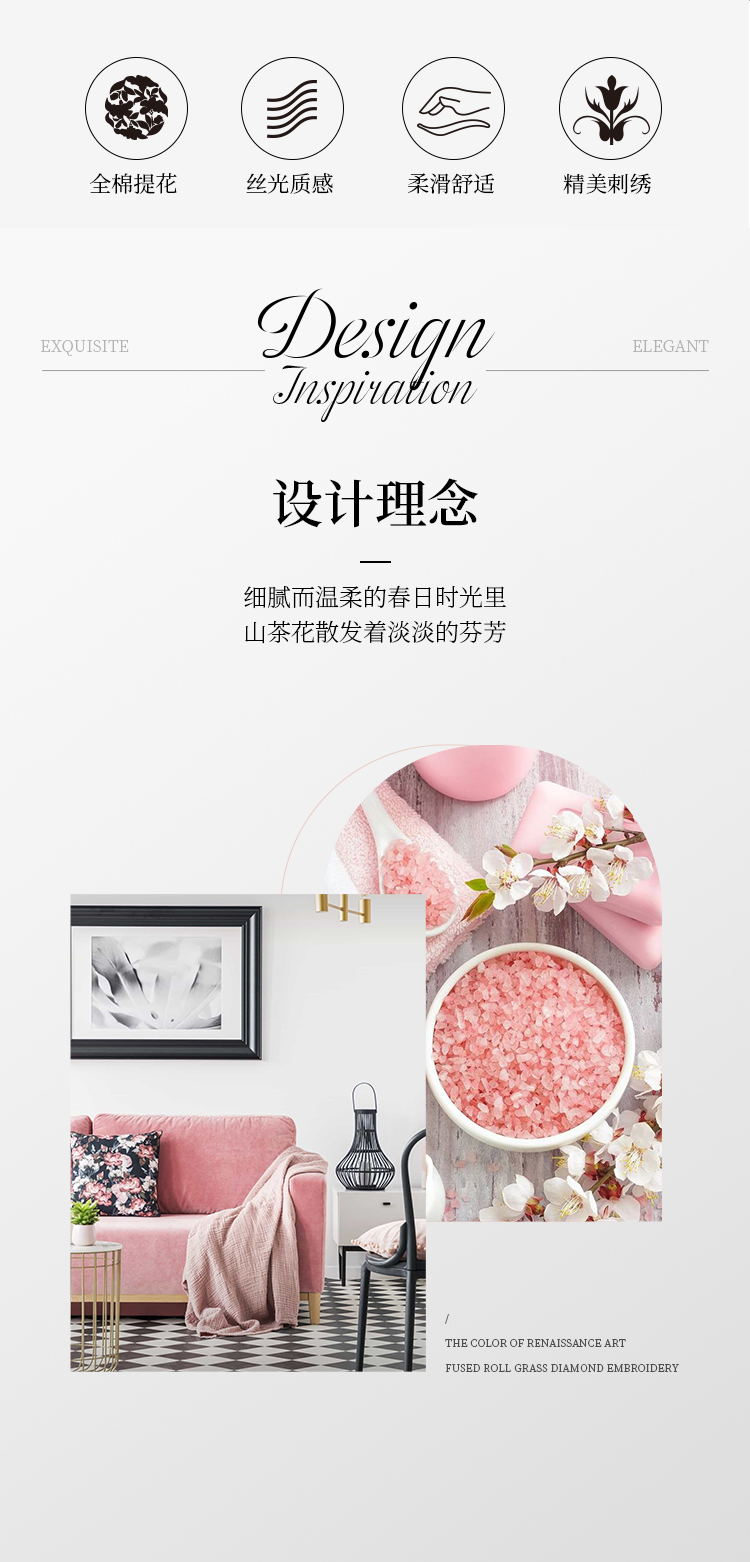 多喜爱 全棉提花四件套 山茶日记 丝光质感 柔滑舒适精美刺绣 温馨粉亲肤纯棉立体提花经典套件提花套件三方拼边设计礼盒包装