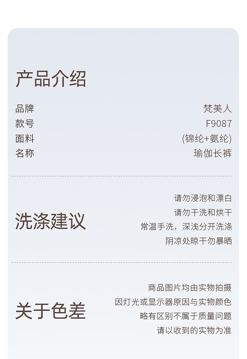 梵美人 F8095 瑜伽九分裤 莱卡云柔 无松紧 无尴尬线