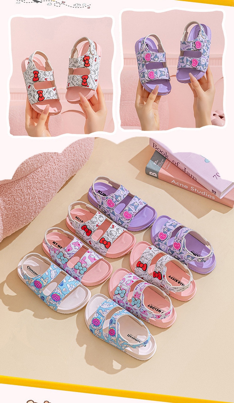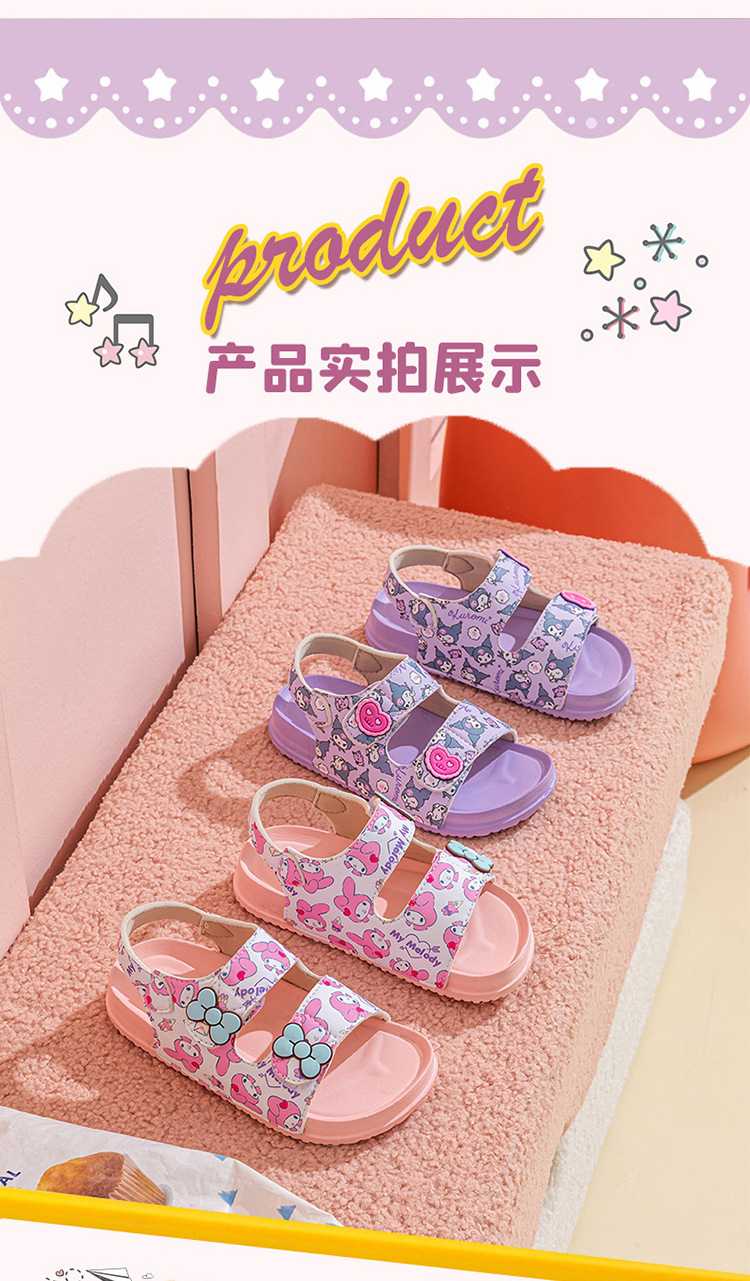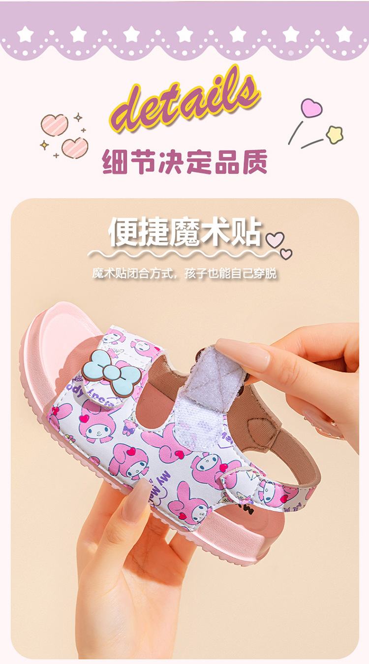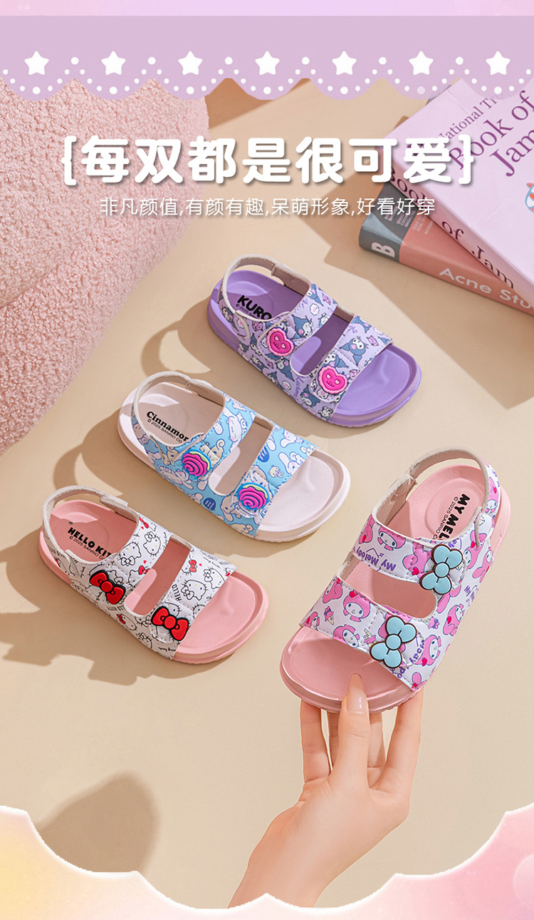 【有颜有趣,呆萌形象,好看好穿】三丽鸥夏季新款 卡通魔术扣凉鞋 女童沙滩一字凉拖鞋 中童库洛米鞋子-QA