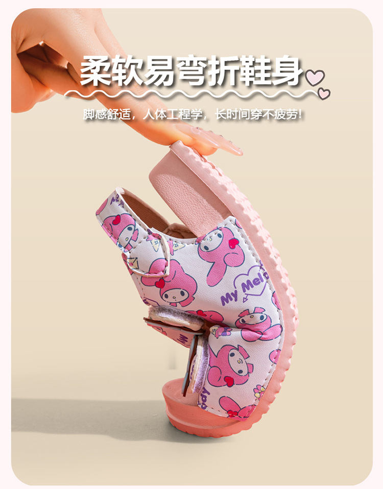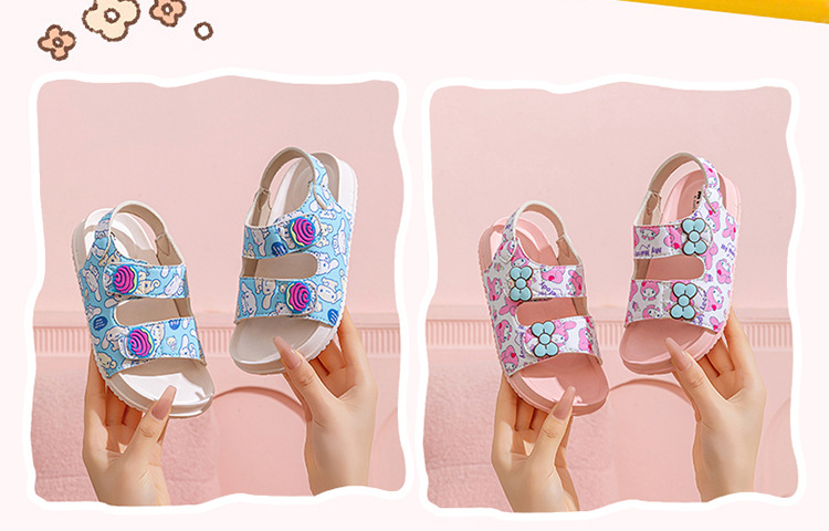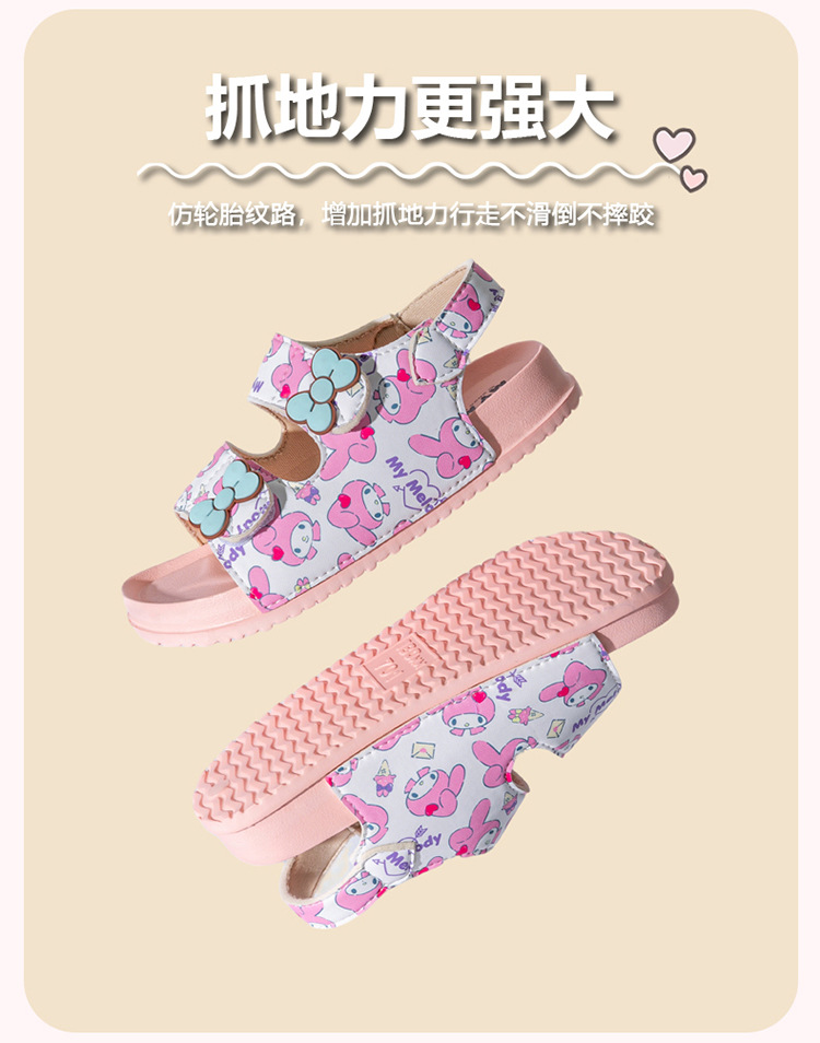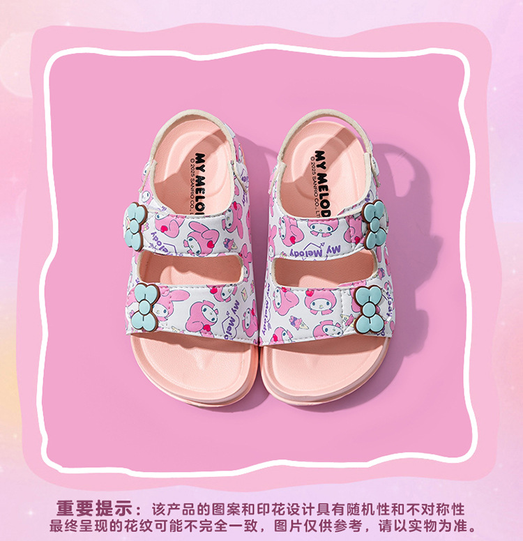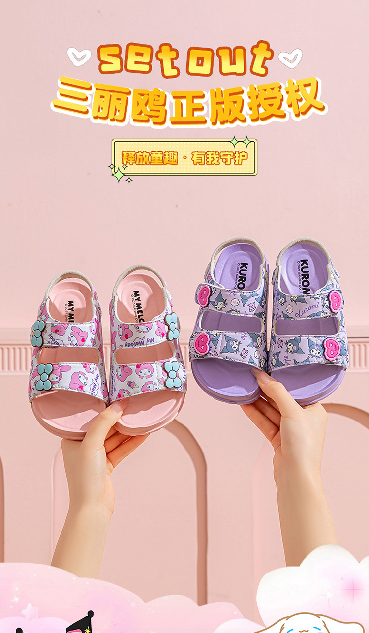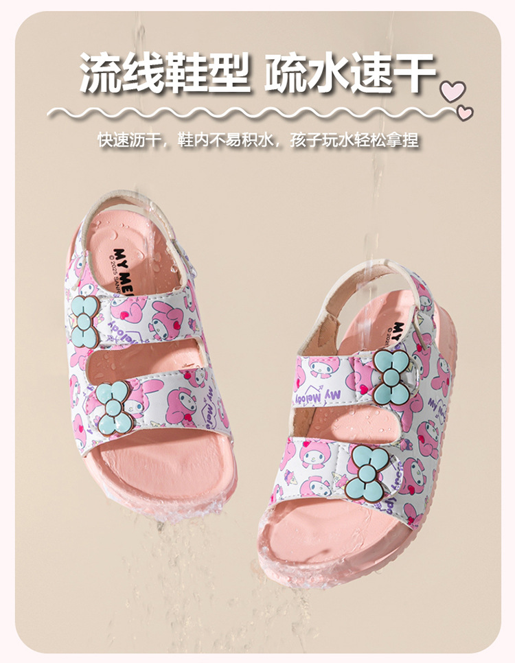 【有颜有趣,呆萌形象,好看好穿】三丽鸥夏季新款 卡通魔术扣凉鞋 女童沙滩一字凉拖鞋 中童库洛米鞋子-QA