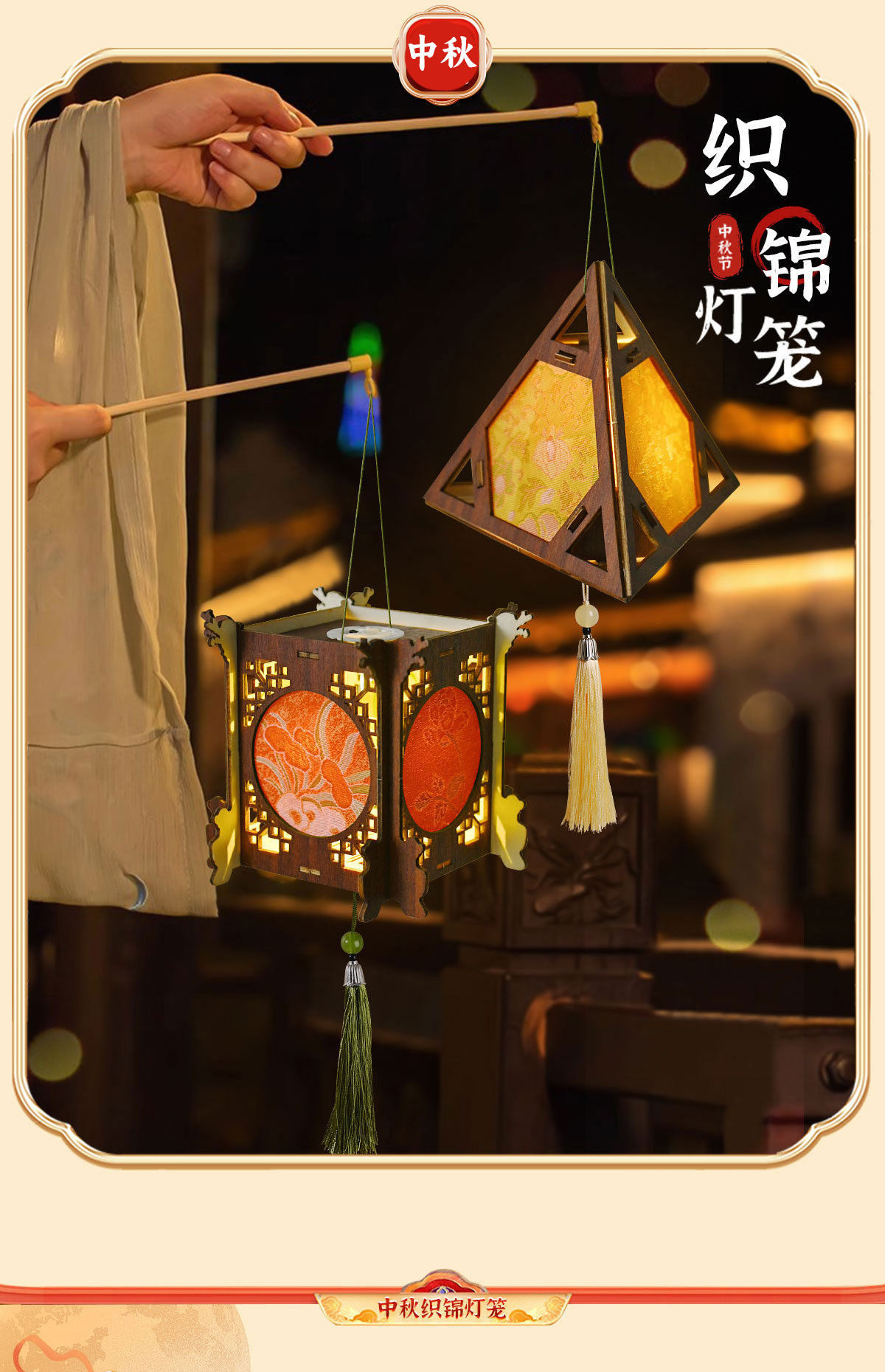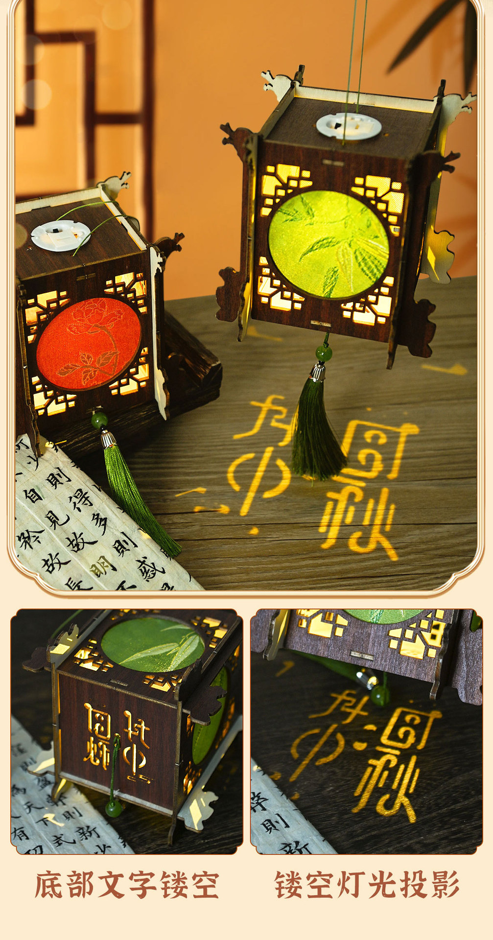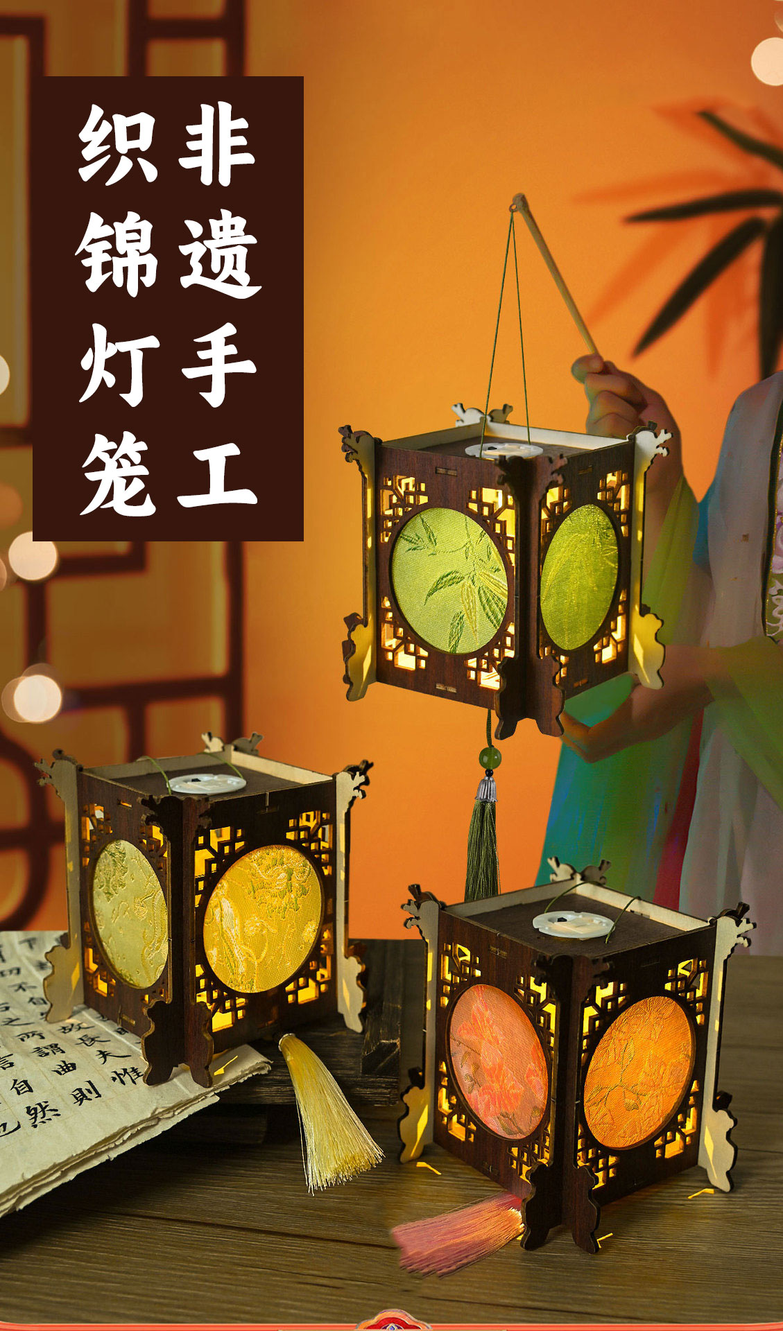 【中秋节DIY宋锦投影灯笼】手工材料包投影宫灯创意儿童手提古风花灯礼物仿宋锦