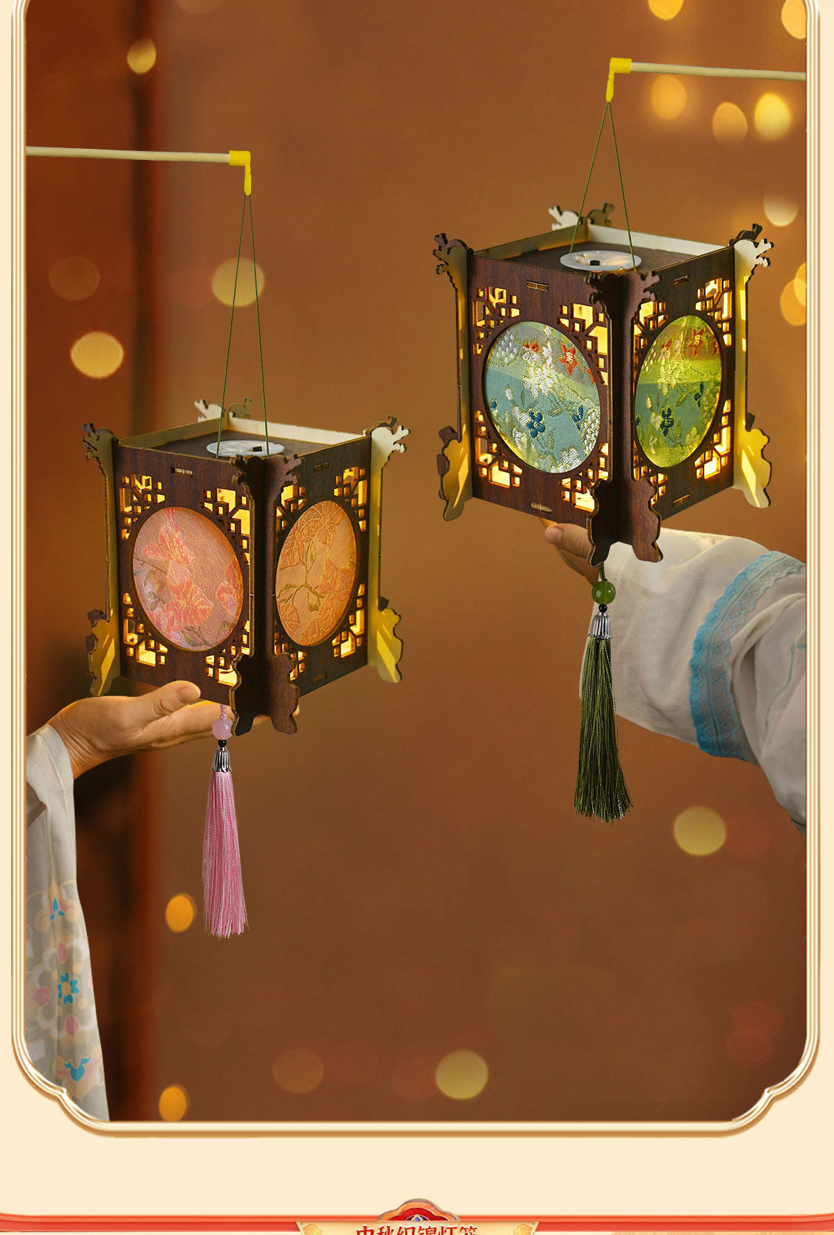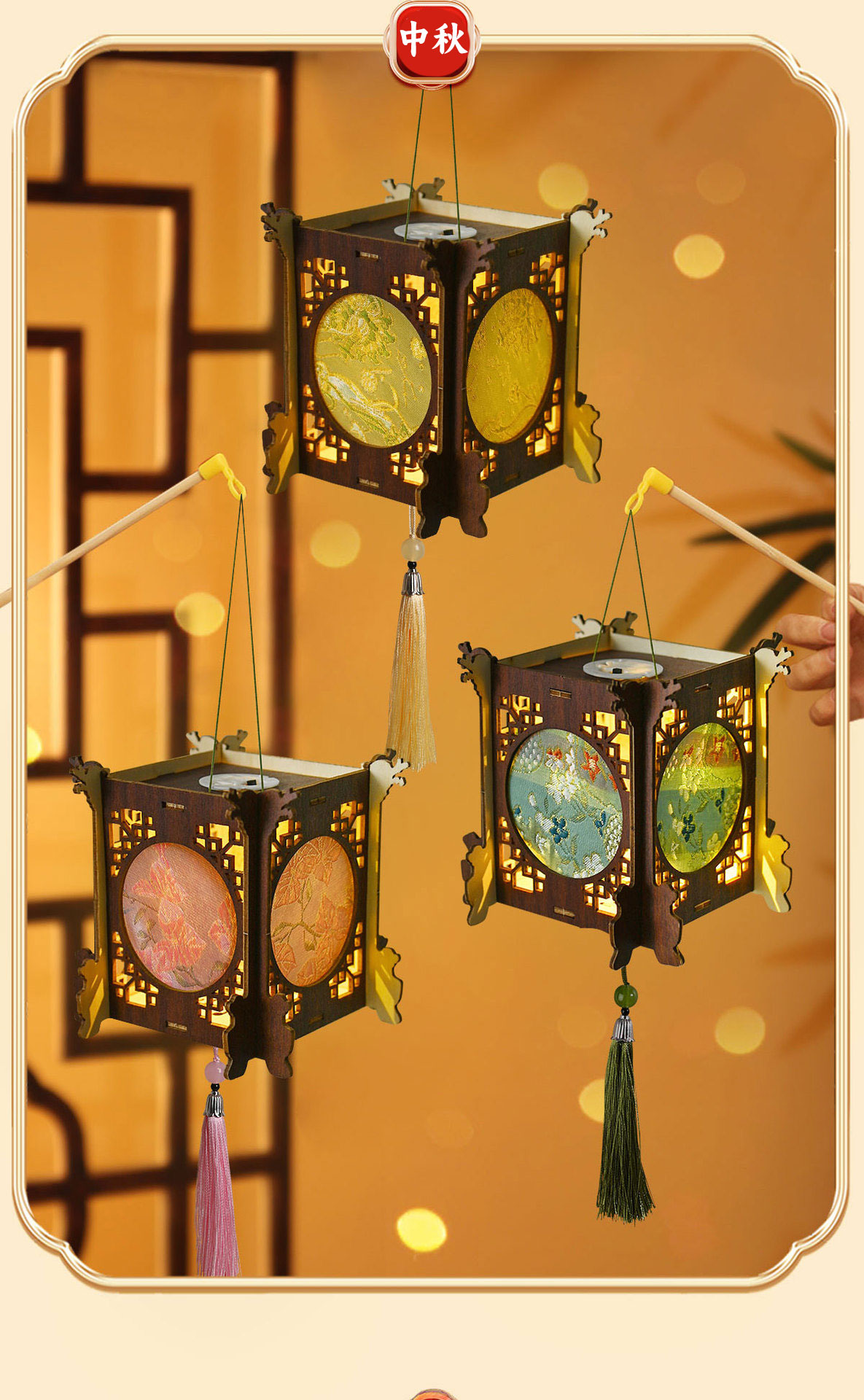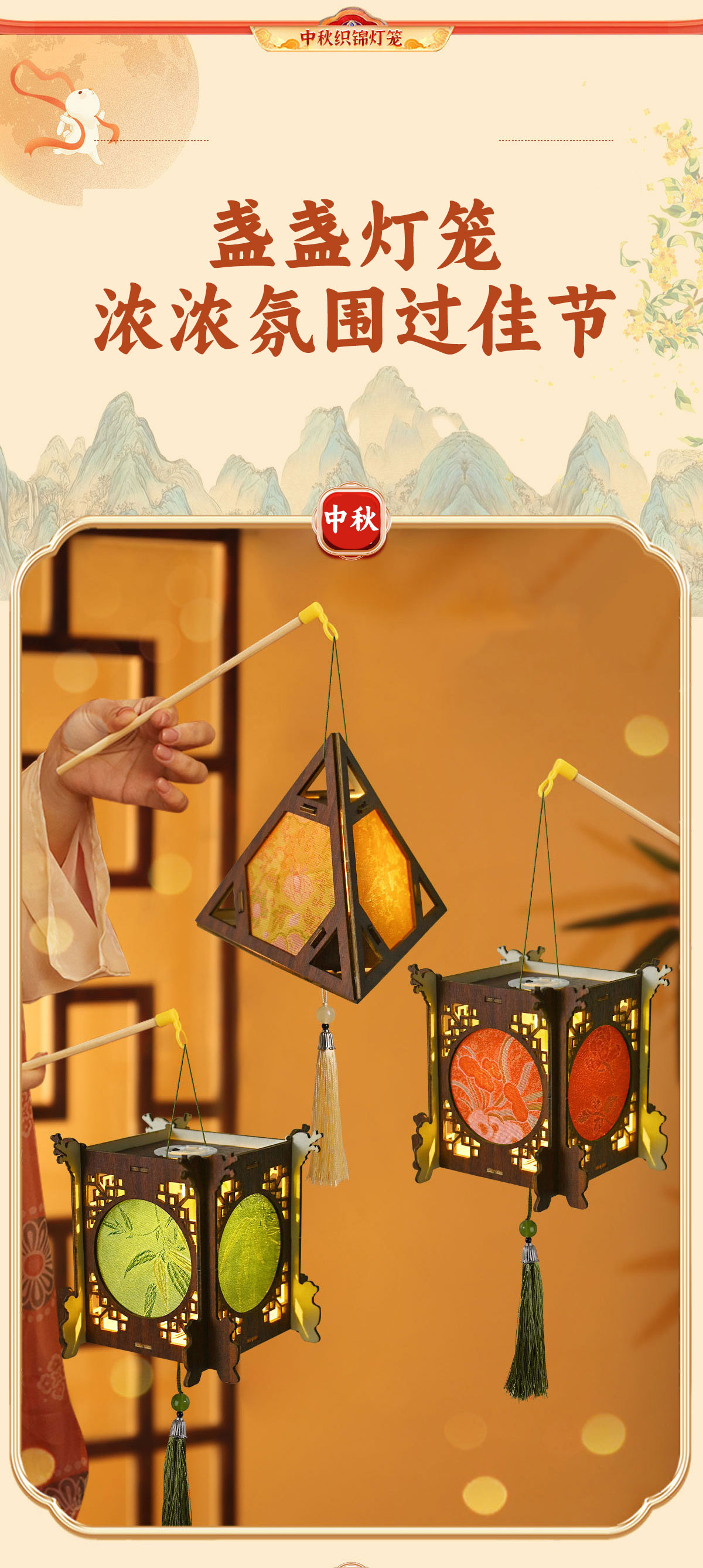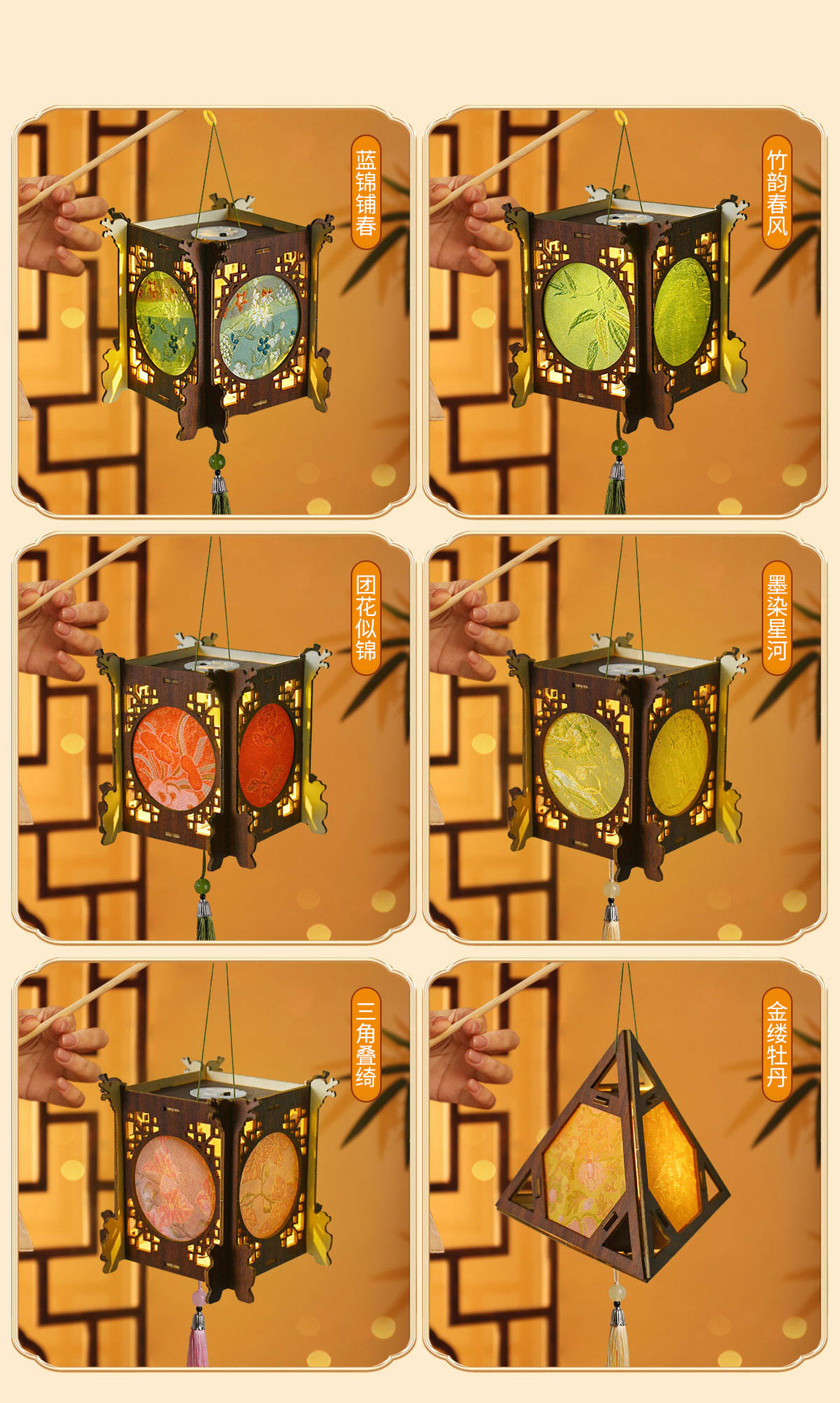 【中秋节DIY宋锦投影灯笼】手工材料包投影宫灯创意儿童手提古风花灯礼物仿宋锦