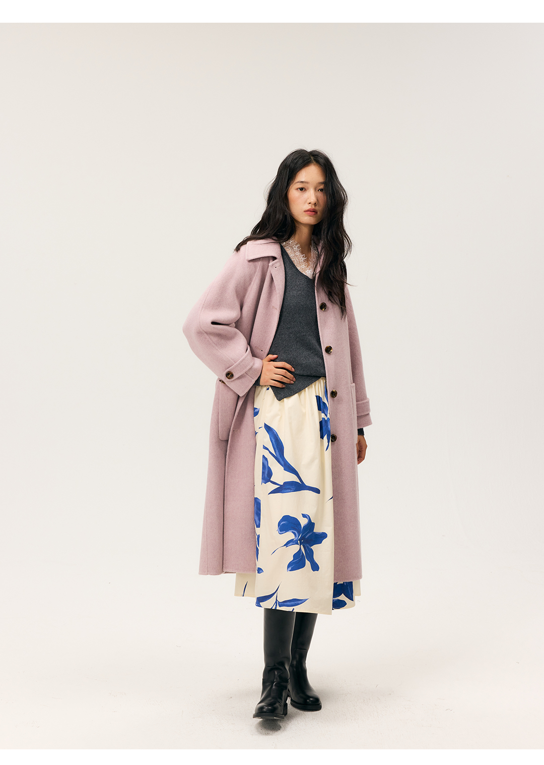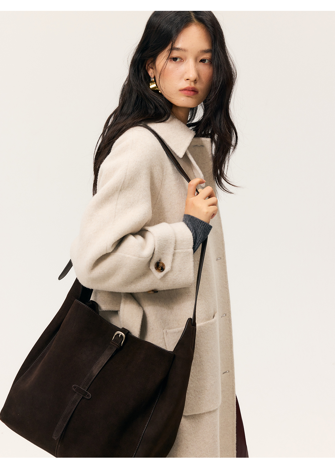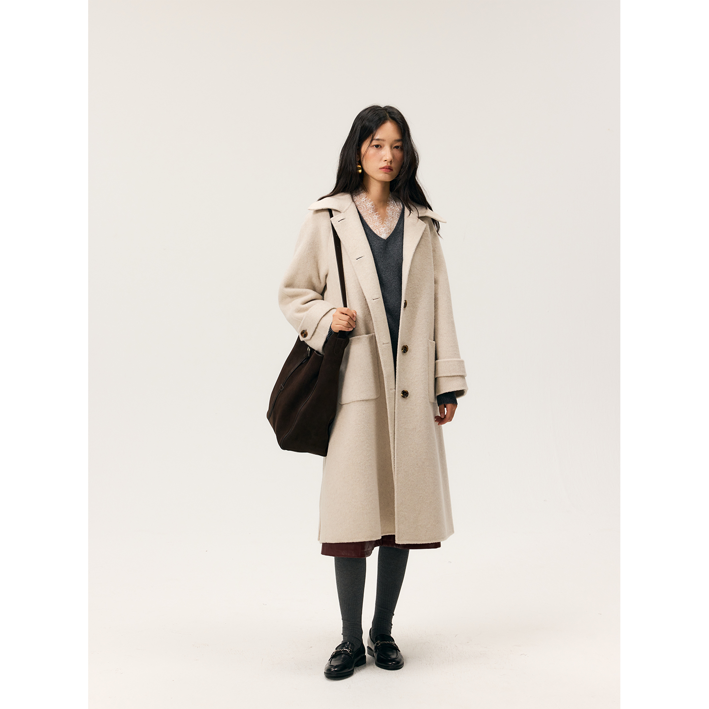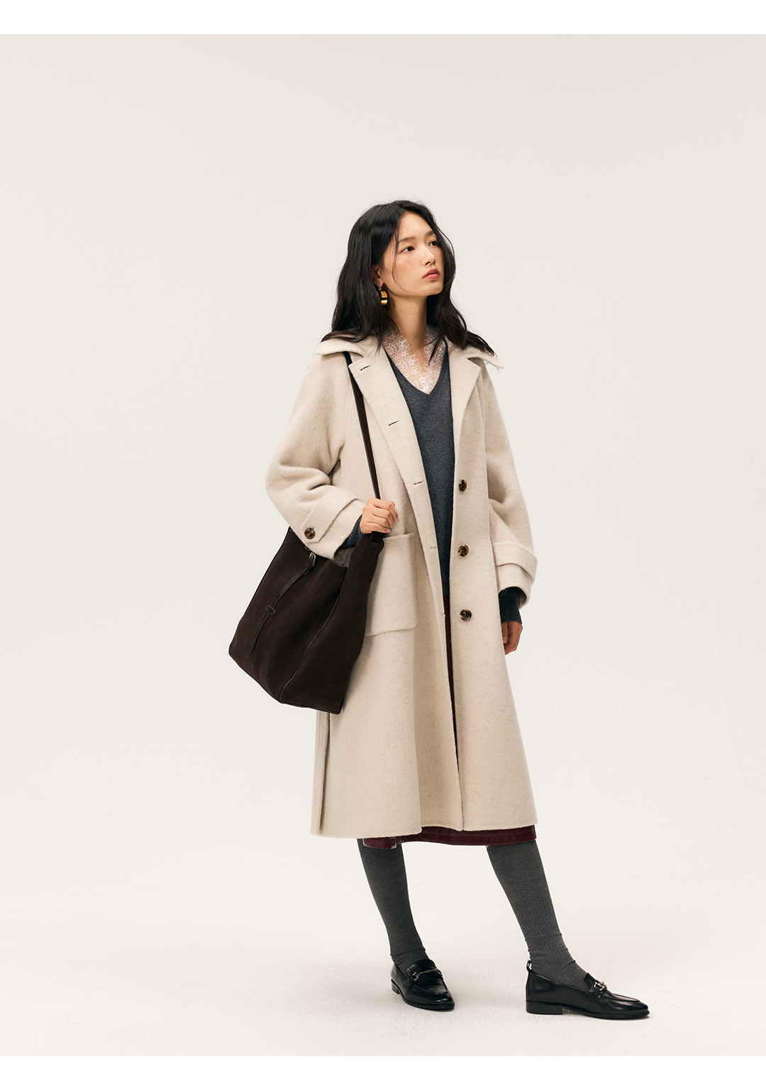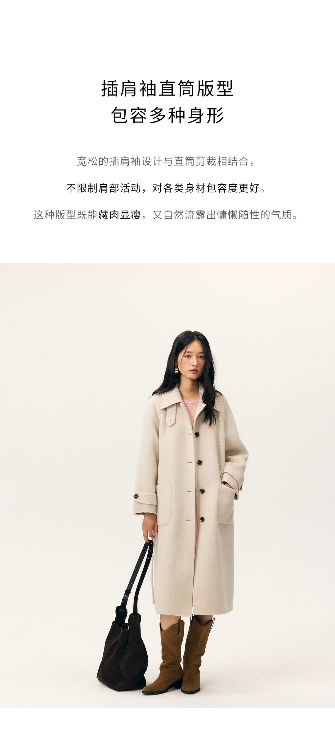 HeyDress双面尼插肩袖宽松大衣