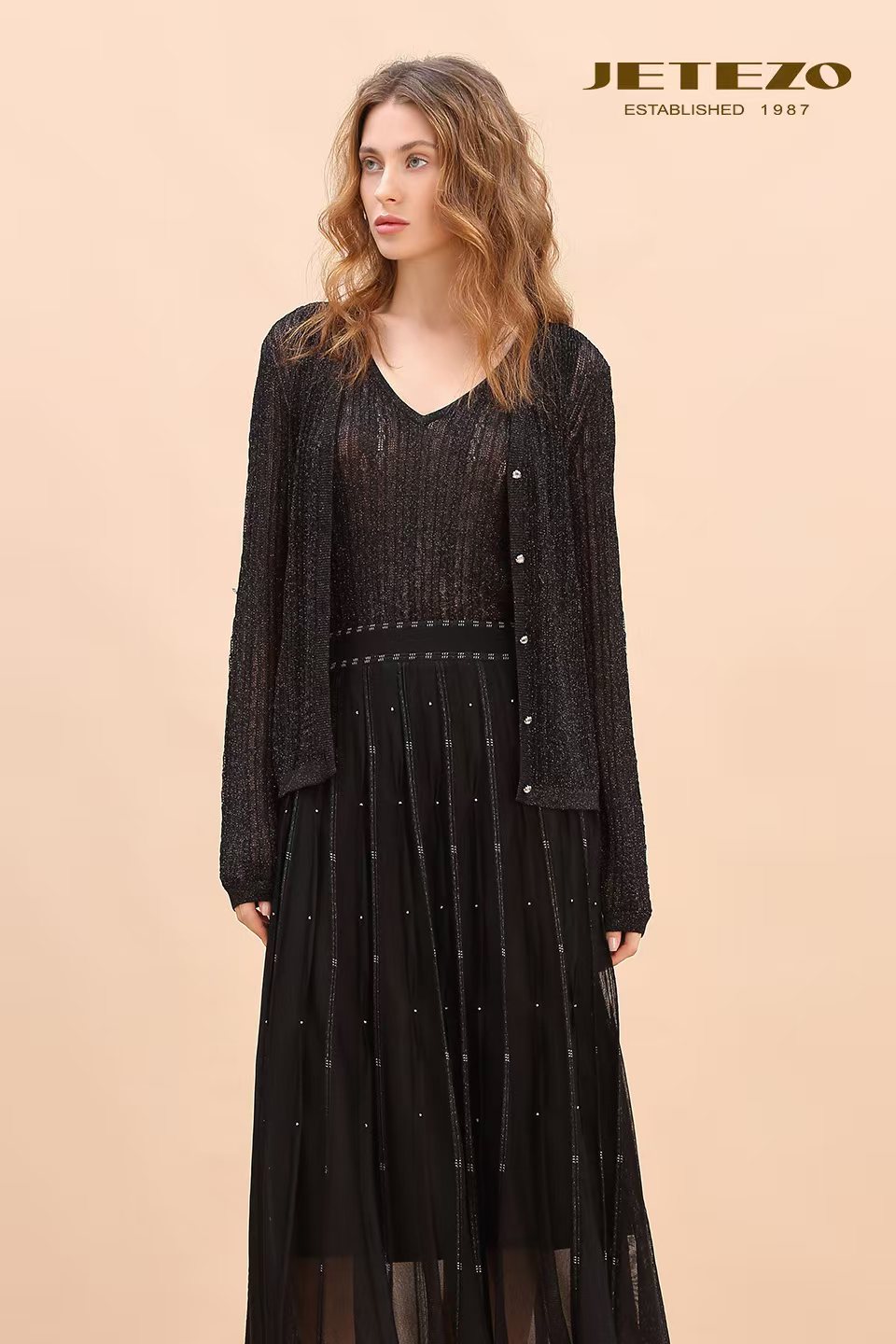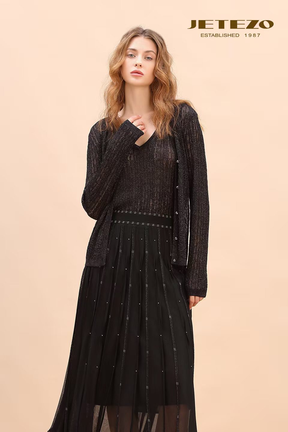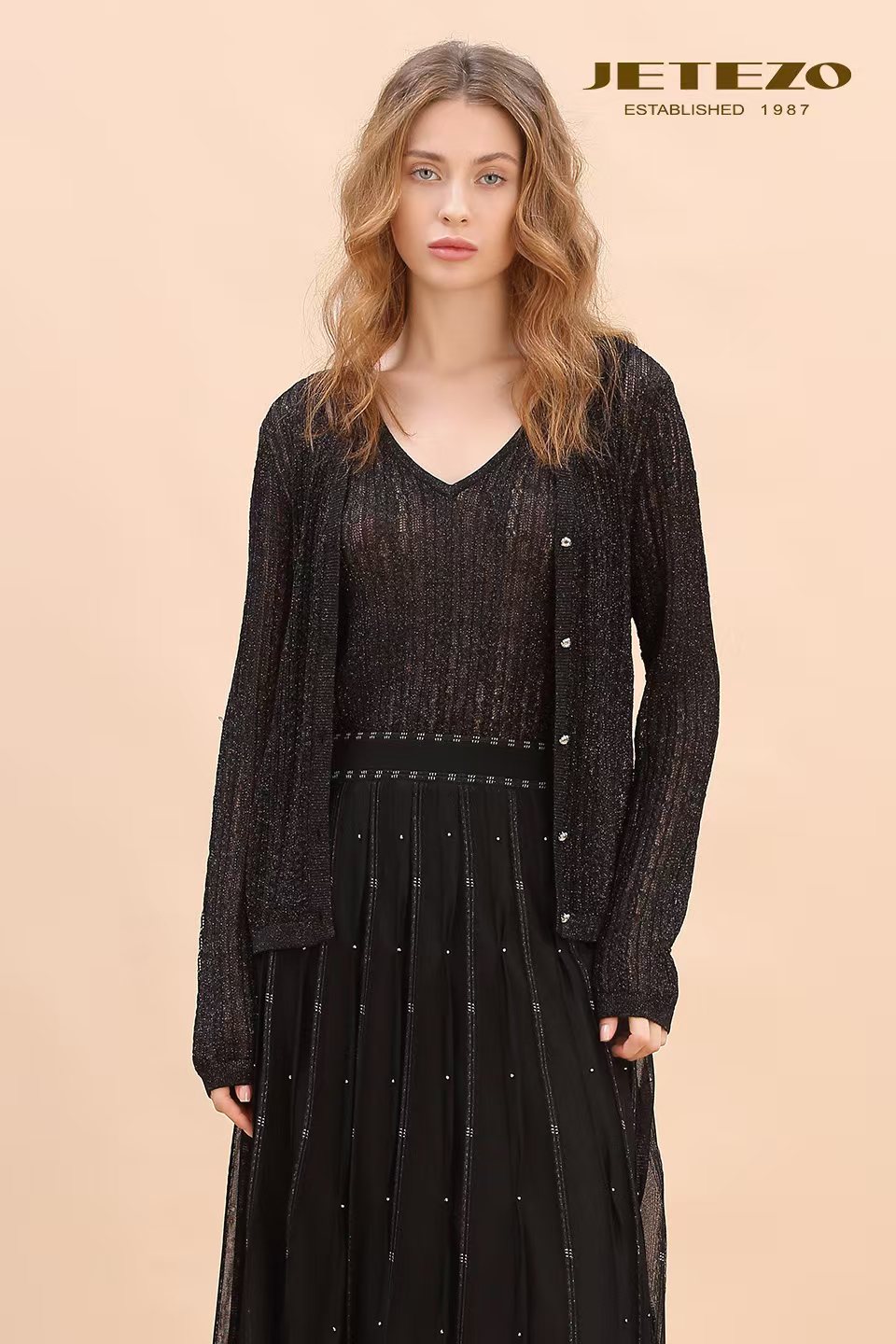 裘堤婼JETEZO银葱密织针织开衫BE10227D1