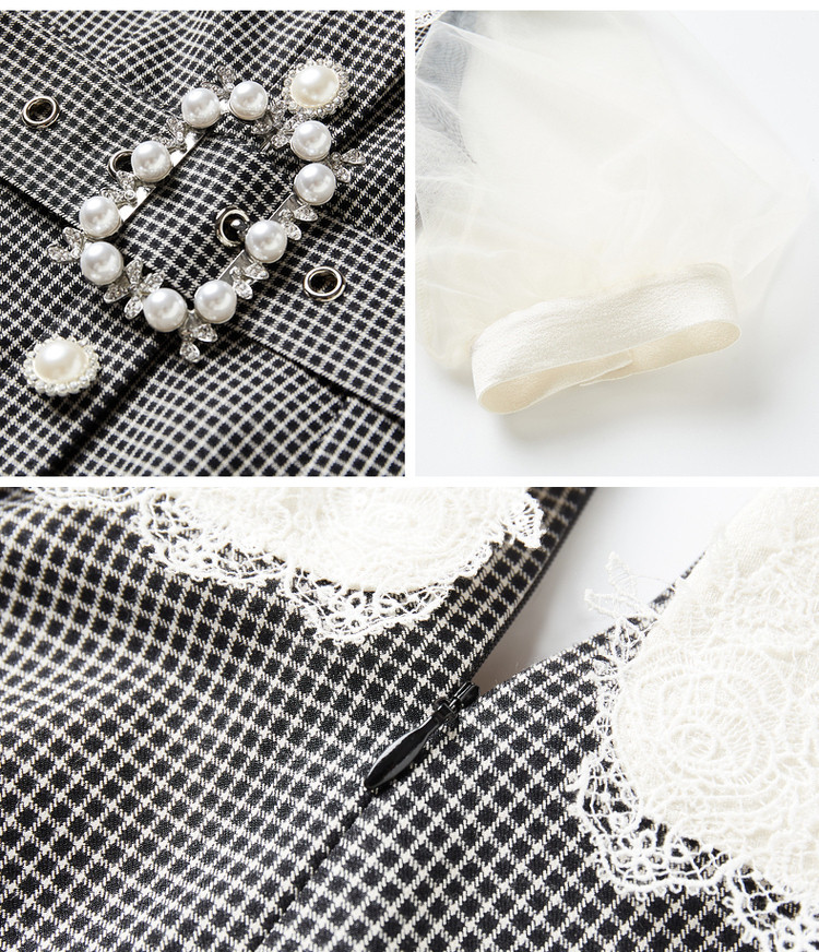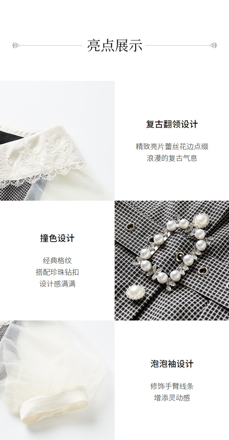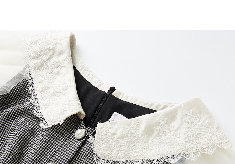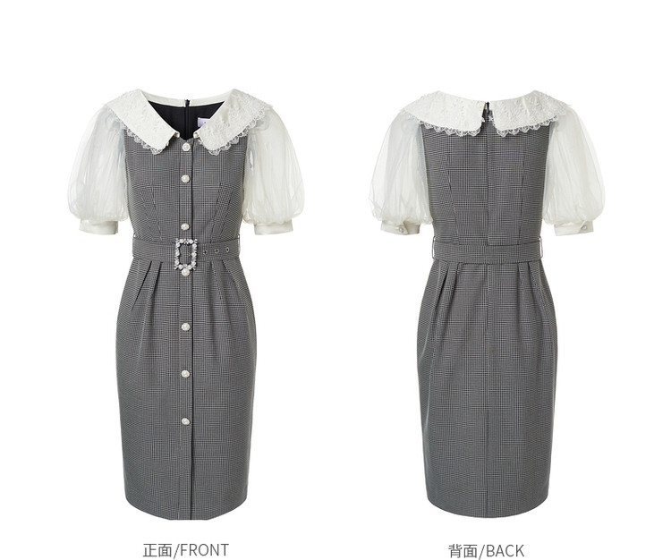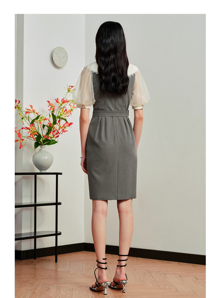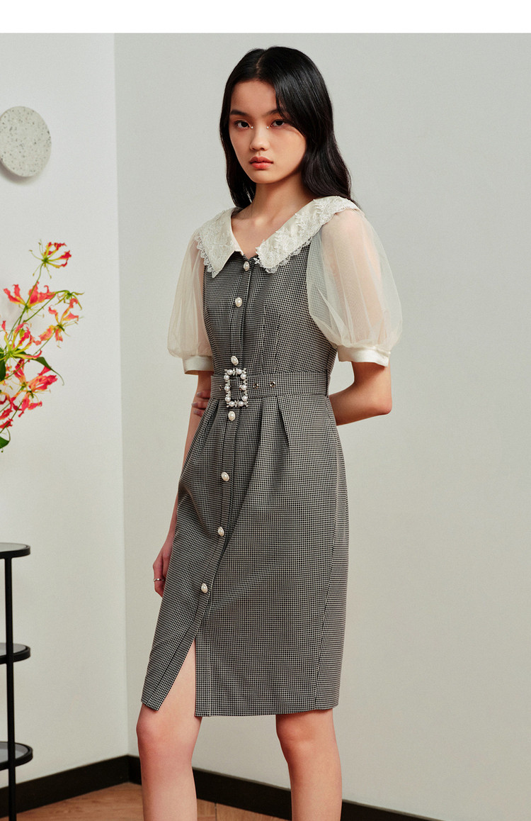 MAXRIENY法式浪漫黑白格纹翻领连衣裙2023夏季新款复古格纹裙子女MS88DR321Z00