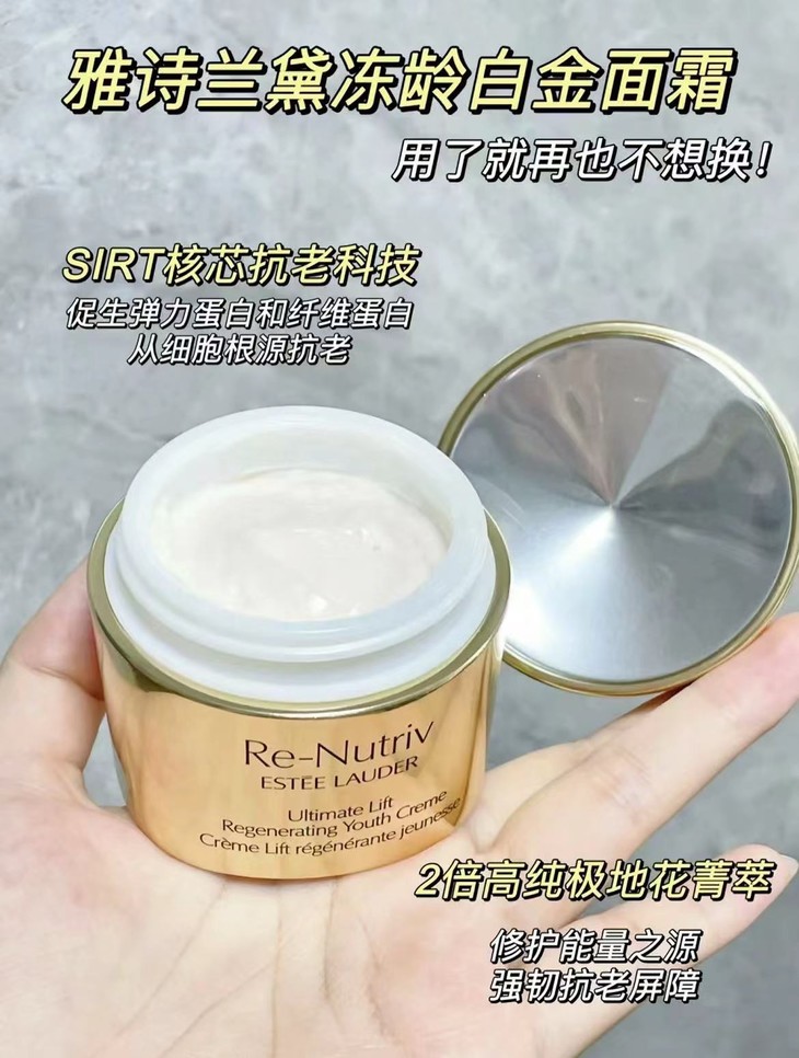 👑雅诗兰黛白金级花菁萃紧颜焕活滋养霜 50ml(经典) 💥主要成分【高浓度极地花菁萃】修复皮肤抗衰老的效果👍👍👍! ✅【SIRT核心抗老科技】帮助激活老化细胞,延缓肌肤衰老 💎【经典版】绵密雪绒质地,细腻滋润好吸收✔️ ✨淡纹+修护双巅峰:淡化法令纹等各种纹路,修护肌肤屏障💚 💫成份+技术双管齐下!一瓶解决所有老化问题!