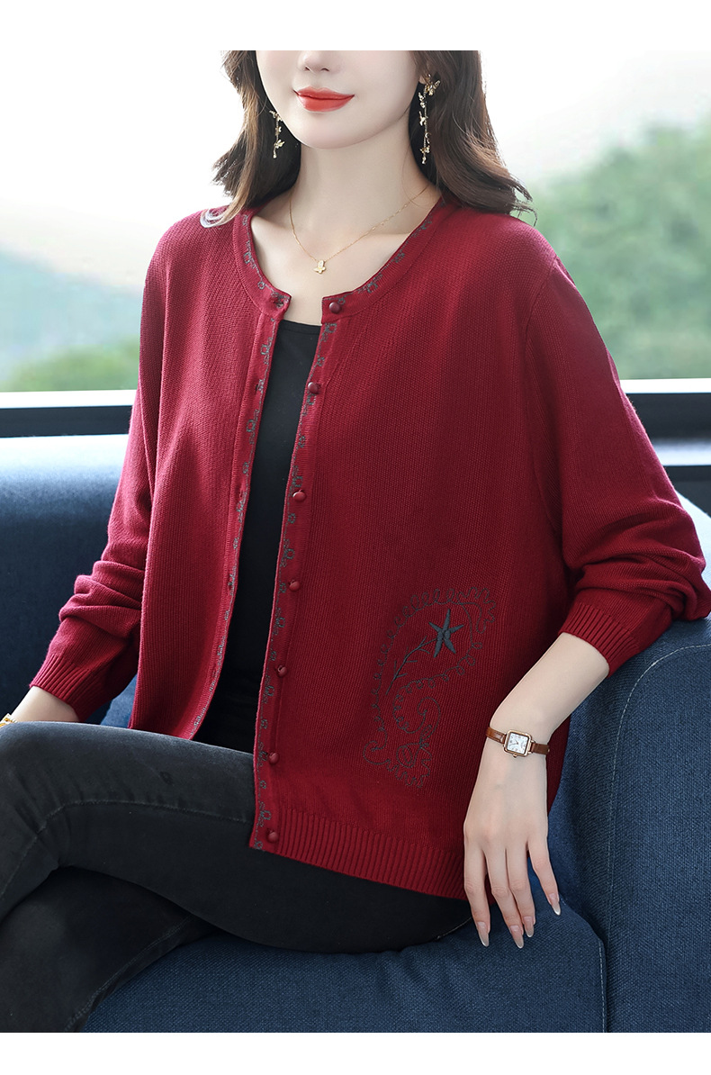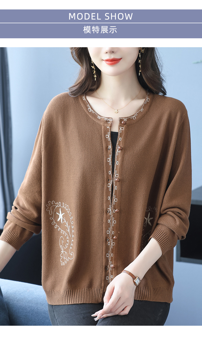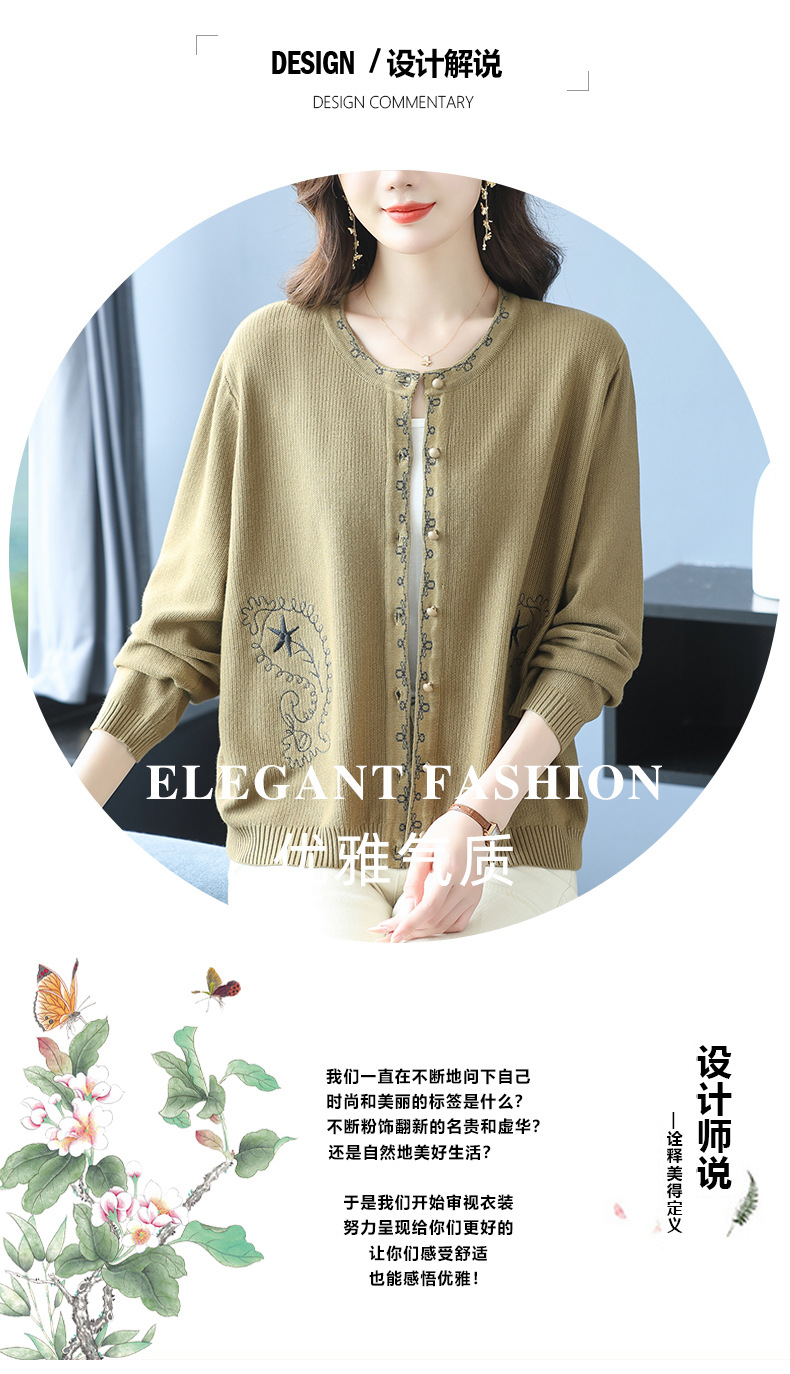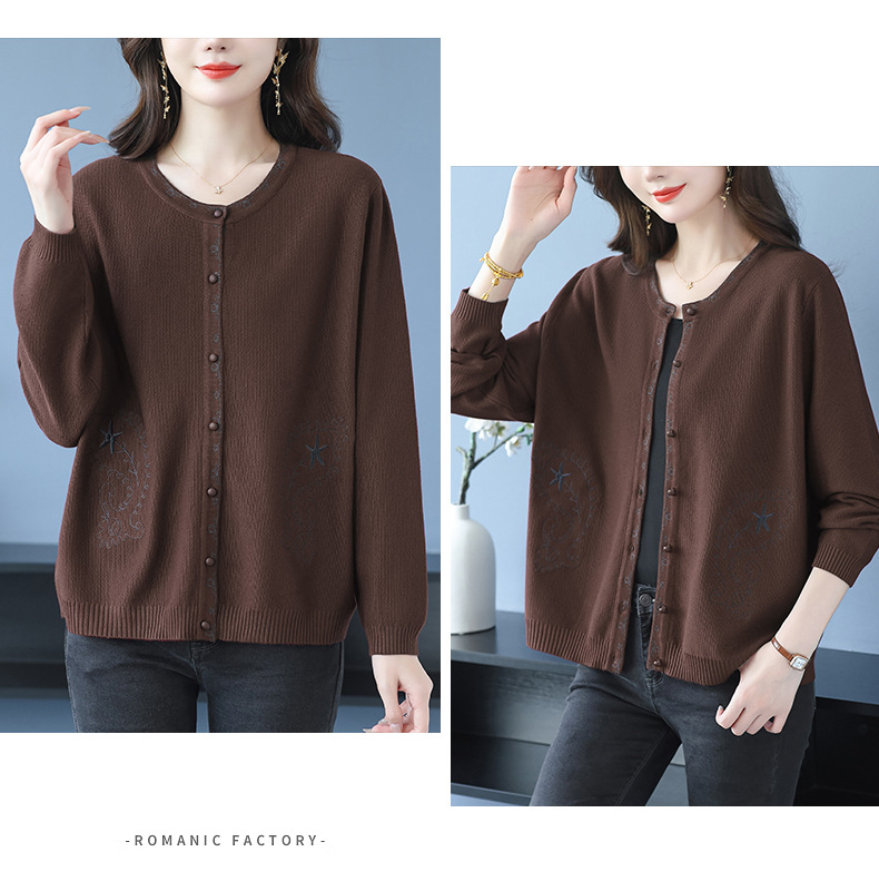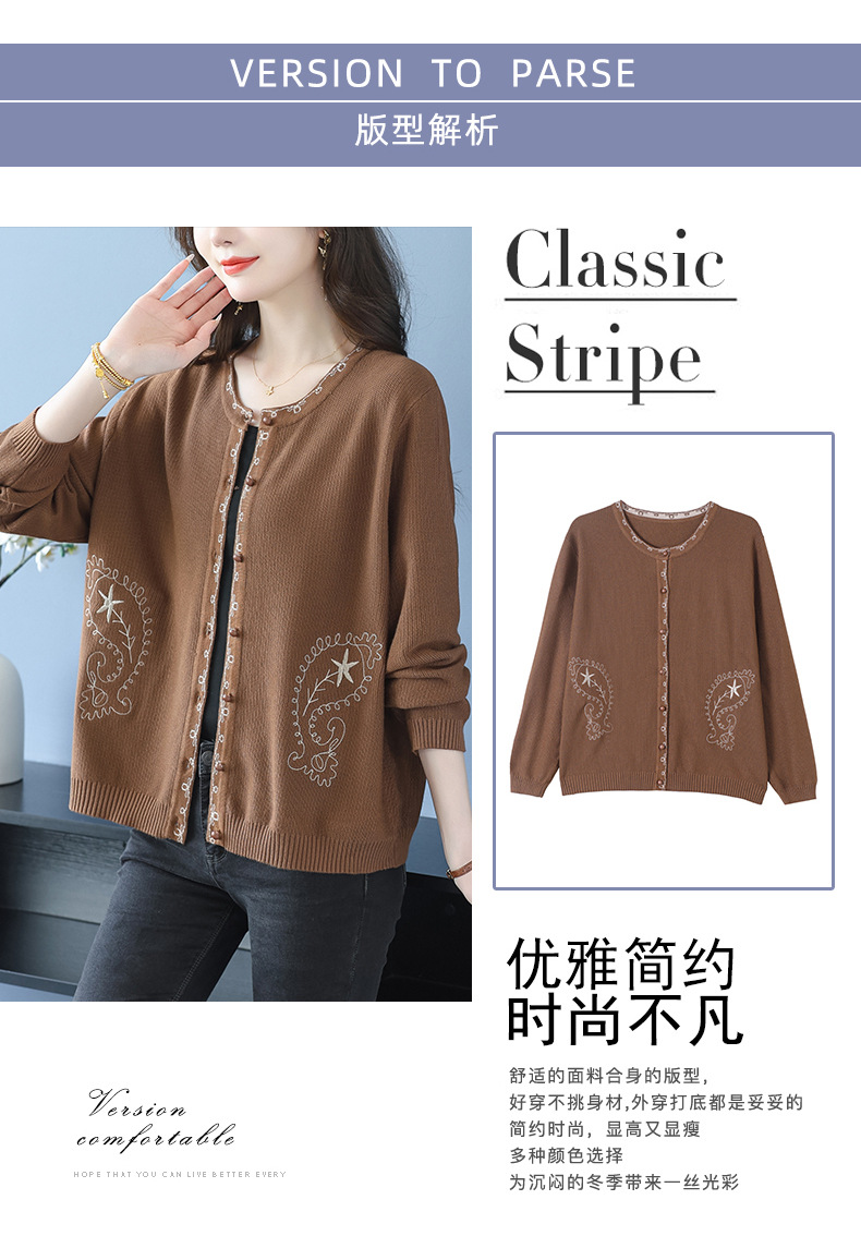 CC10-6616宽松休闲针织开衫春秋加肥加大码胖妈妈上衣2025新款显瘦毛衣外套