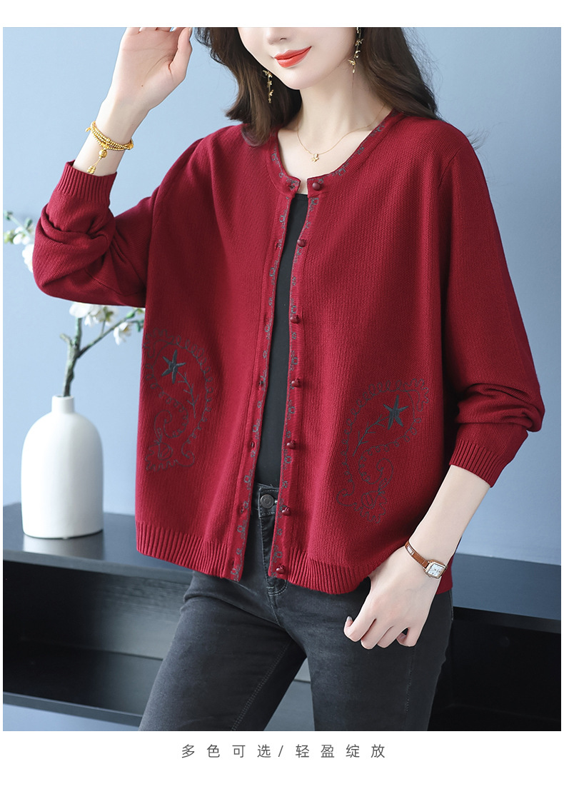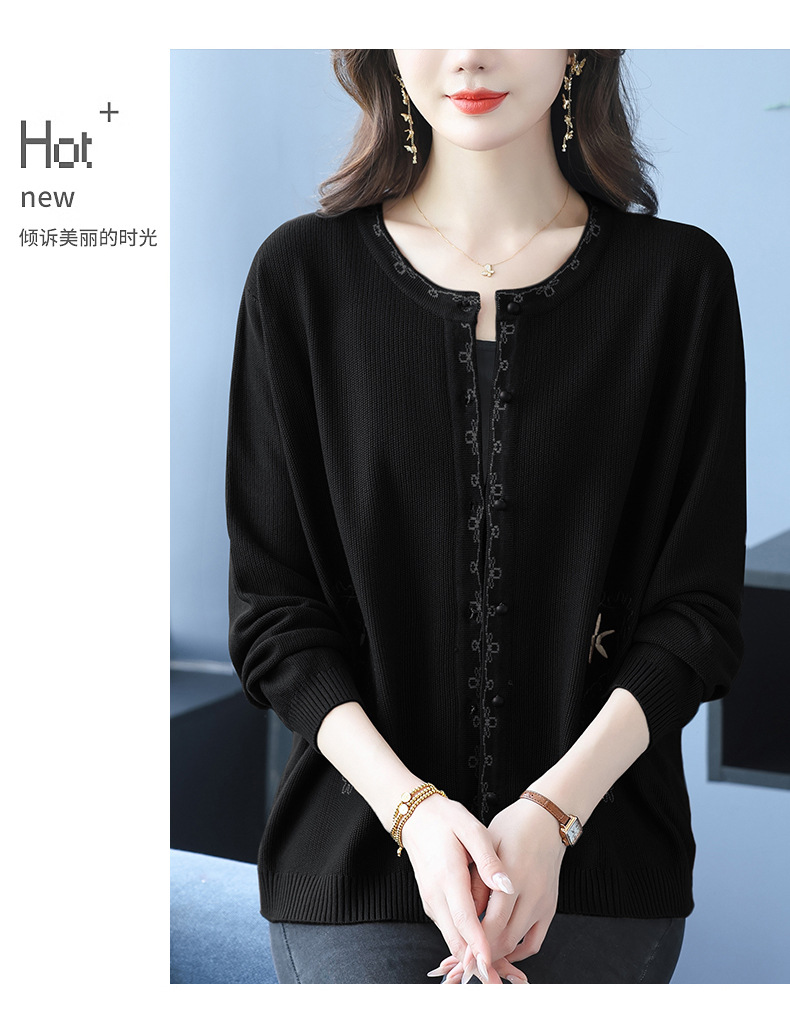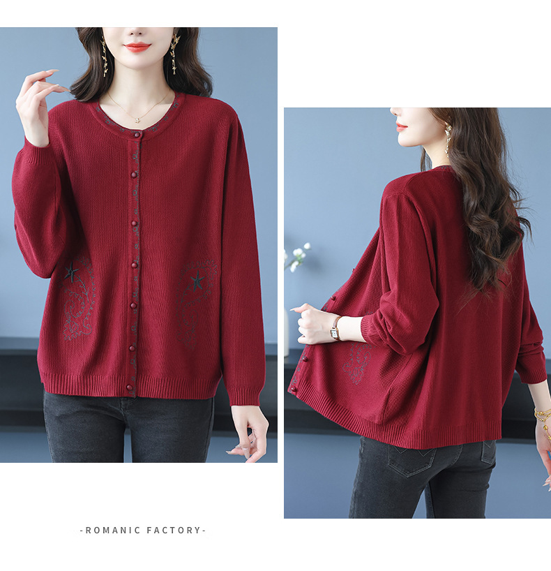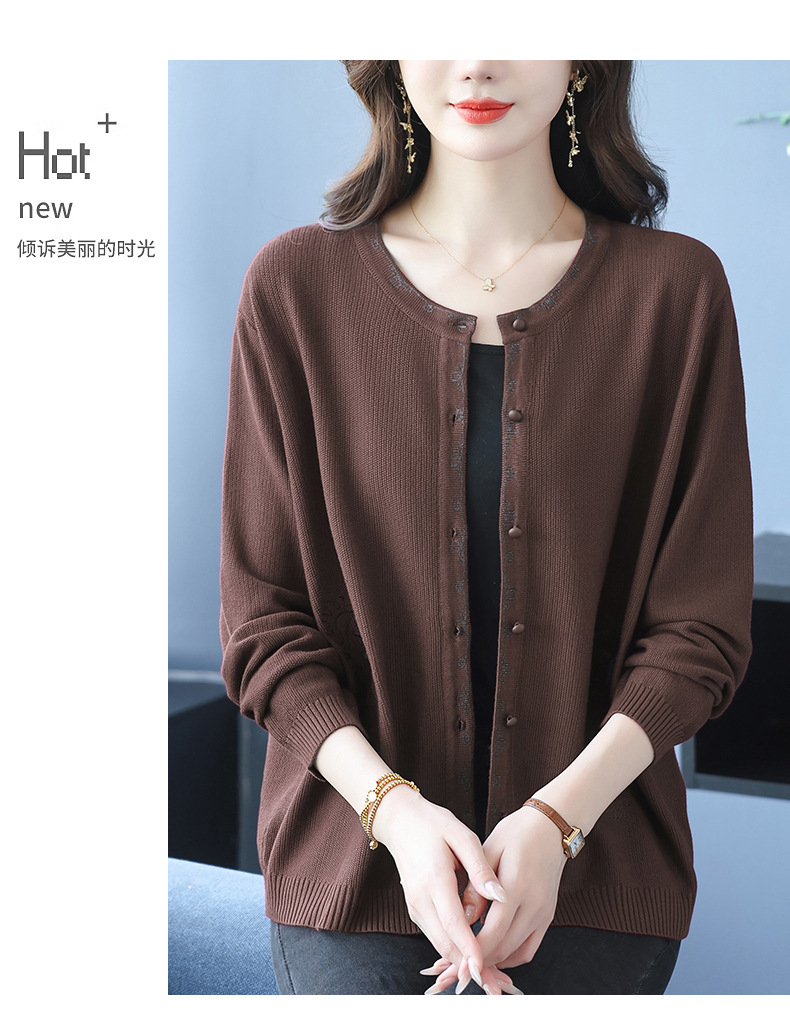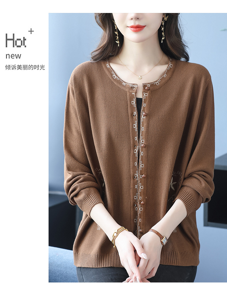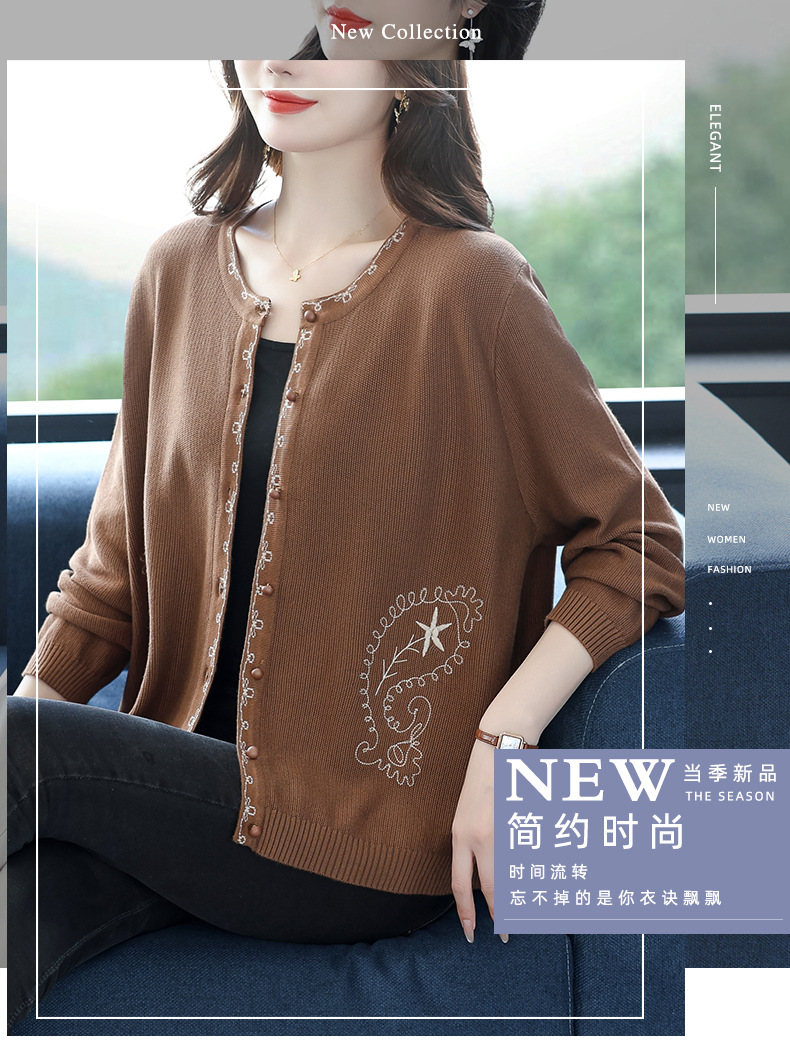 CC10-6616宽松休闲针织开衫春秋加肥加大码胖妈妈上衣2025新款显瘦毛衣外套