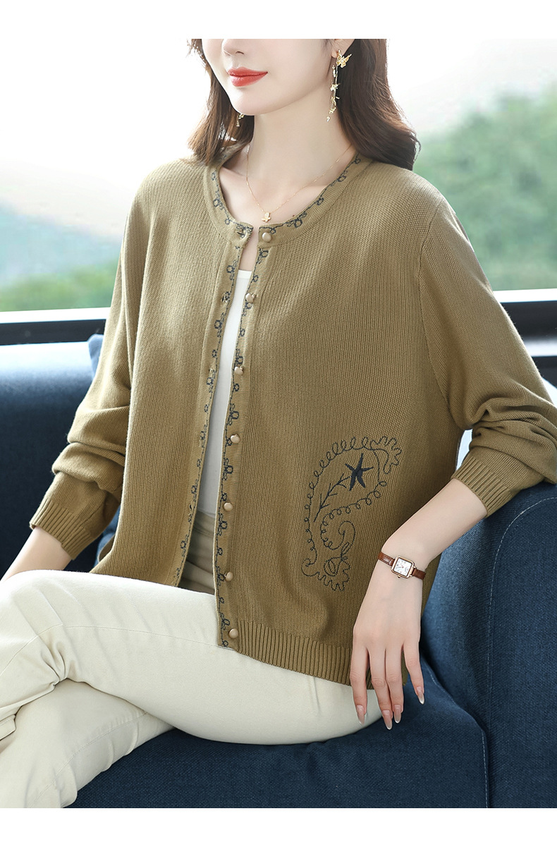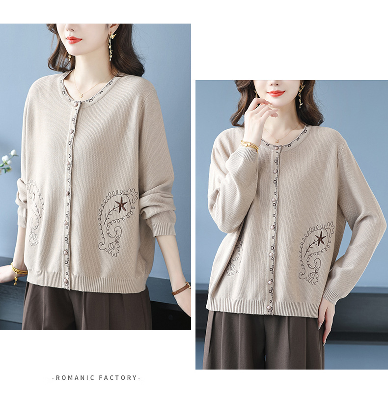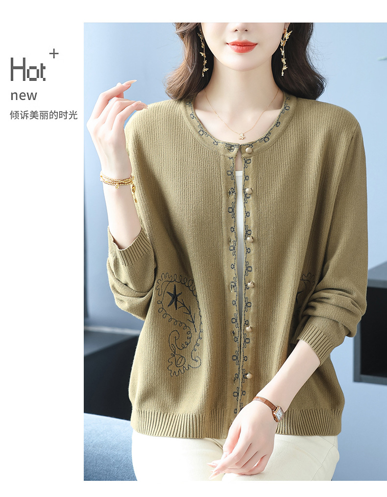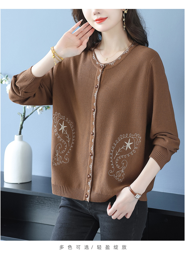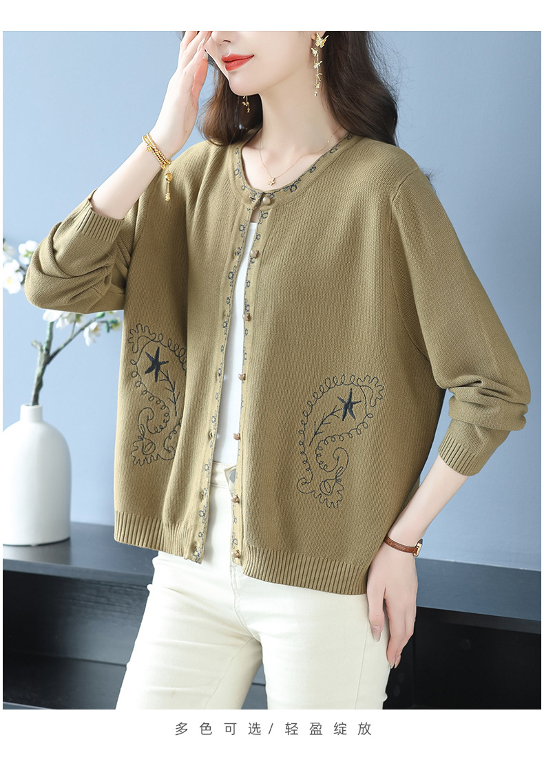 CC10-6616宽松休闲针织开衫春秋加肥加大码胖妈妈上衣2025新款显瘦毛衣外套