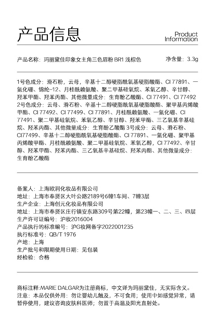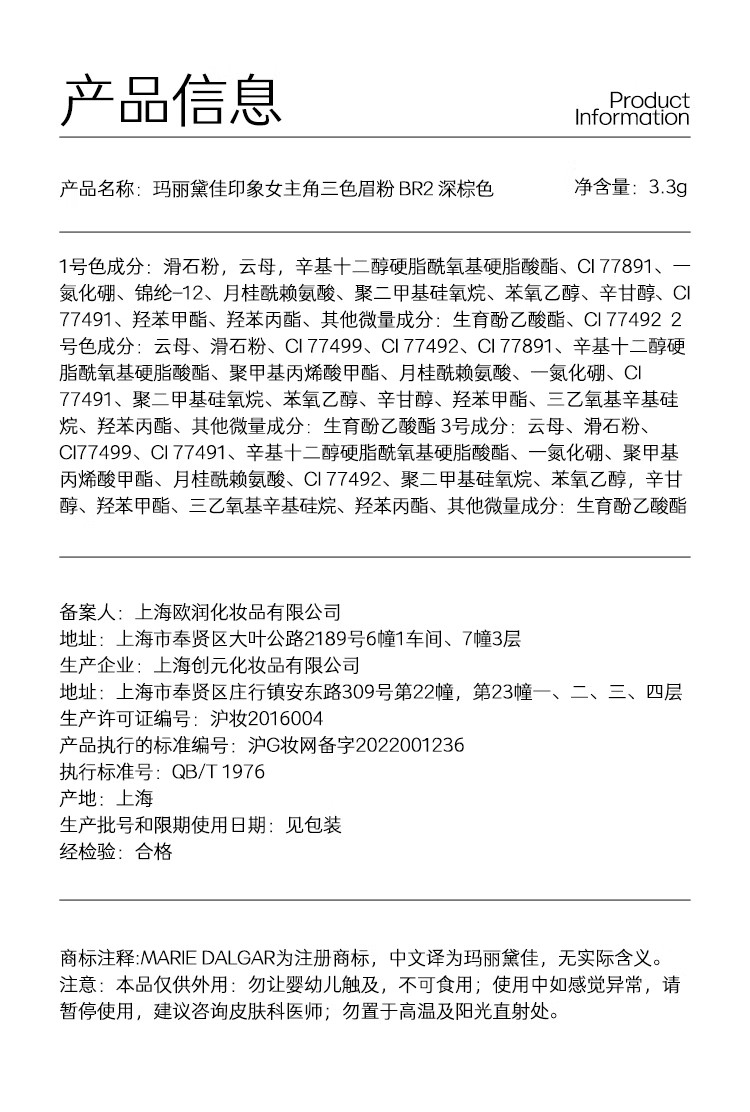 【积分兑换正装】玛丽黛佳印象女主角三色眉粉雾眉持久显色塑颜不易脱色