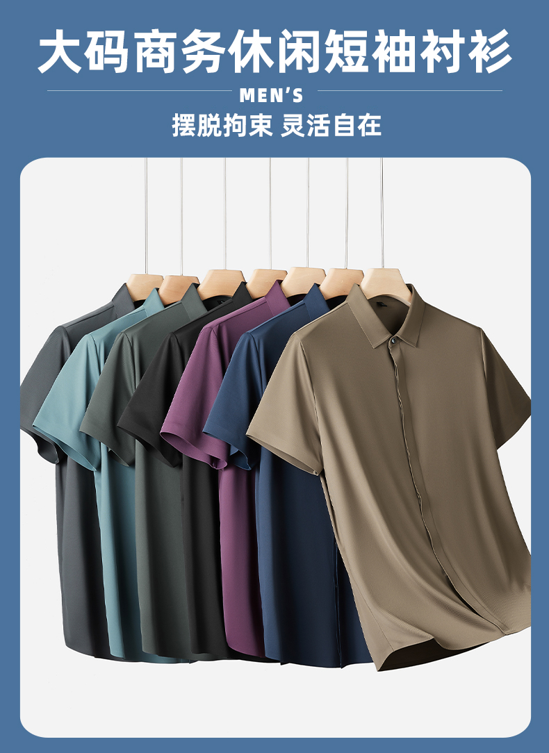 【高弹】【新款DK】大依优型大码短袖衬衫高弹加肥加大男装大号大码衬衣上衣男士绅士商务休闲半袖夏季