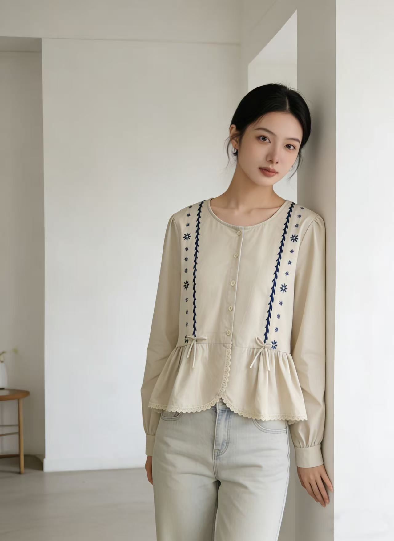 春季推荐2026→【自营】清货不退 绣花~【重工刺绣小衫】6533秋季新品重工绣花长袖小衫-喜出