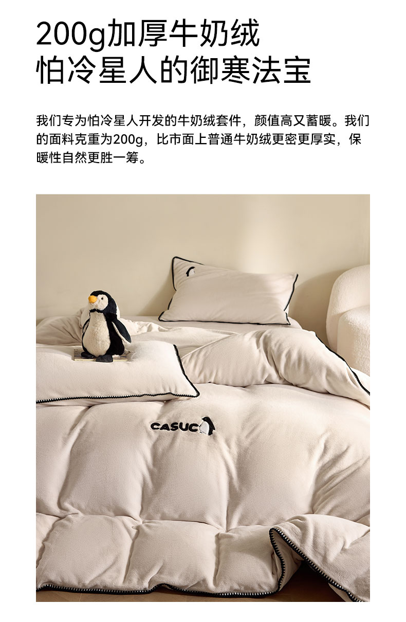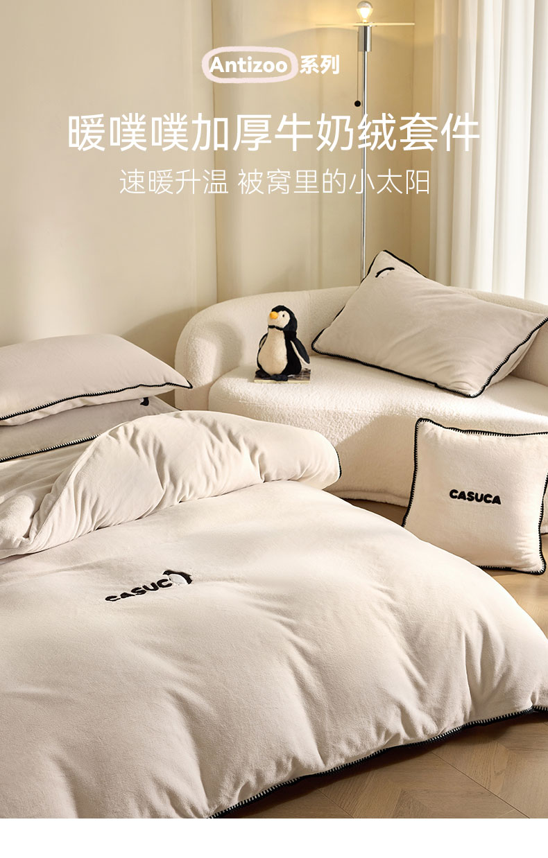 CASUCA 暧噗噗牛奶绒床上四件套秋冬季加绒加厚保暖床笠被套
