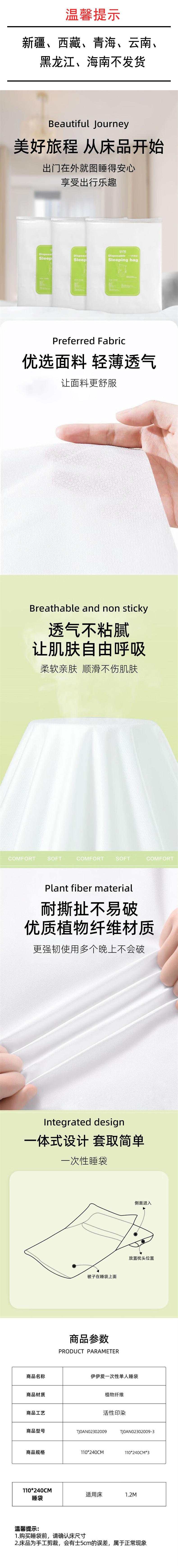 伊伊爱 一次性单人睡袋3袋装 TJ0AN02302009-3