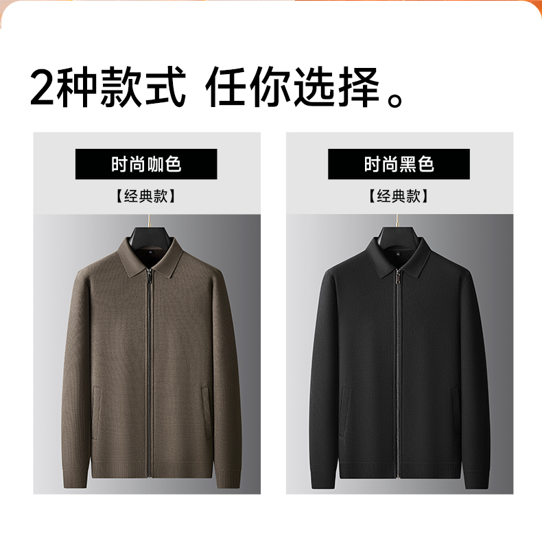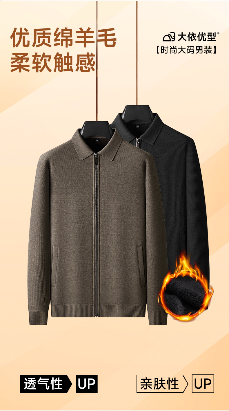 【绵羊毛】大依优型大码男装加绒翻领针织毛衫开衫休闲百搭上衣外套加肥加大