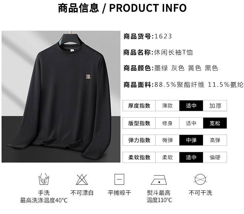 【新款DX】大依优型大码中领打底衫T恤长袖加肥加大休闲运动上衣男打底衫胖子