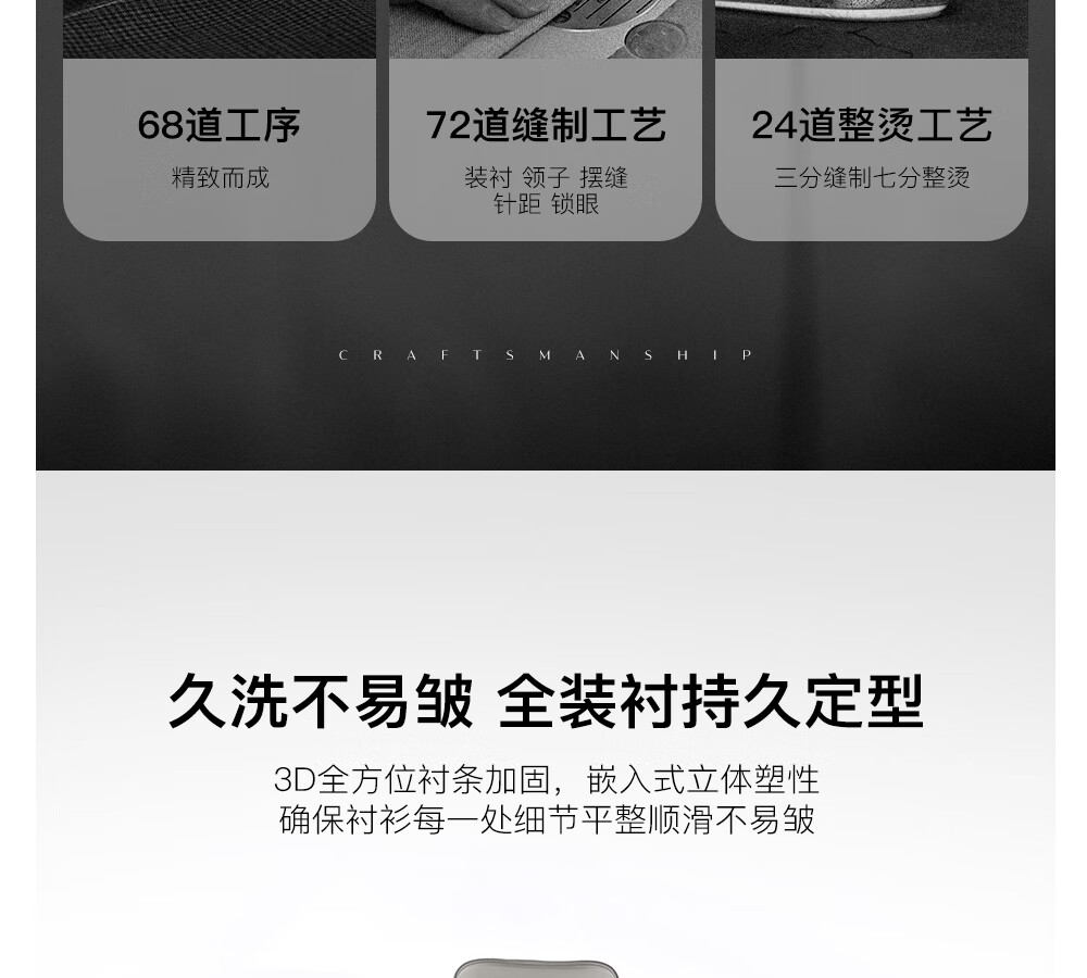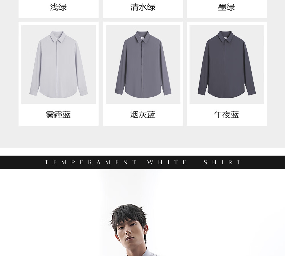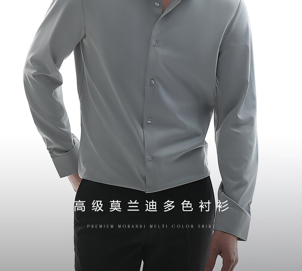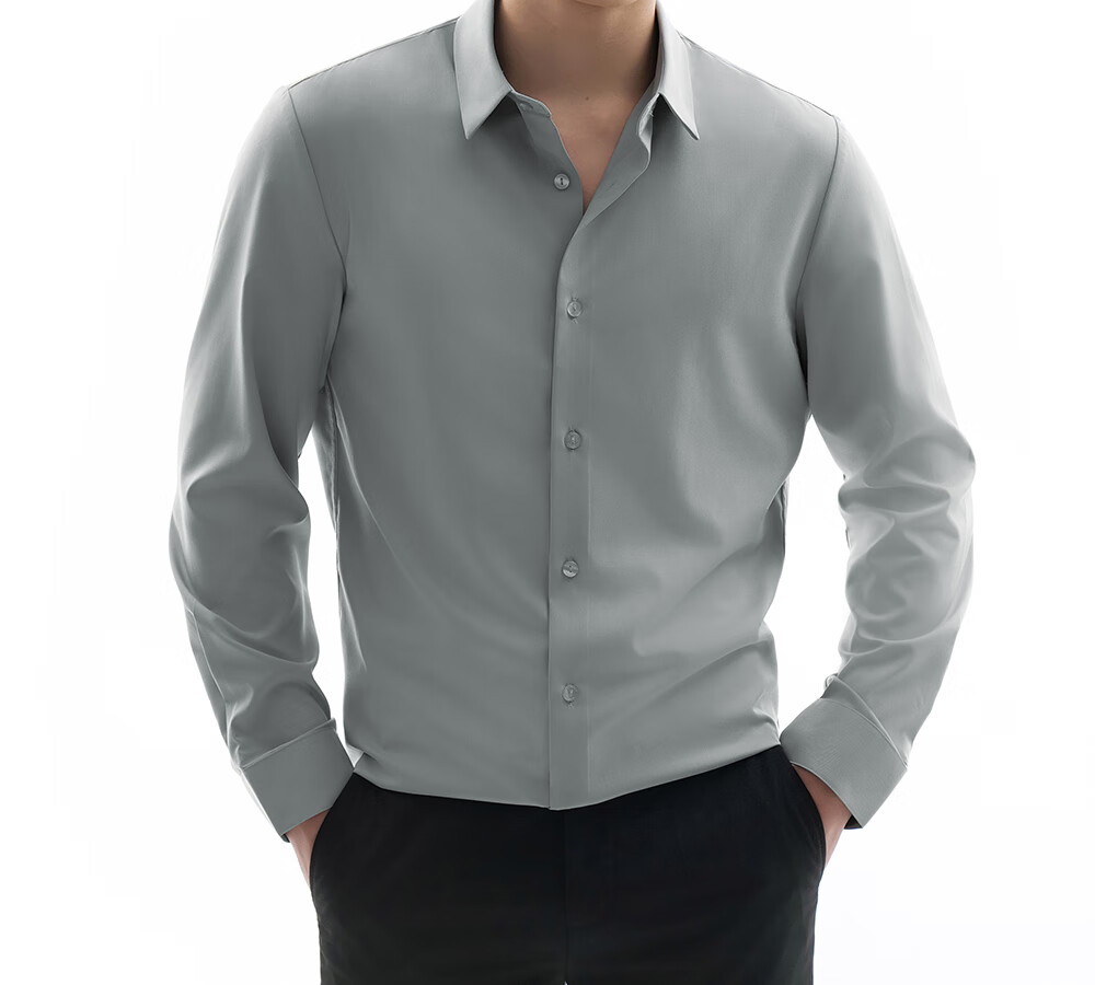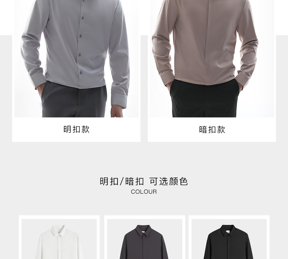 HIM漢崇 经典方领商务长袖衬衫男日常通勤上班基础款衬衣2026春季