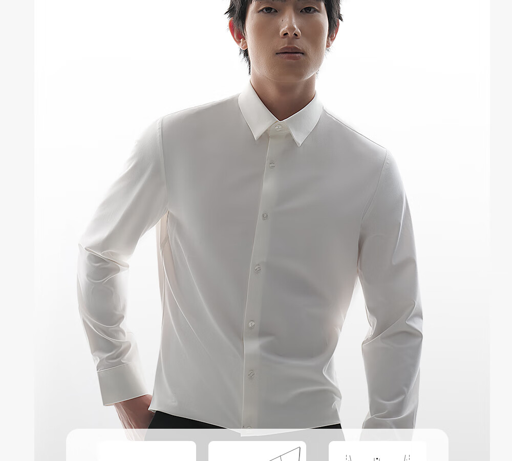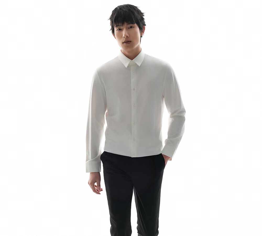 HIM漢崇 经典修身白色长袖衬衫男春夏通勤上班高级感商务正装衬衣