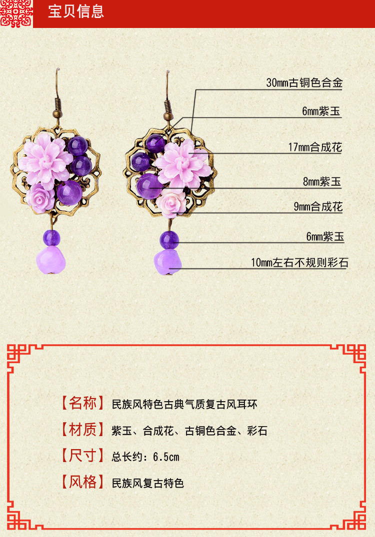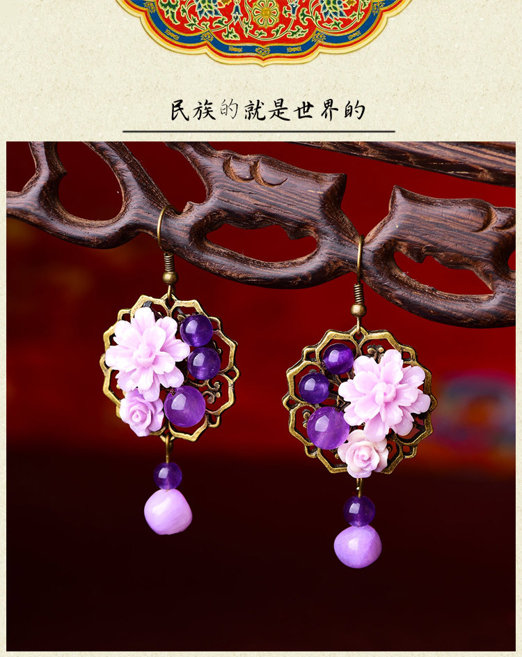 CZYH-002民族风耳环紫玉宫廷复古风耳坠