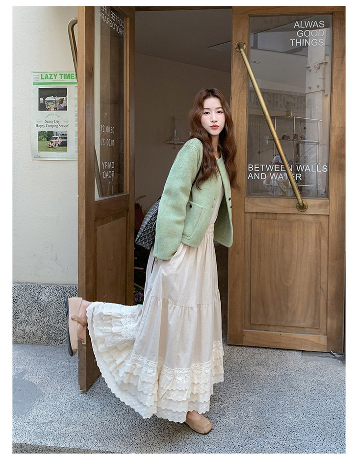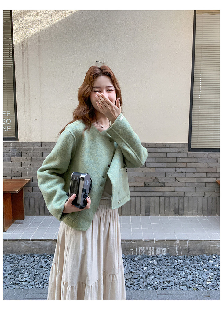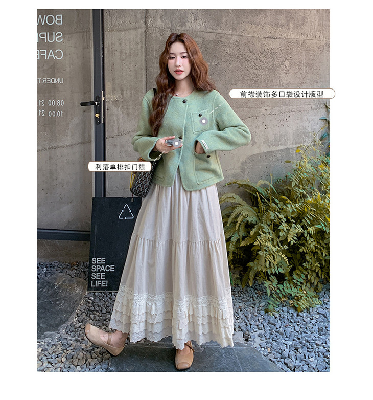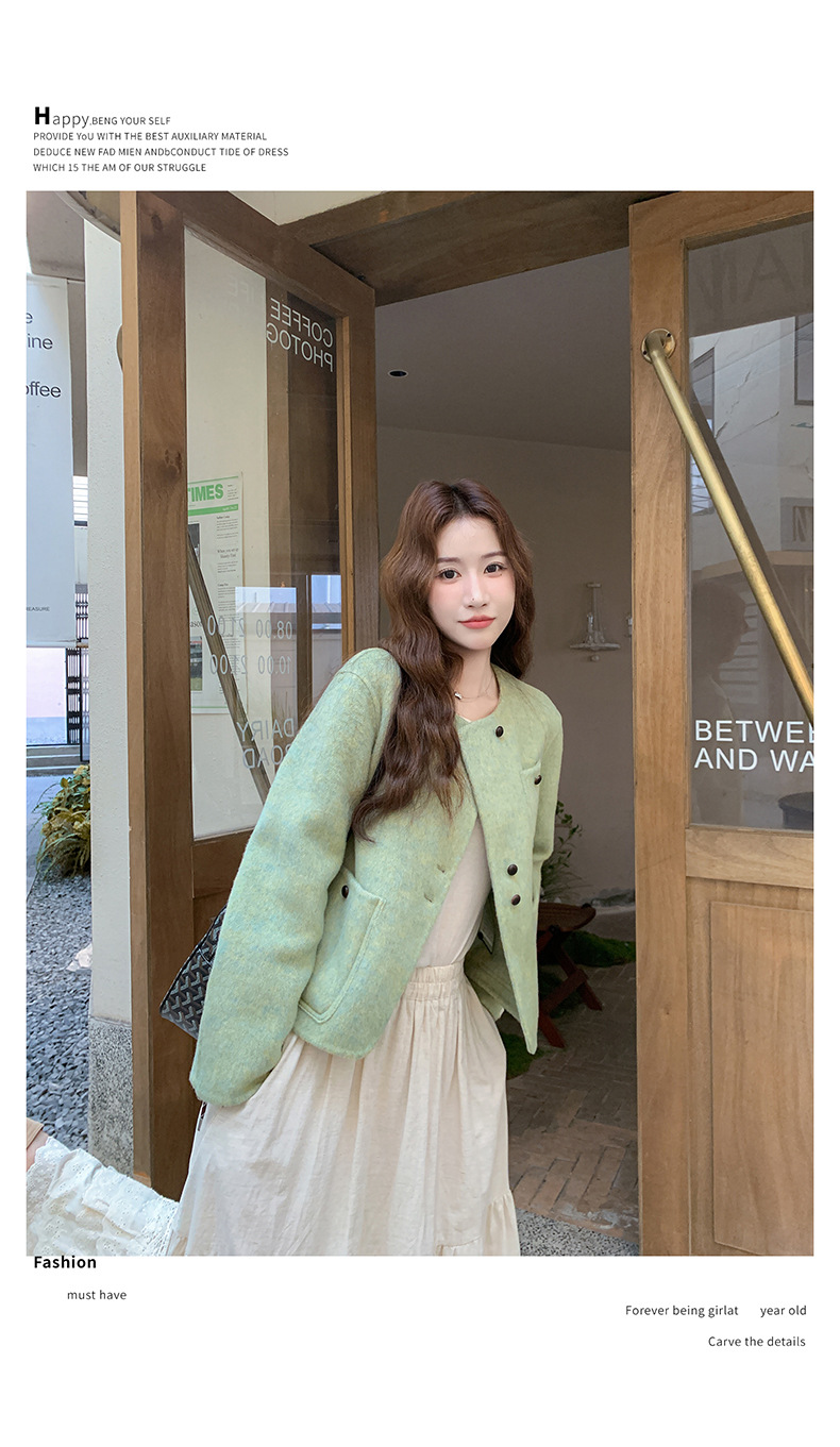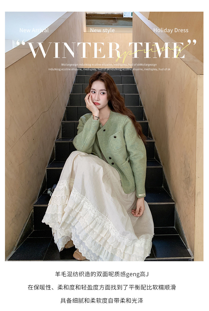 羊毛呢外套2025秋季新款女装圆领小香风绿色呢大衣SLYS9653