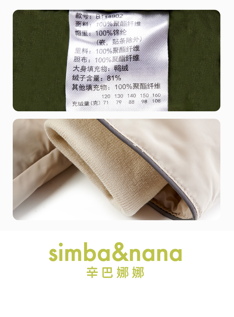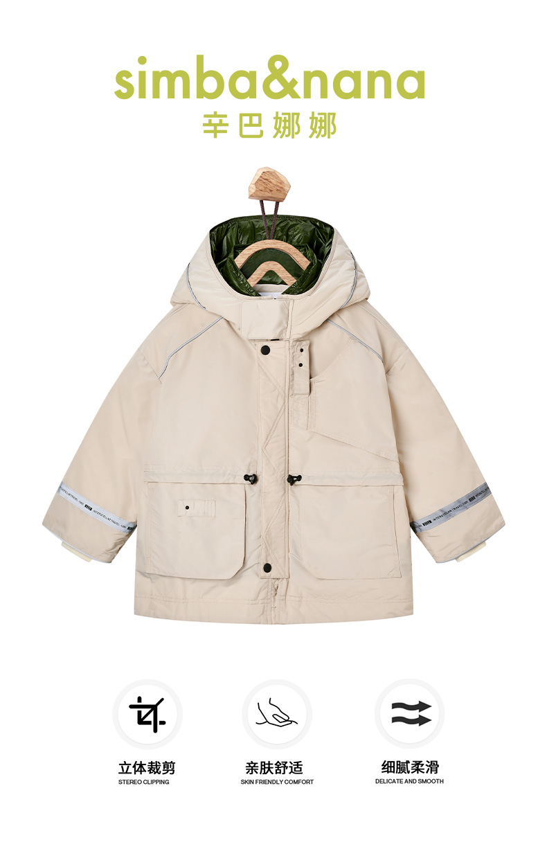 【辛巴娜娜】simbanana【大童】冬季新款羽绒服男童中大童连帽工装口袋外套