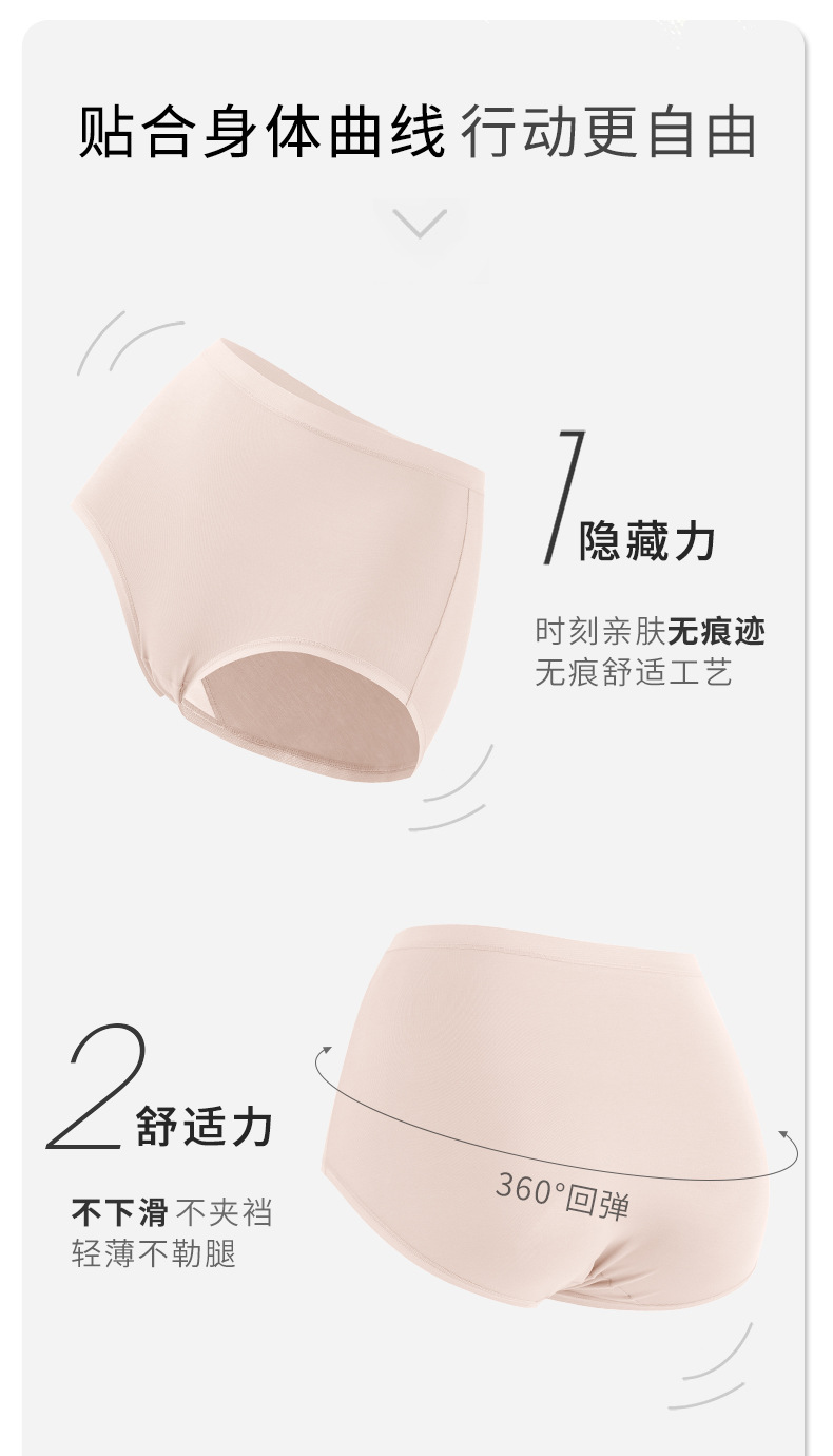 雀说 【3条】含蚕丝底裆莫代尔高腰内裤女士QS9138 (可穿80-175斤)