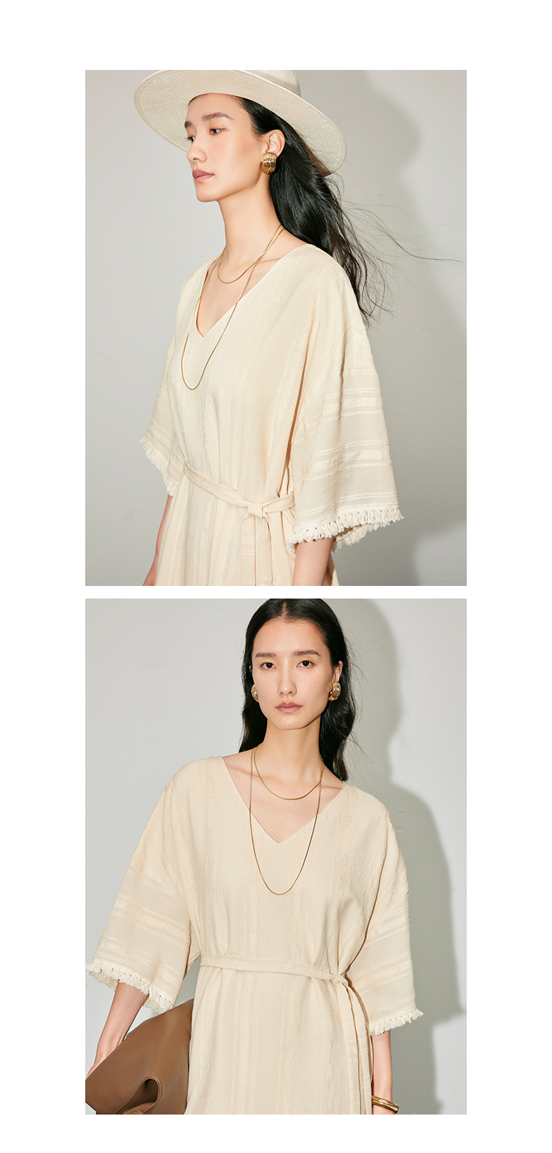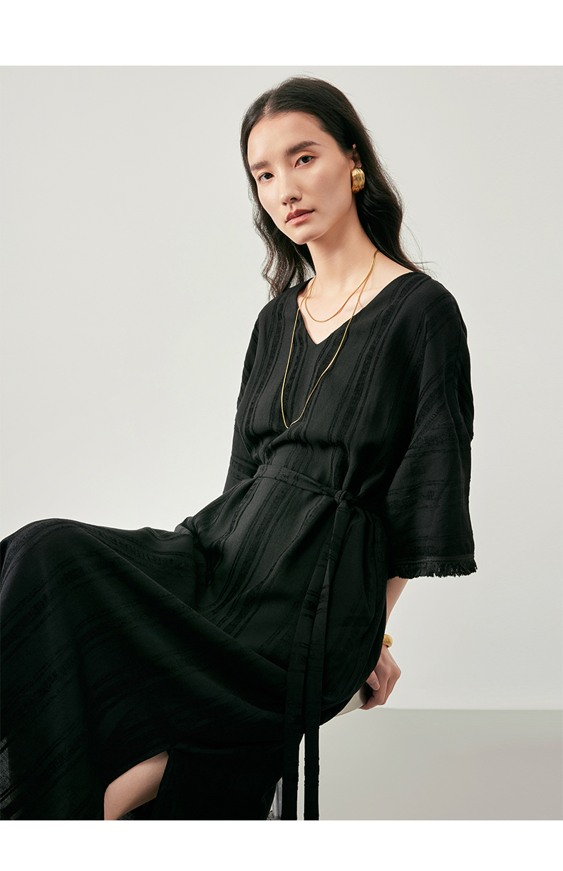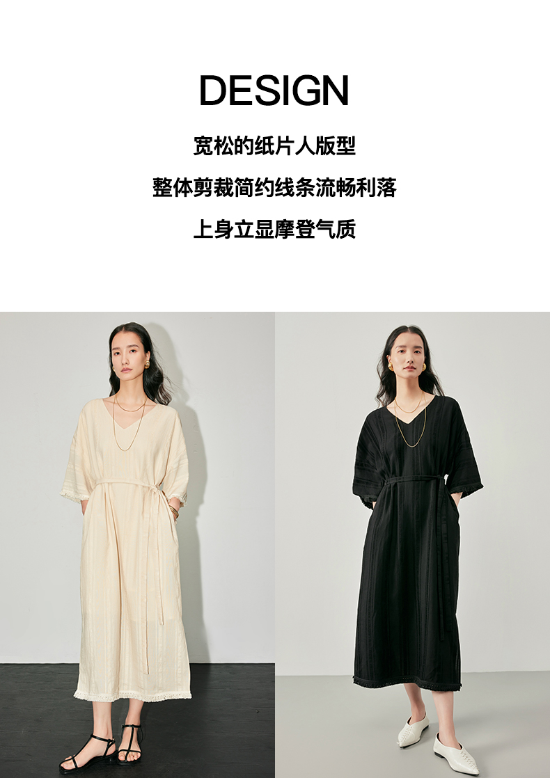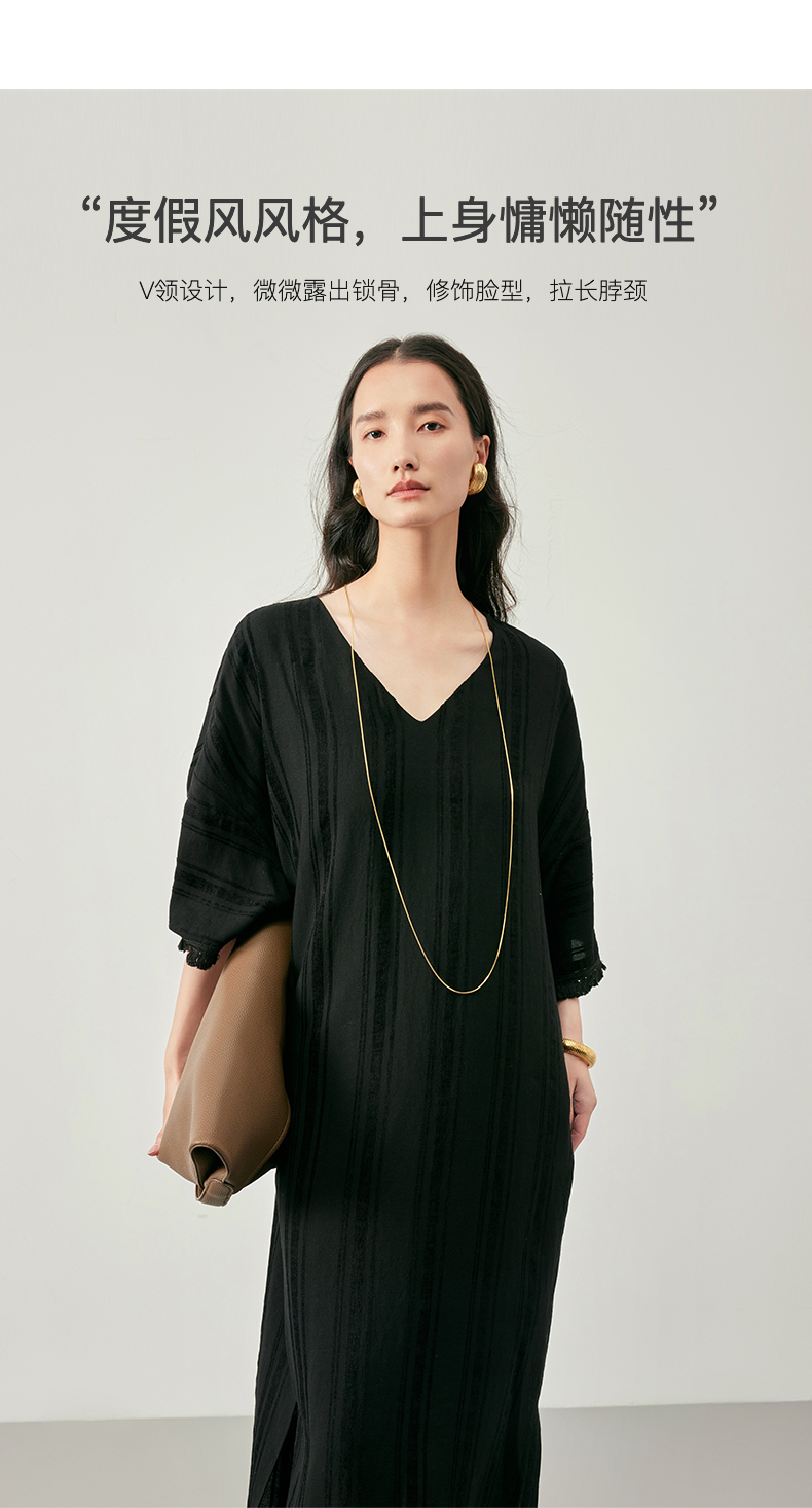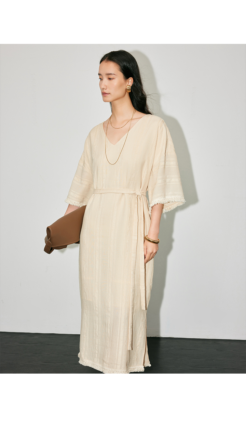 IN AND ON 浪漫慵懒 宽松V领开衩度假流苏连衣裙 53405