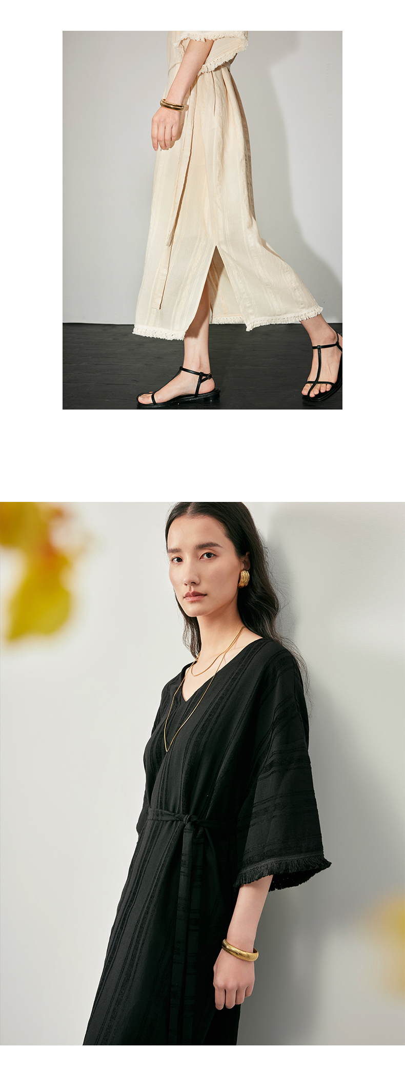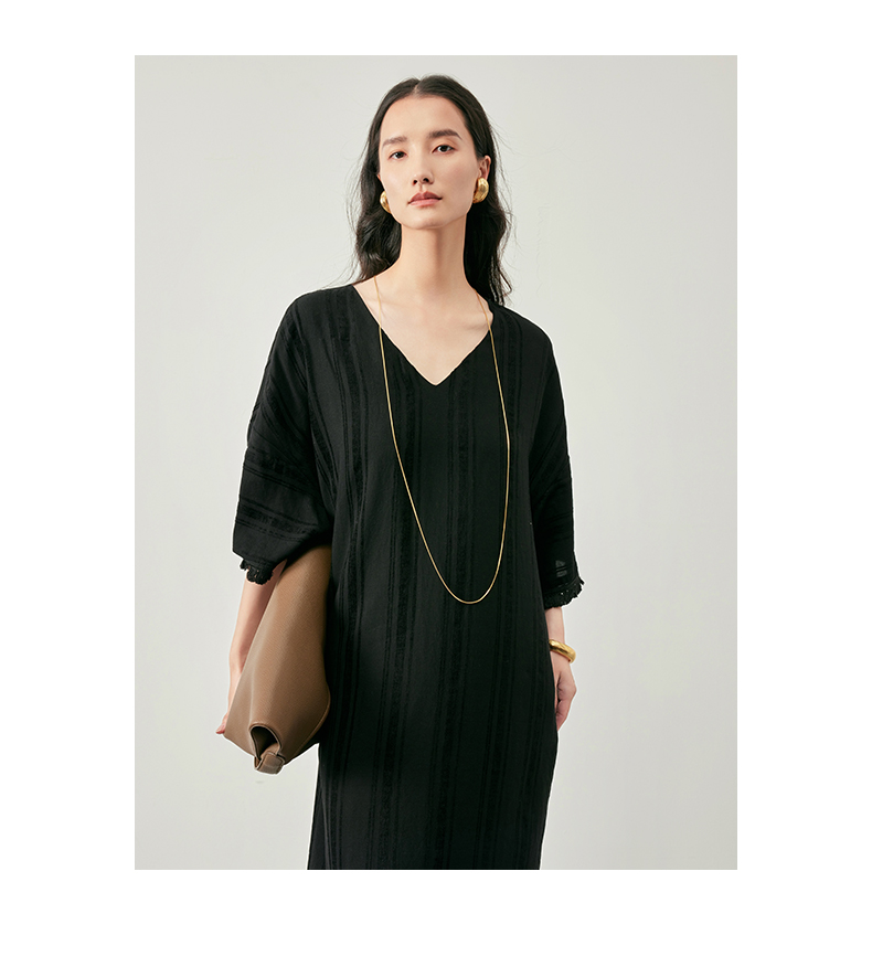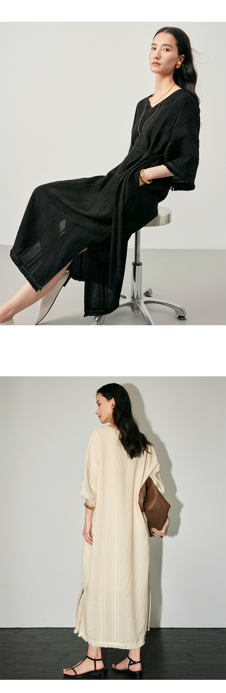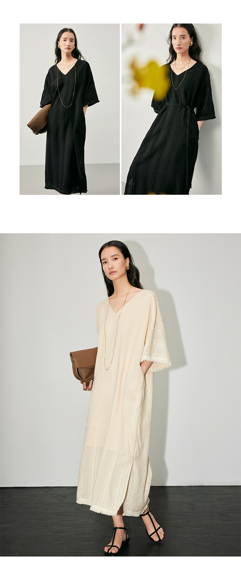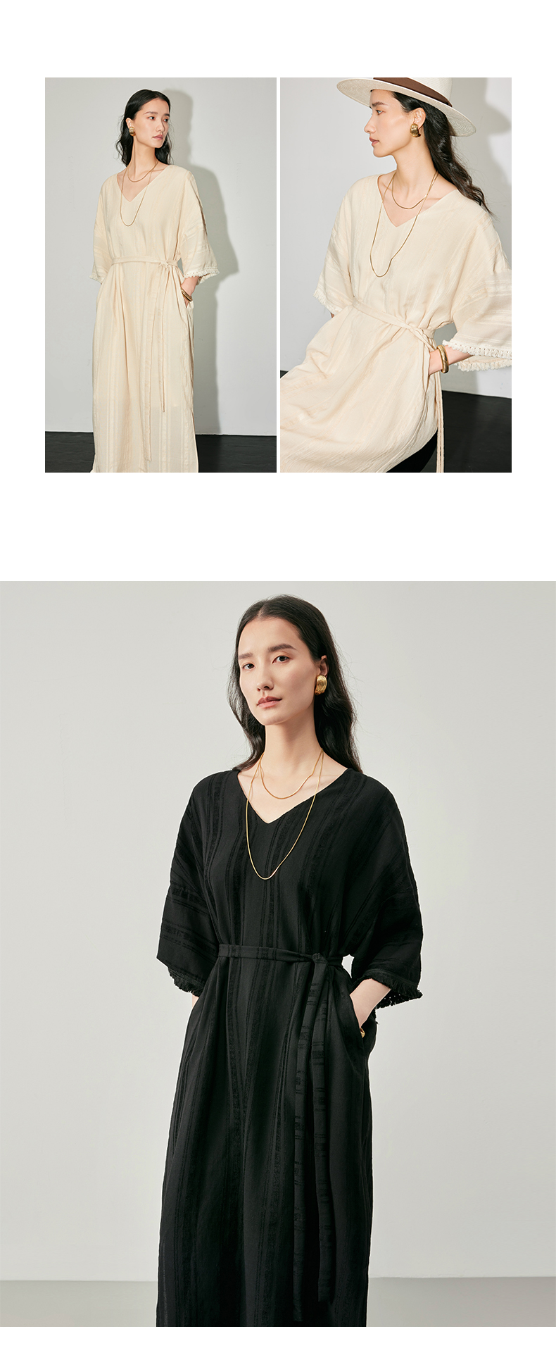 IN AND ON 浪漫慵懒 宽松V领开衩度假流苏连衣裙 53405