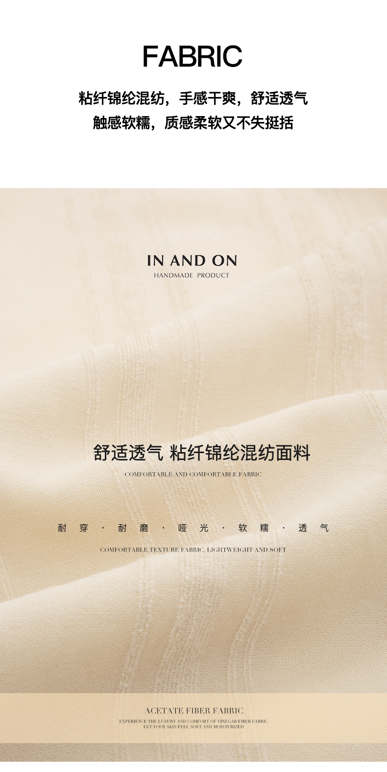 IN AND ON—轻奢时尚品牌,以“致力于做你衣柜永远不肯丢掉的那一件”作为品牌理念,打造“轻奢时尚”的品牌定位。拥有时尚前沿的商品设计能力并将品质与价值进行完美平衡,致力为消费者提供舒适与奢华、创新与智能的完美购物体验。塑造独立自主的女性形象,让每个人都能拥有属于自己的时尚风格。