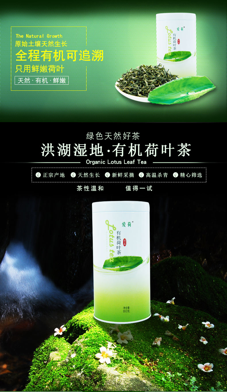 荆裕优选爱荷有机荷叶茶罐装80g