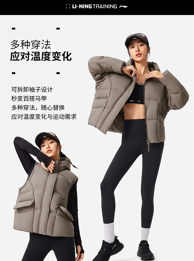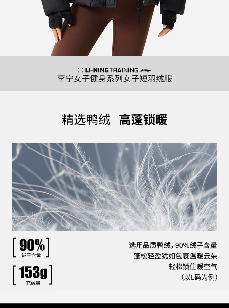 【S/M断码】李宁健身系列女子宽松90%鸭绒短羽绒服AYMU086【库存有限,如无货将做退款,介意慎拍】