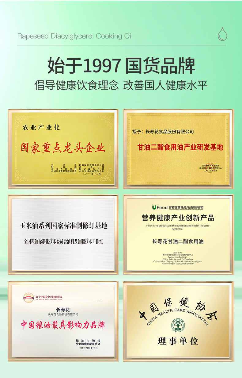 长寿花轻酯甘油二酯食用油50%DAG含量 1L*4桶 低芥酸菜籽二酯油家庭装