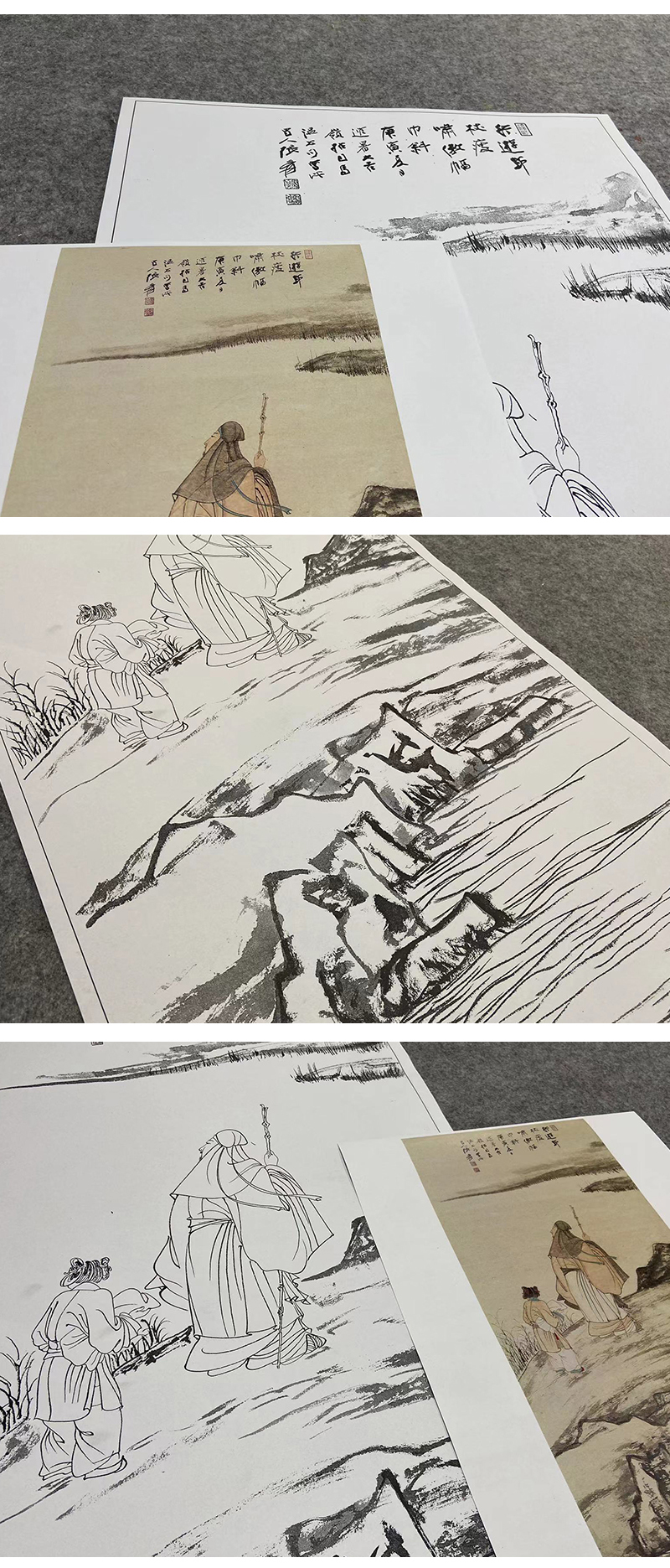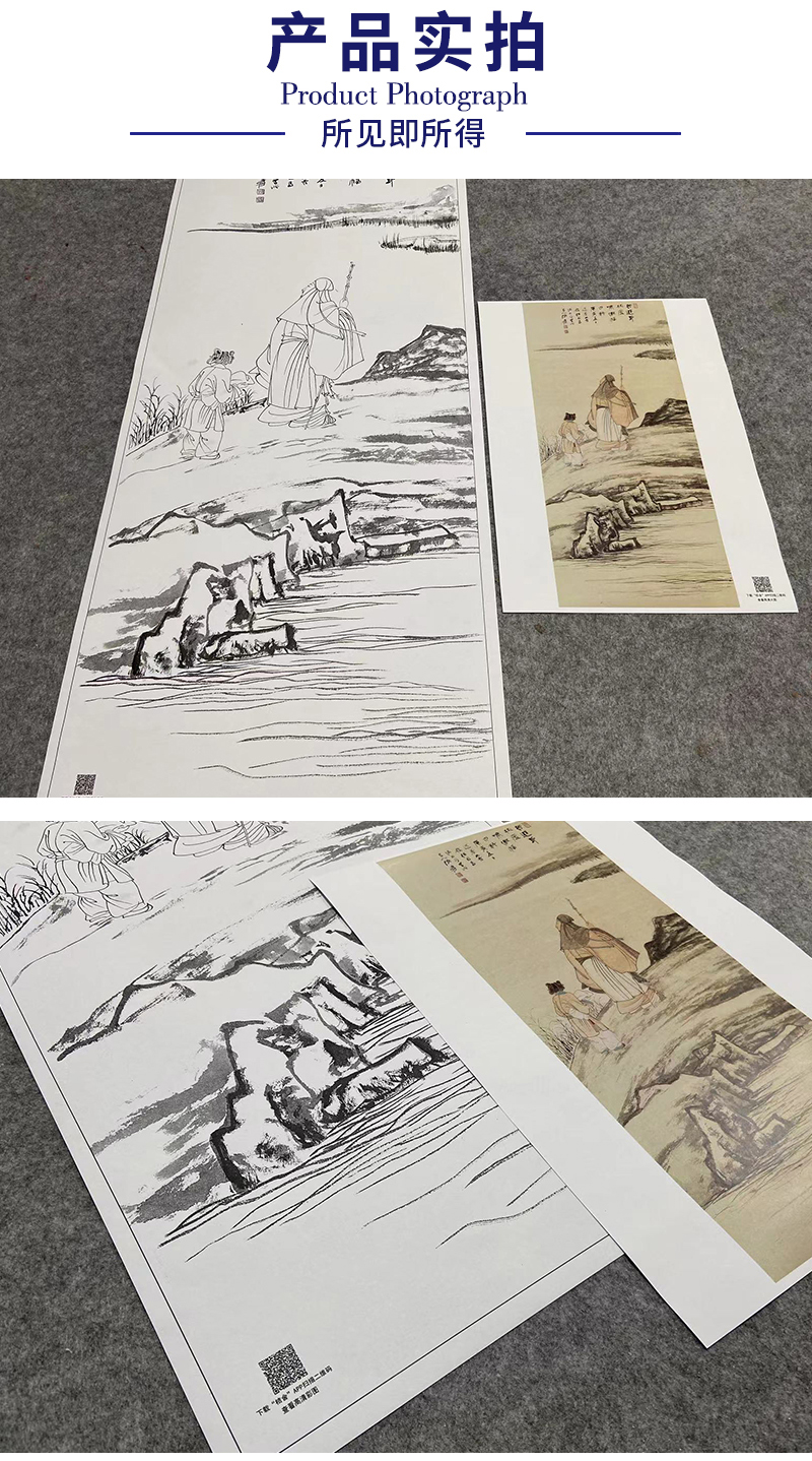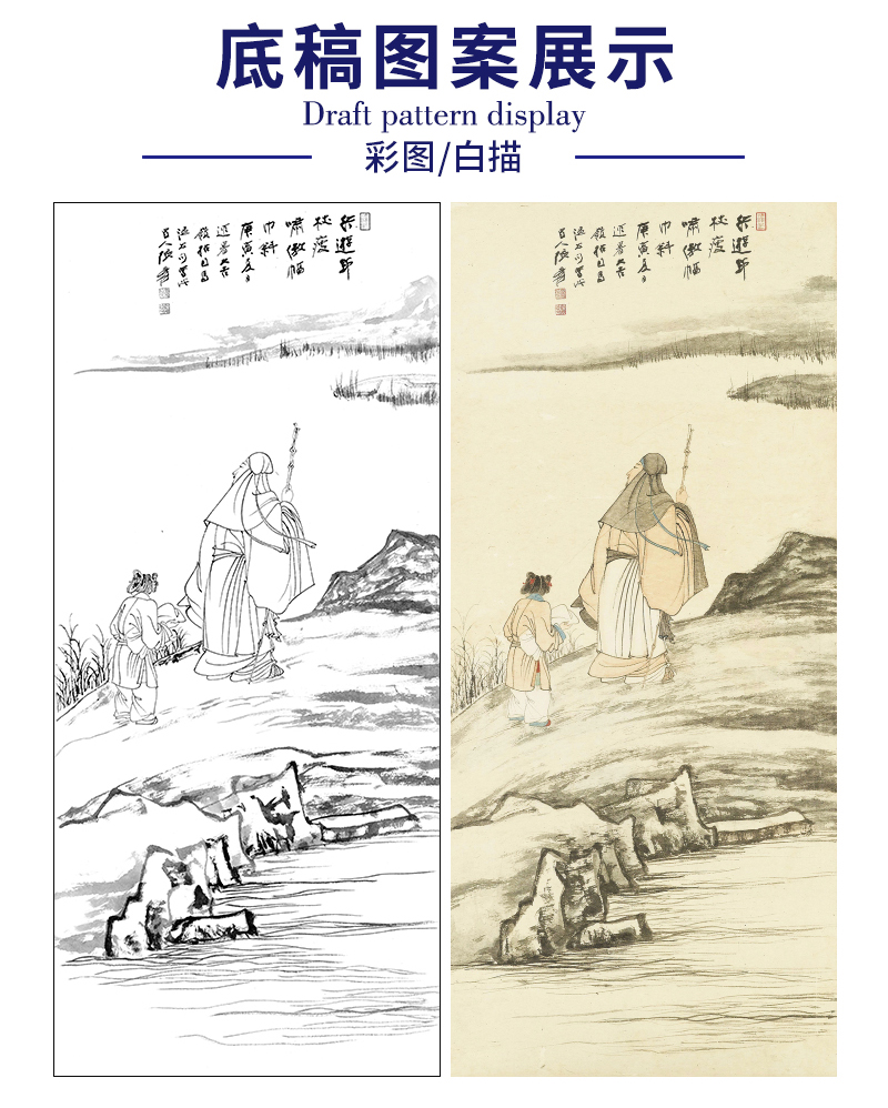 竖幅工笔传统人物白描底稿-杨淑涛飞天仕女仙鹤《献寿图》-多种白描尺寸可选-B051