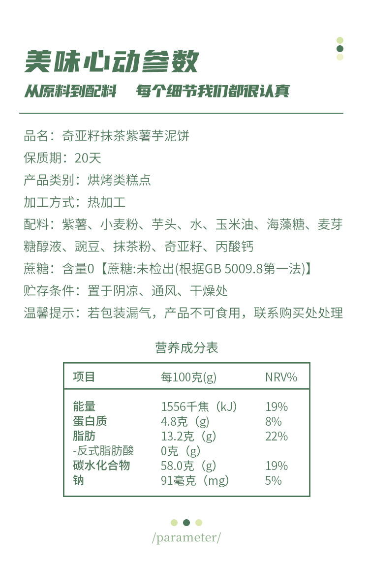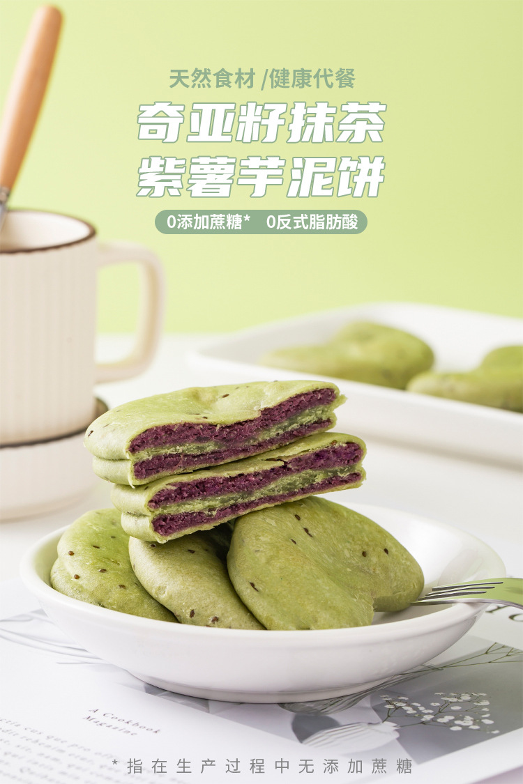 4大好料看得见【0添加蔗糖!0添加反式脂肪酸】奇亚籽抹茶紫薯芋泥饼无蔗糖健康代餐食品糕点心休闲网红零食。ha