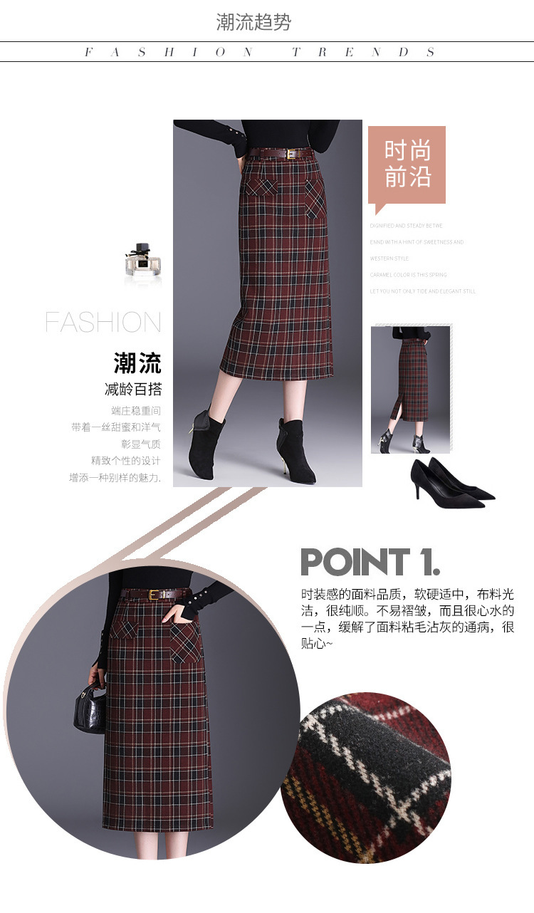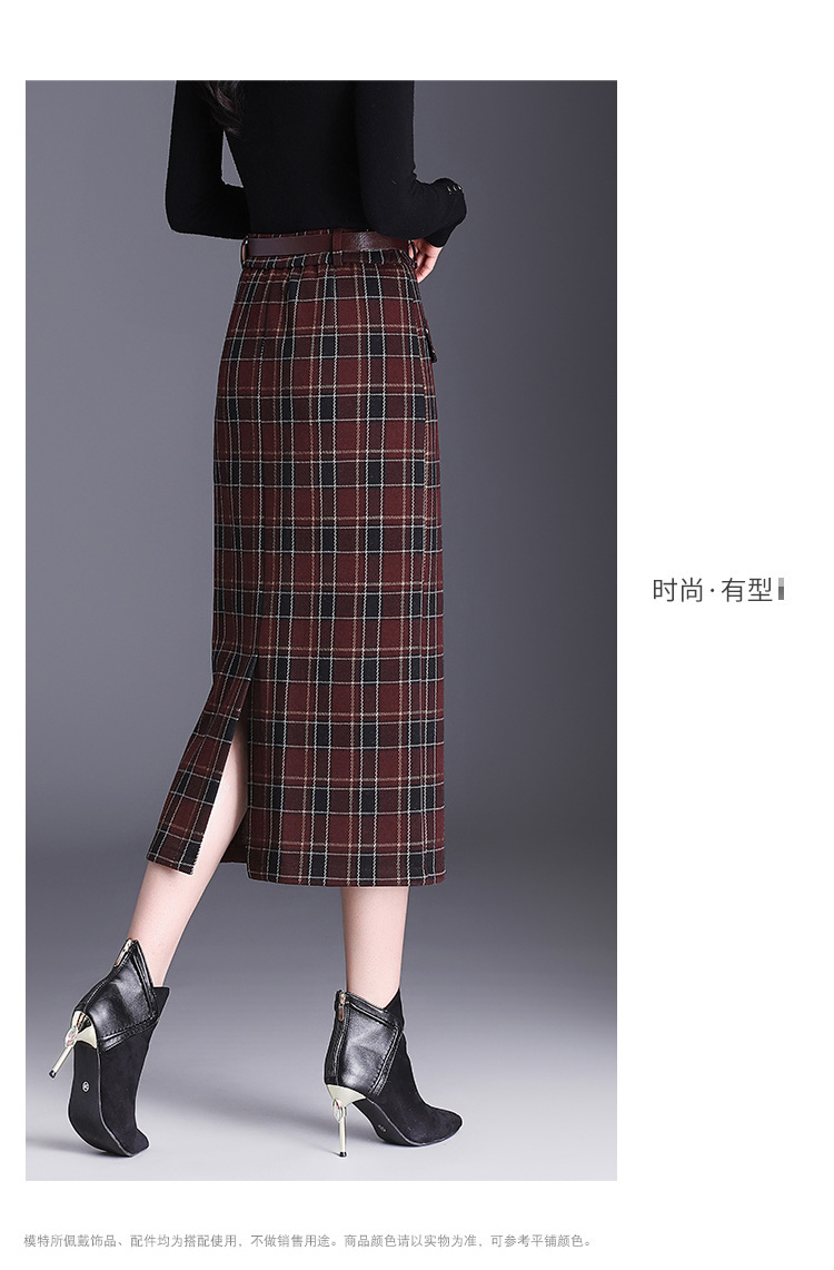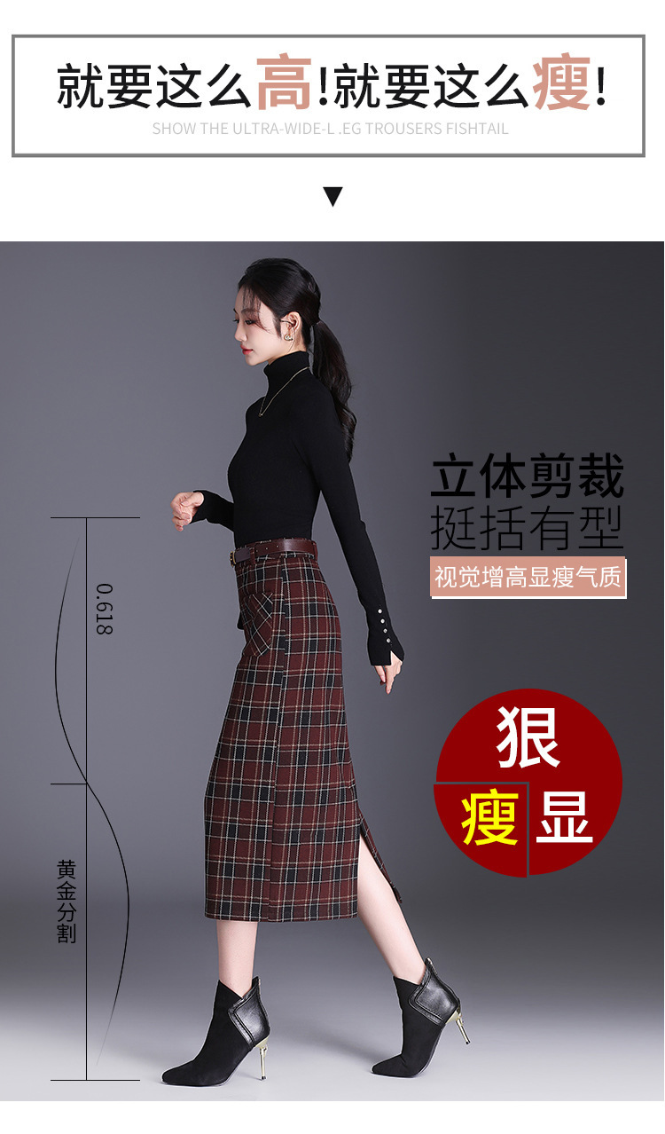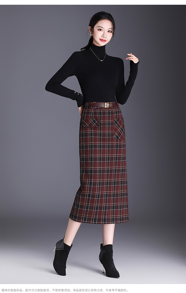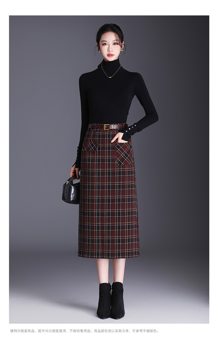 KYL-99836-L 复古格子修身时尚直筒裙24年秋冬款长款显瘦高腰包臀裙洋气半身裙