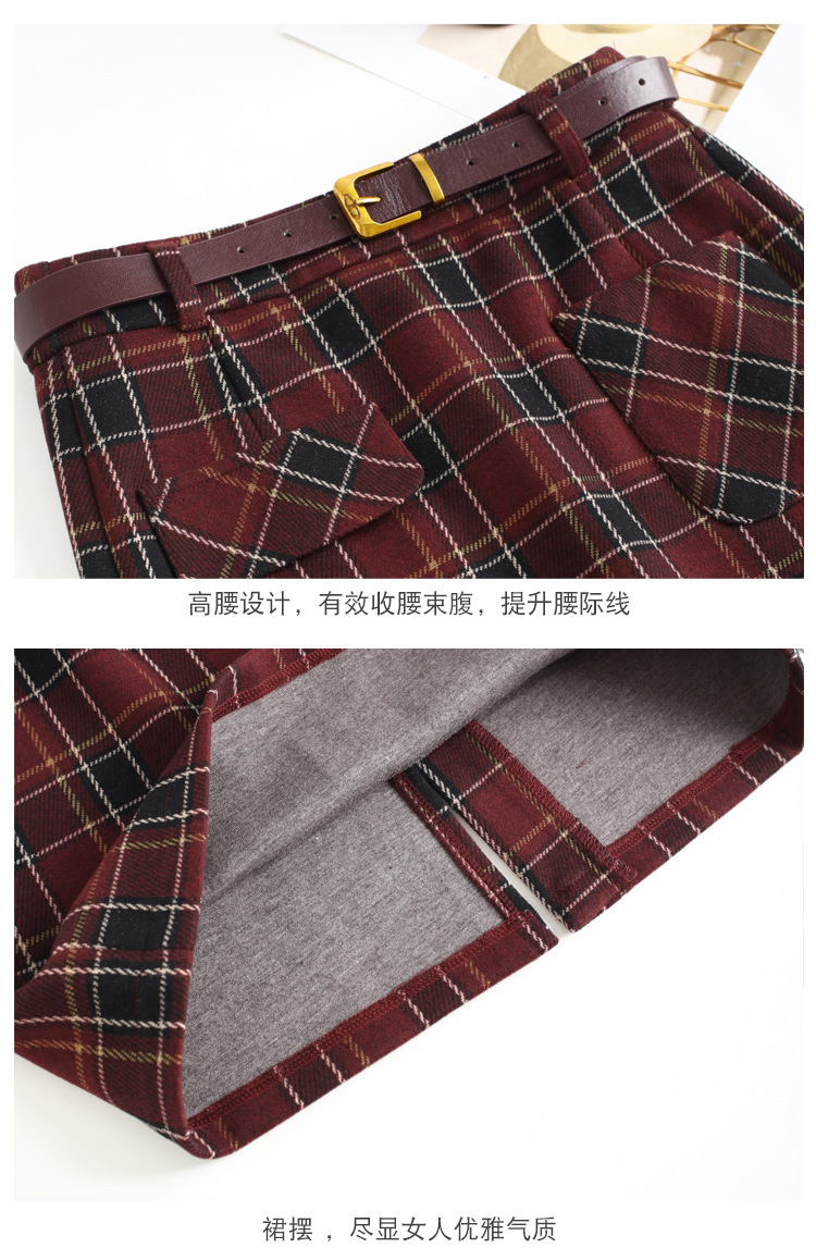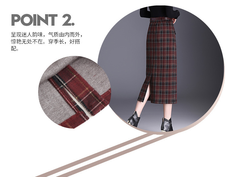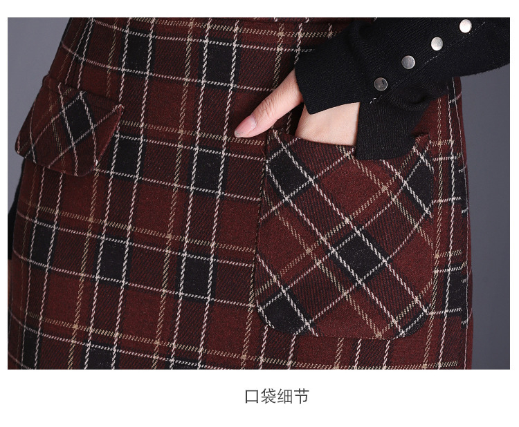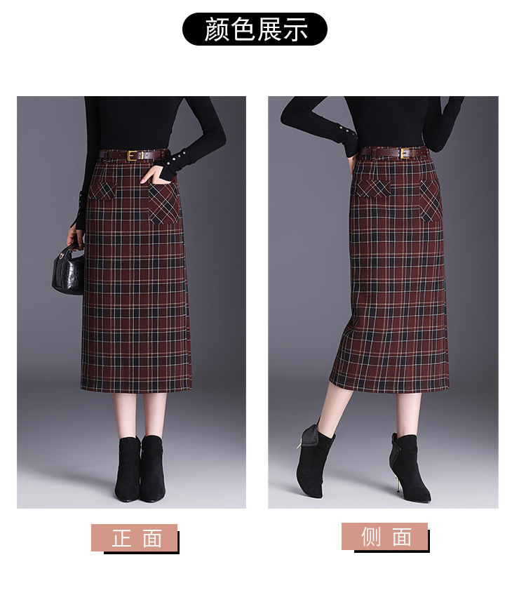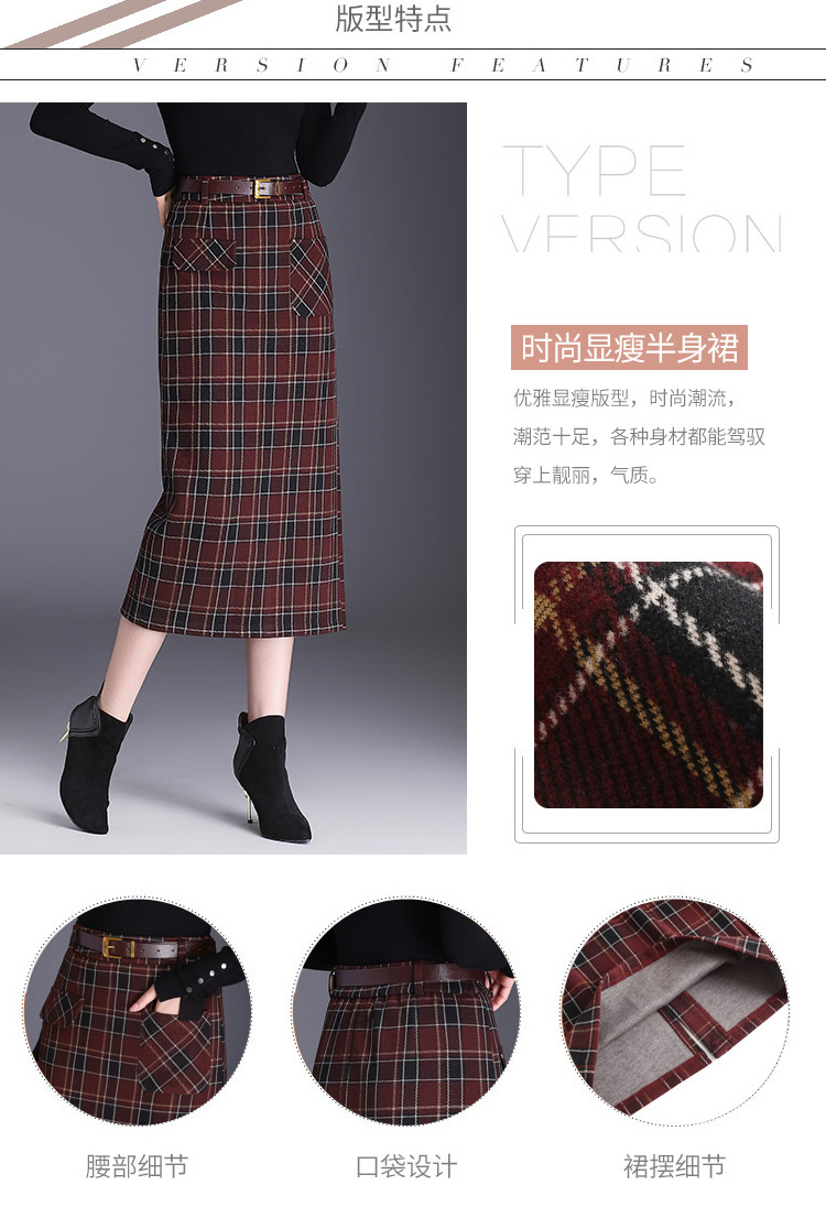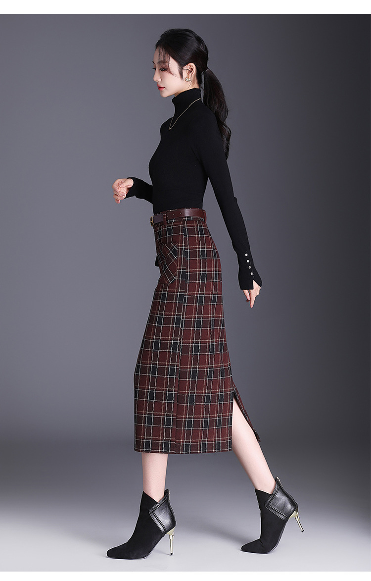 KYL-99836-L 复古格子修身时尚直筒裙24年秋冬款长款显瘦高腰包臀裙洋气半身裙