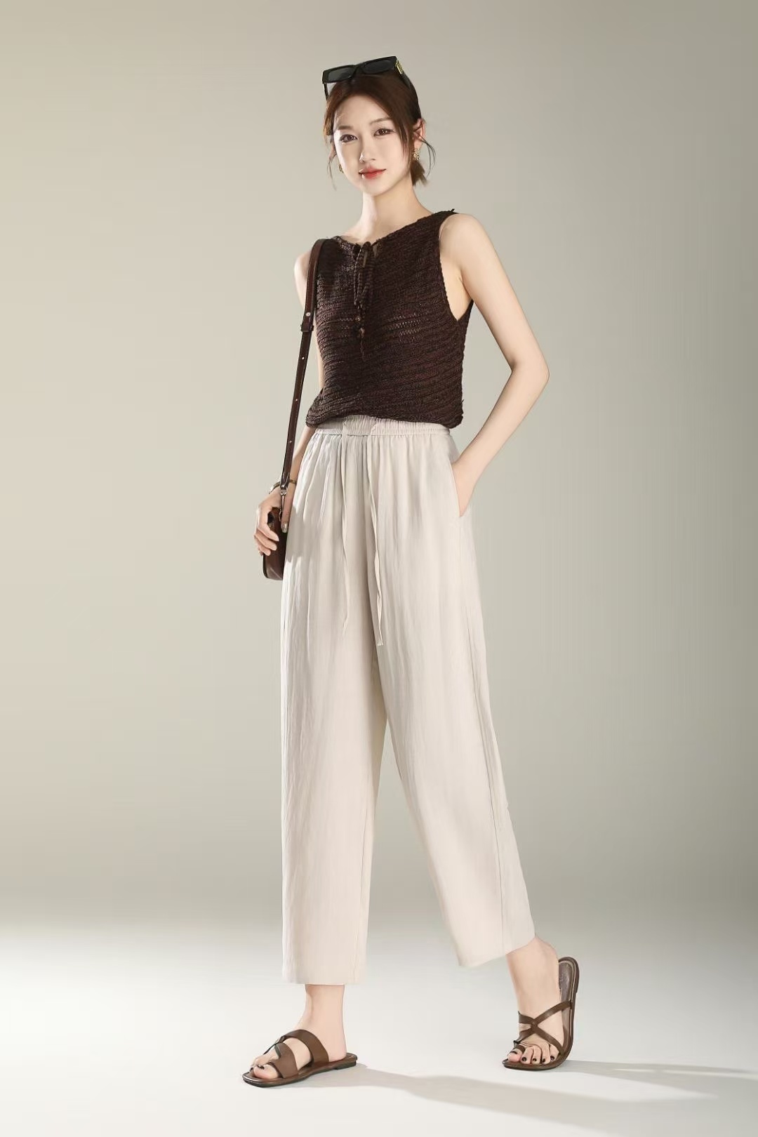 【品名】LS竹纤维女士时尚亚麻气球裤1666