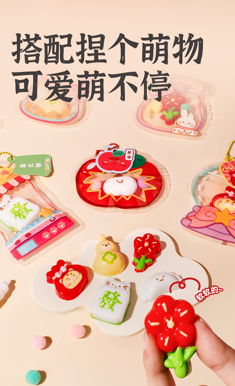 儿童新年春节硅胶DIY捏捏乐 Onshine童年无限好运连连手工材料包儿童自制糯滋滋新年玩具