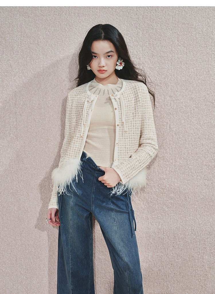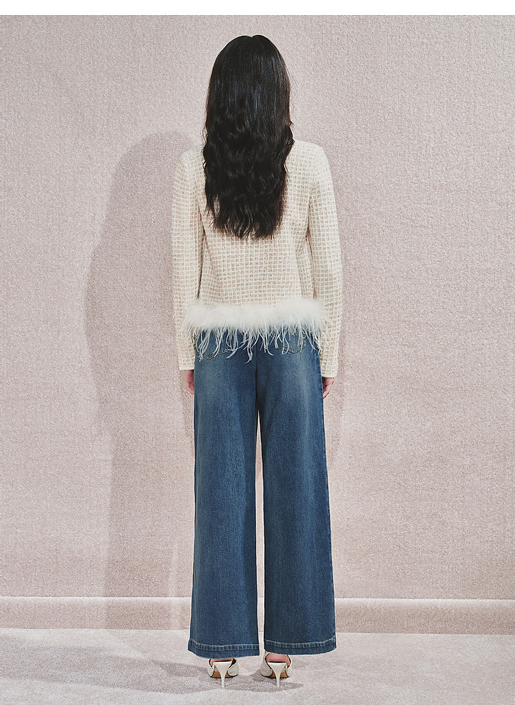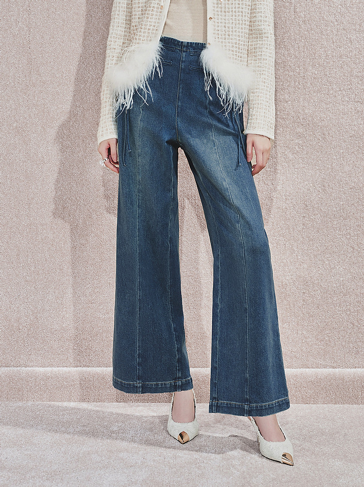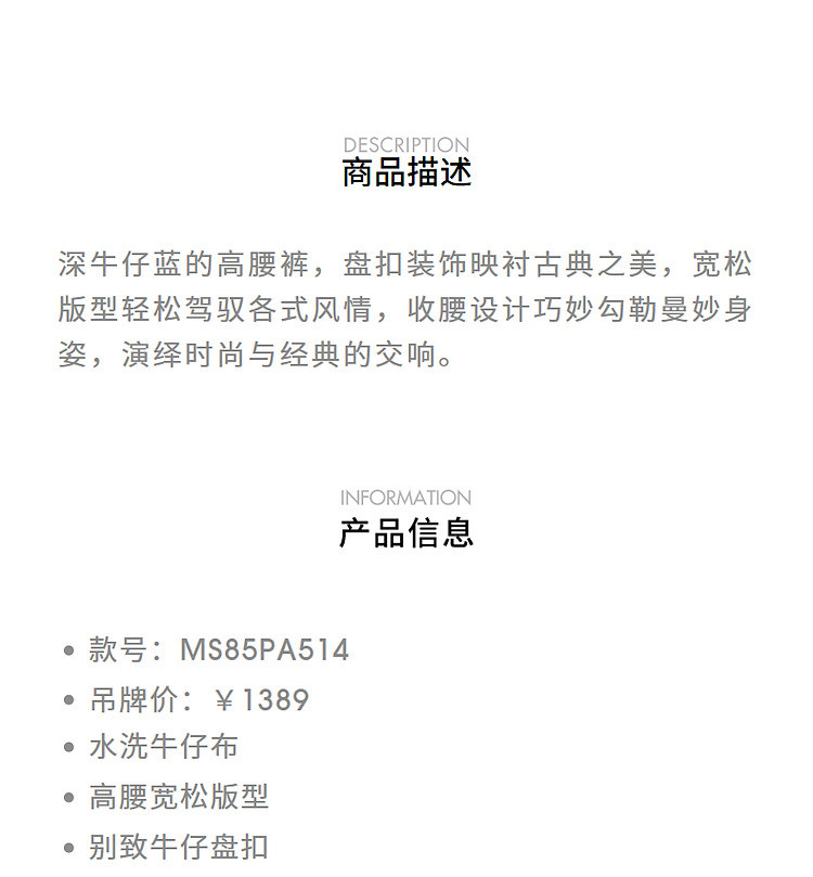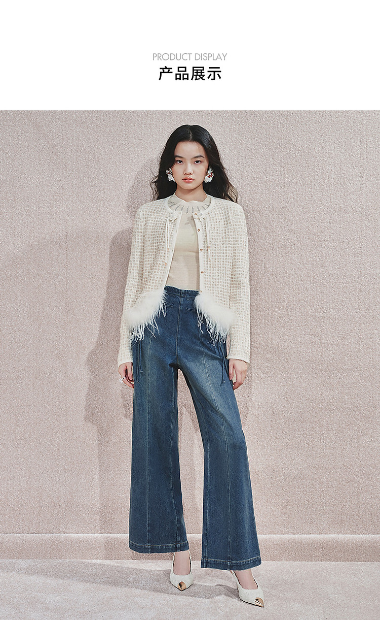 MAXRIENY精致日常感高腰显瘦复古盘扣牛仔长裤女2024秋冬新款