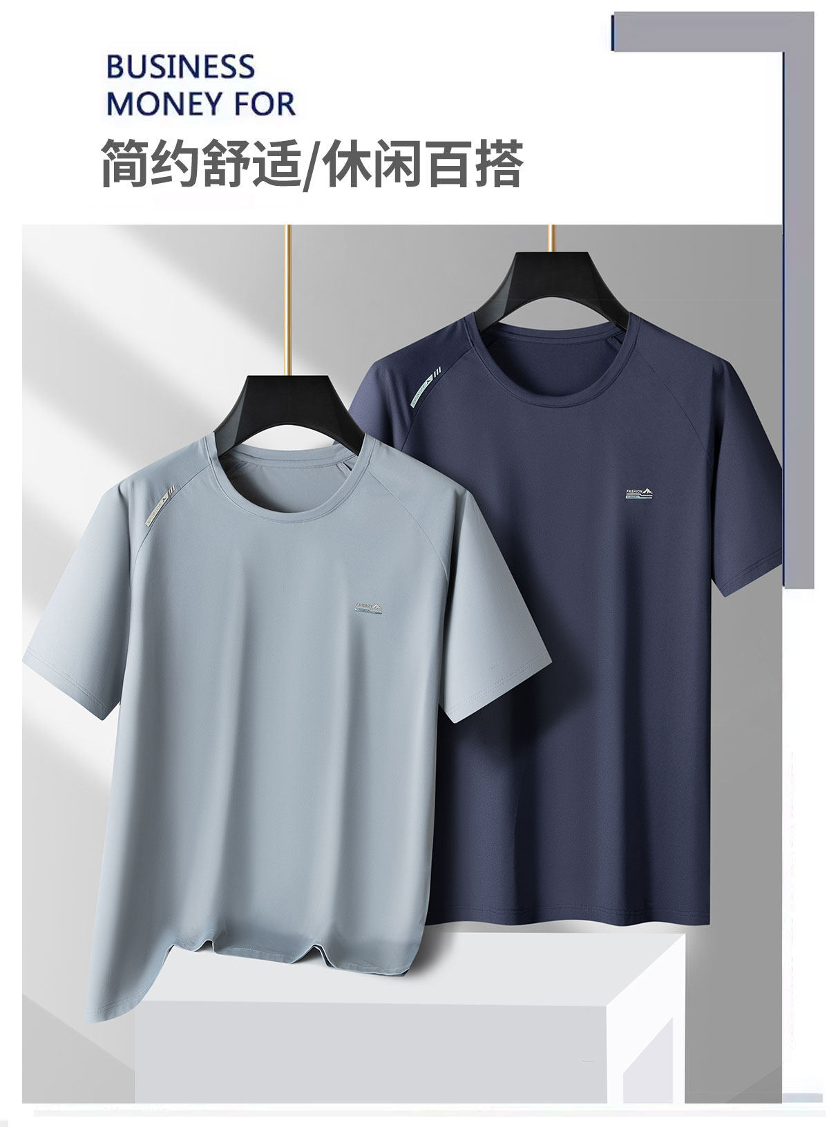 【DPS】大依优型大码男装夏季冰丝圆领短袖T恤运动休闲上衣半袖男士