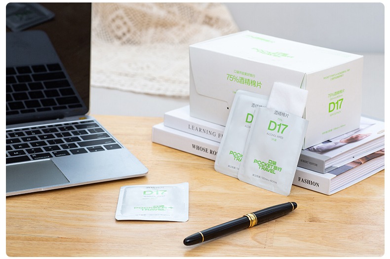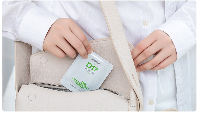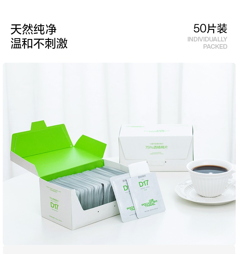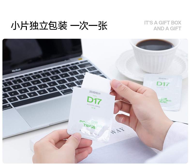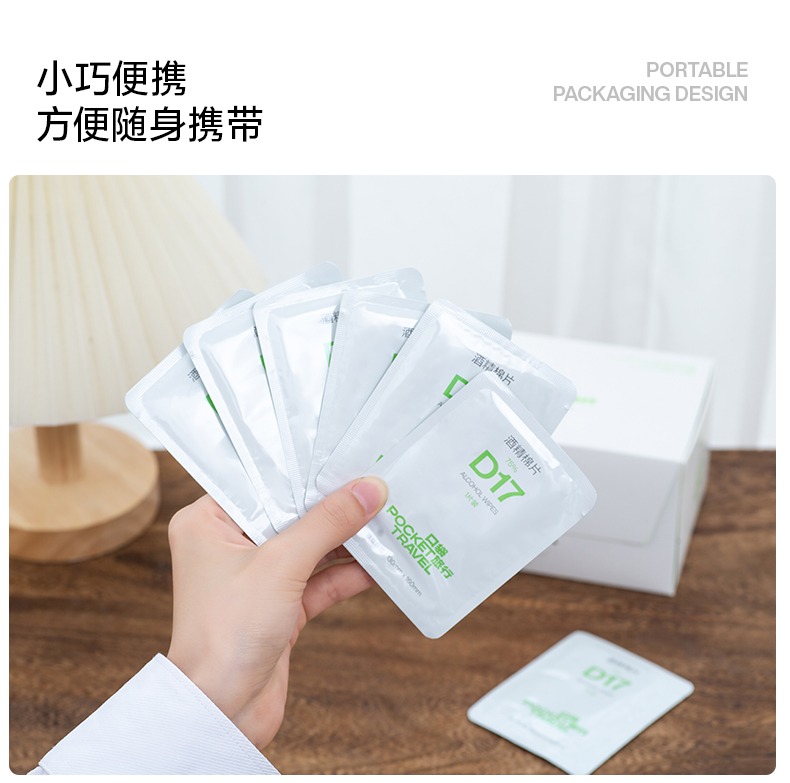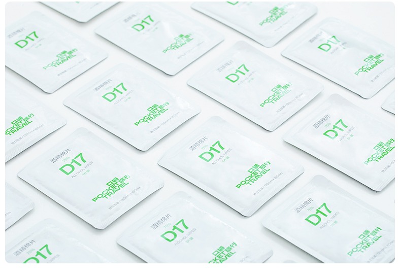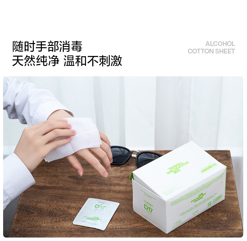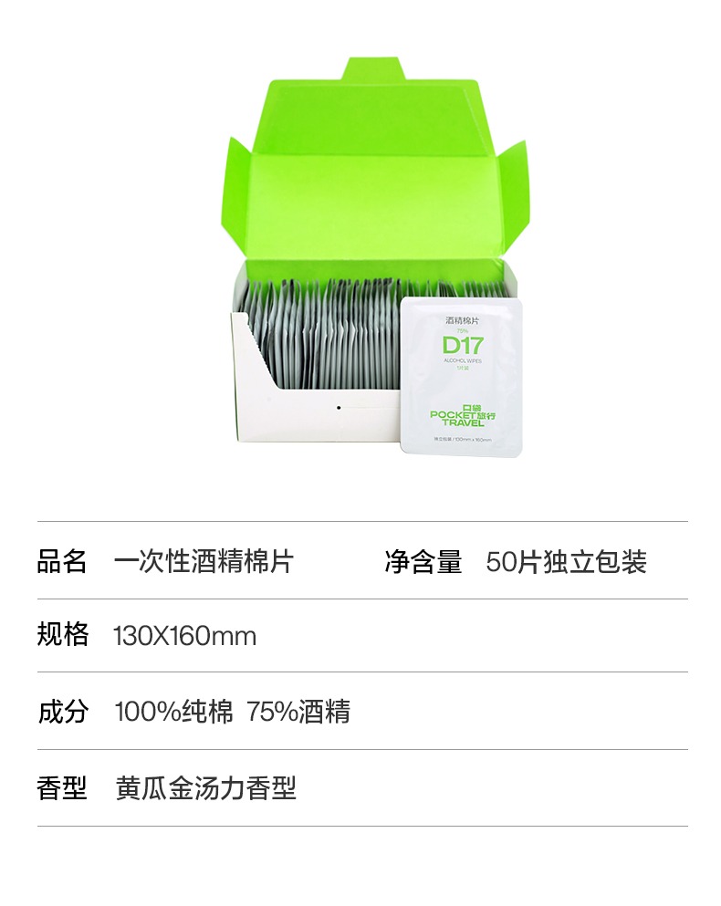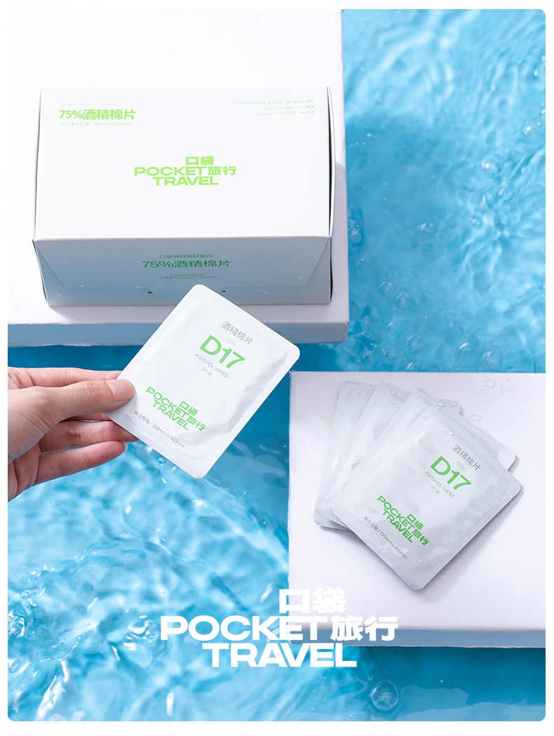 口袋旅行 一次性酒精清洁湿巾消毒棉片75%酒精温和杀菌 独立包装随身携带