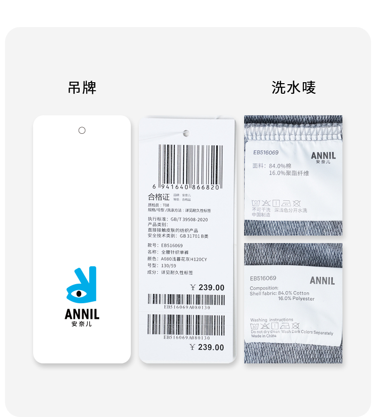 男童全腰针织单裤春季新款安奈儿童装EB516069