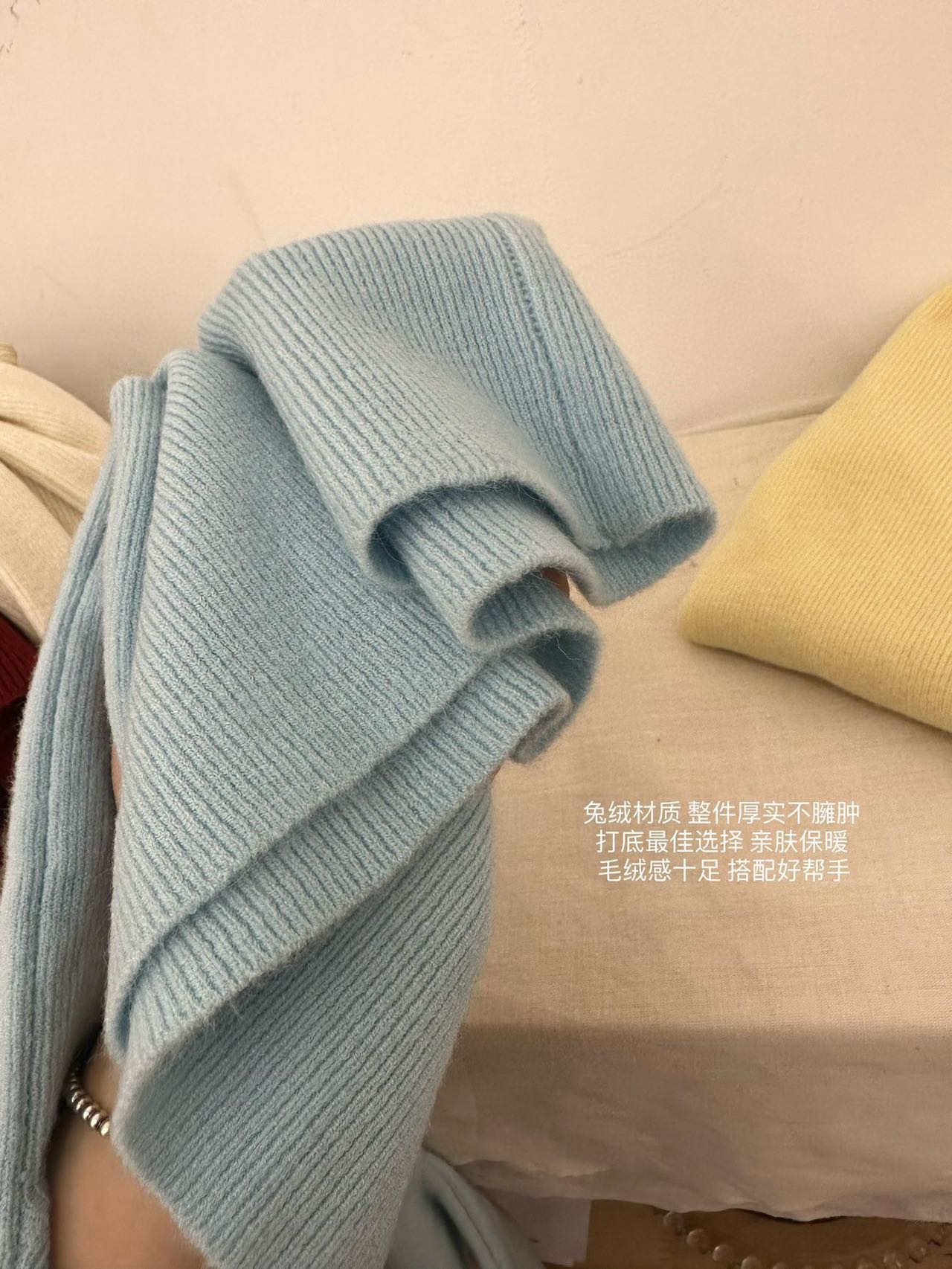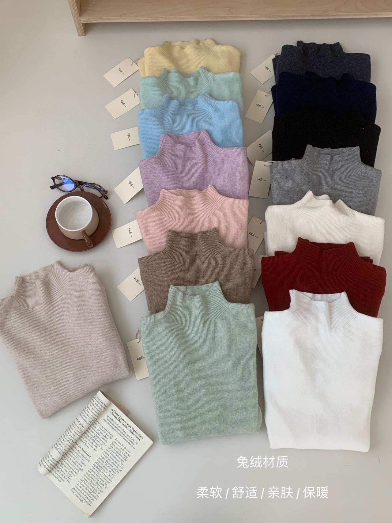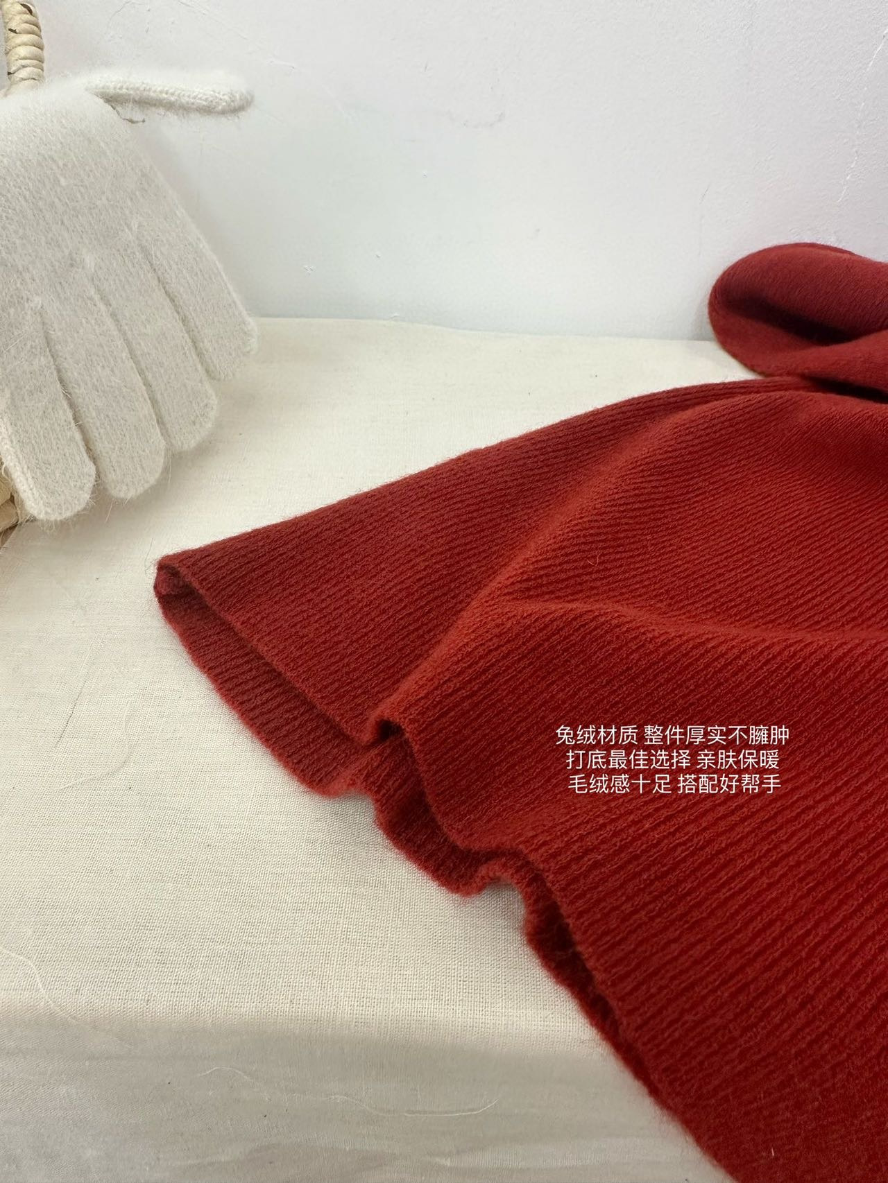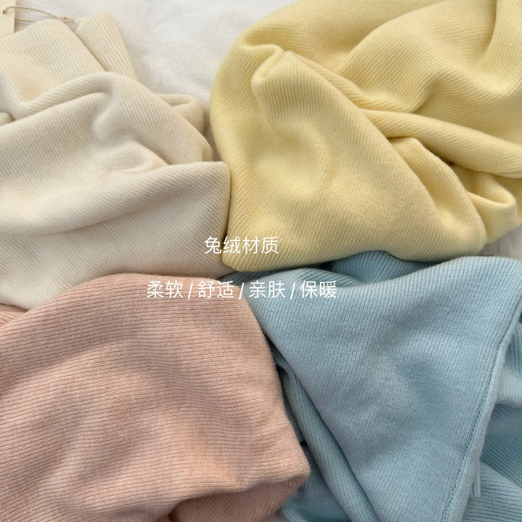含兔绒材质,整件看着毛茸茸!做了抗起球处理!比普通针织打底不容易起球!