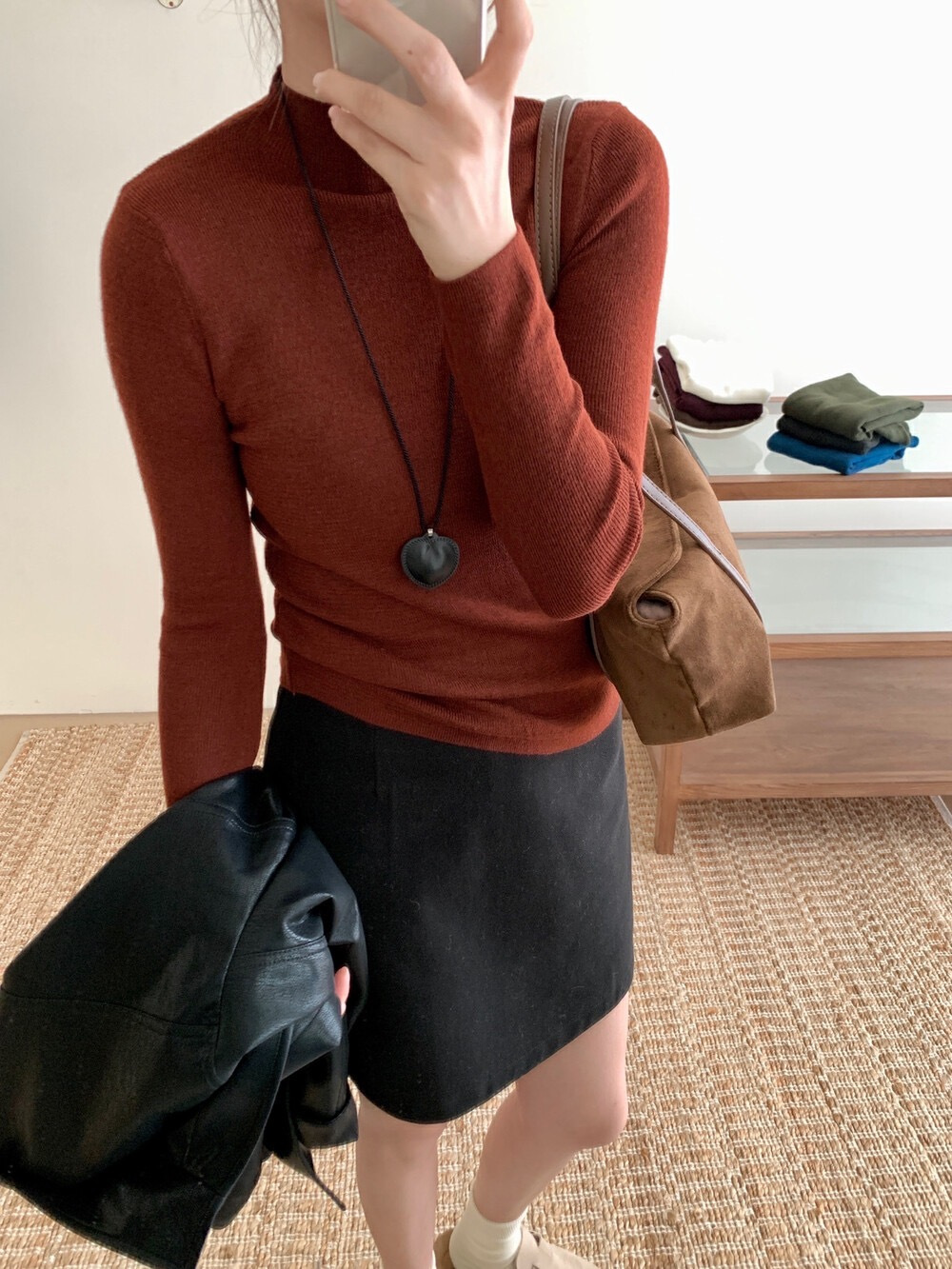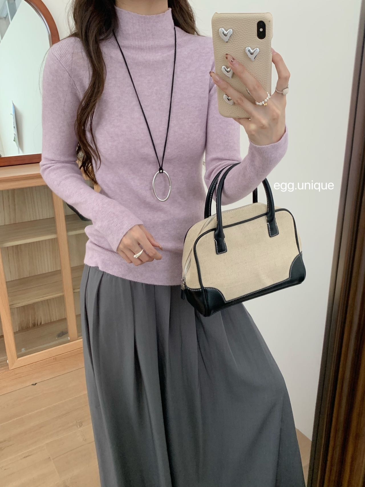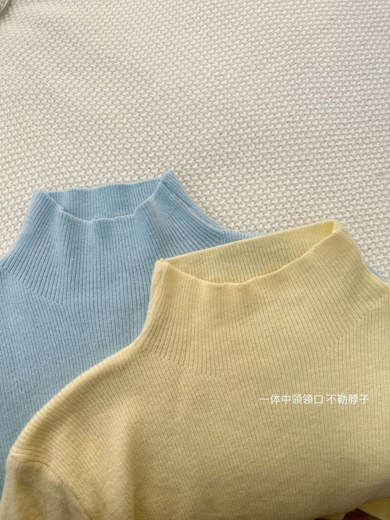 含兔绒材质,整件看着毛茸茸!做了抗起球处理!比普通针织打底不容易起球!