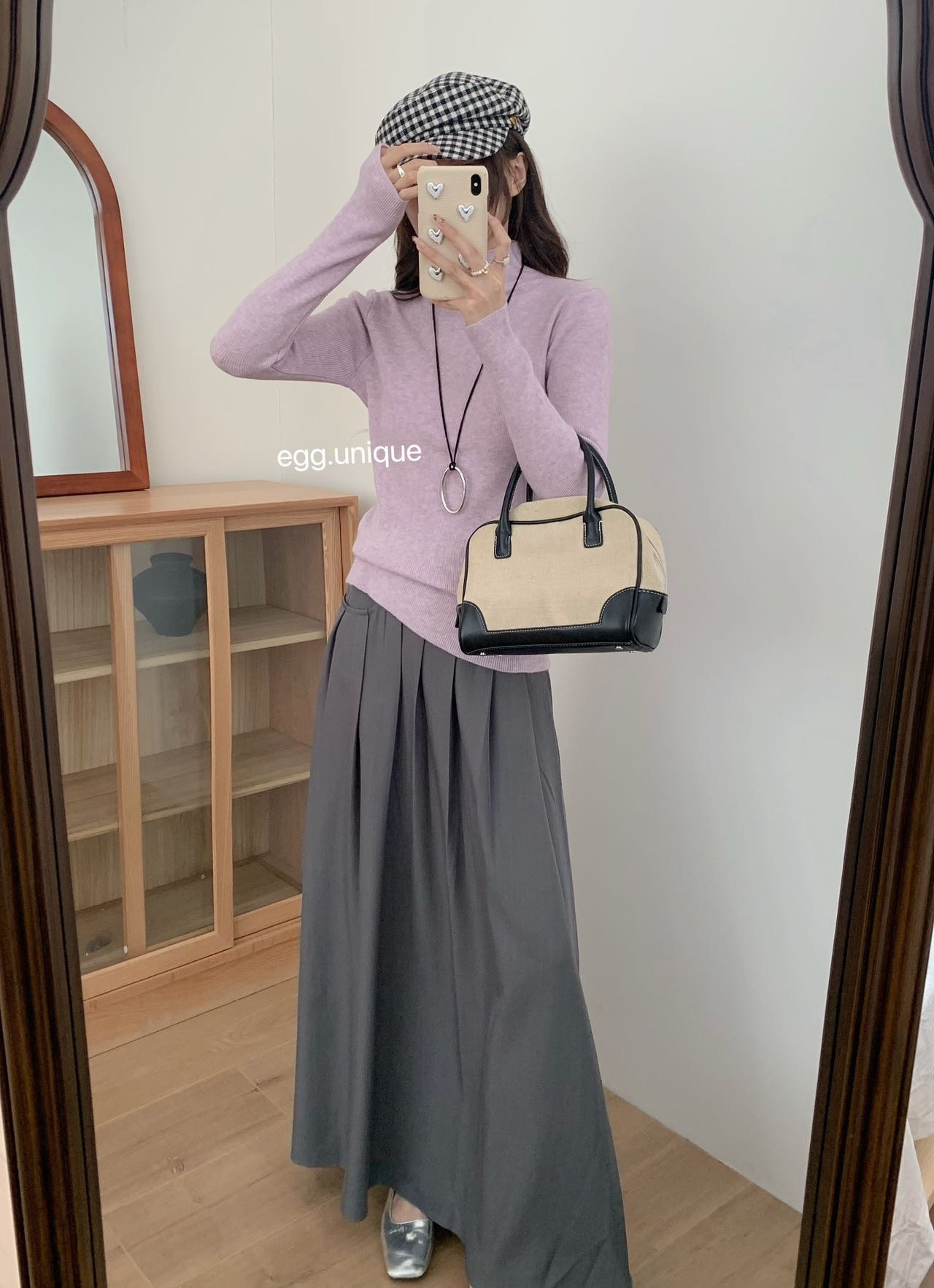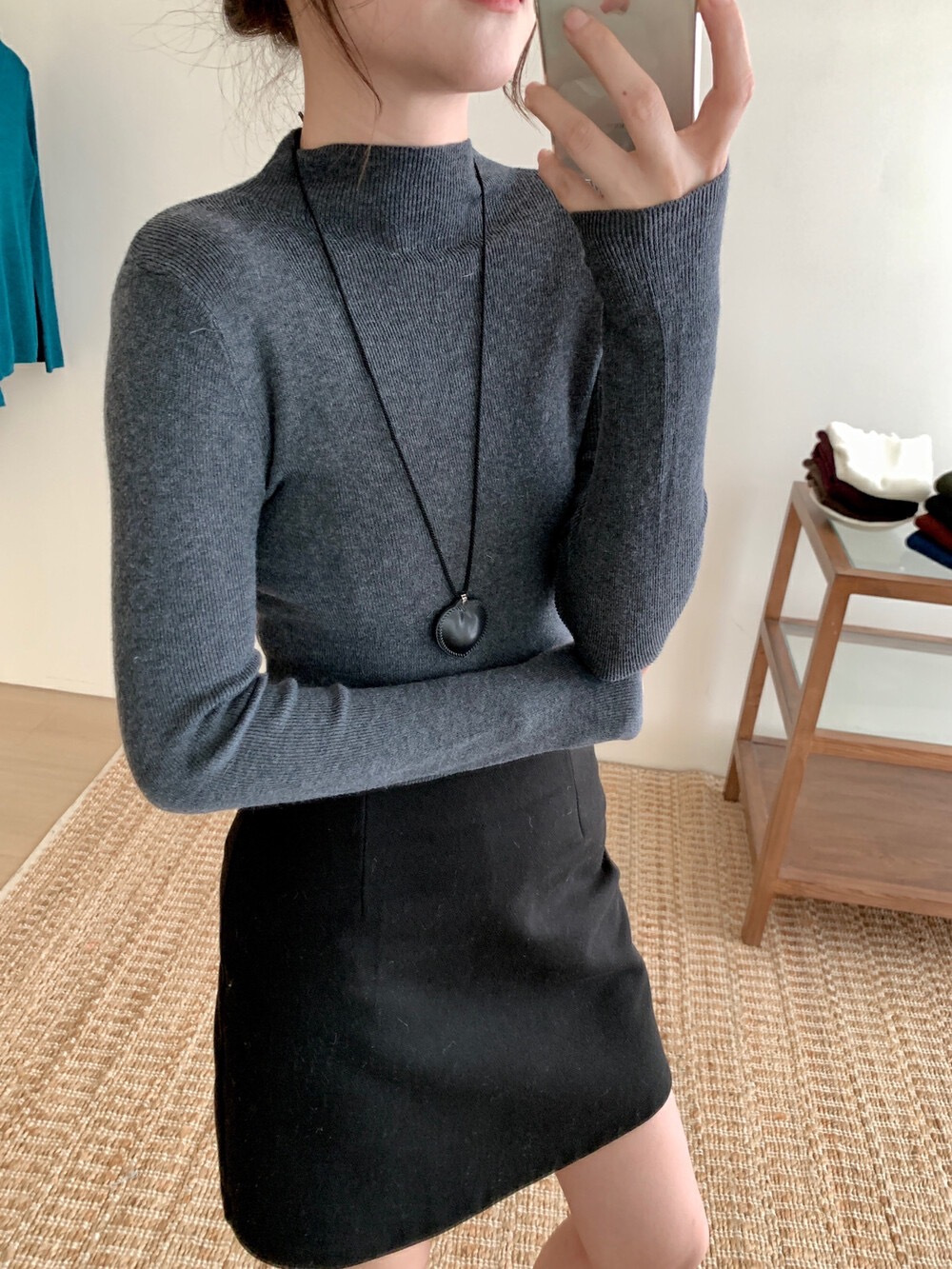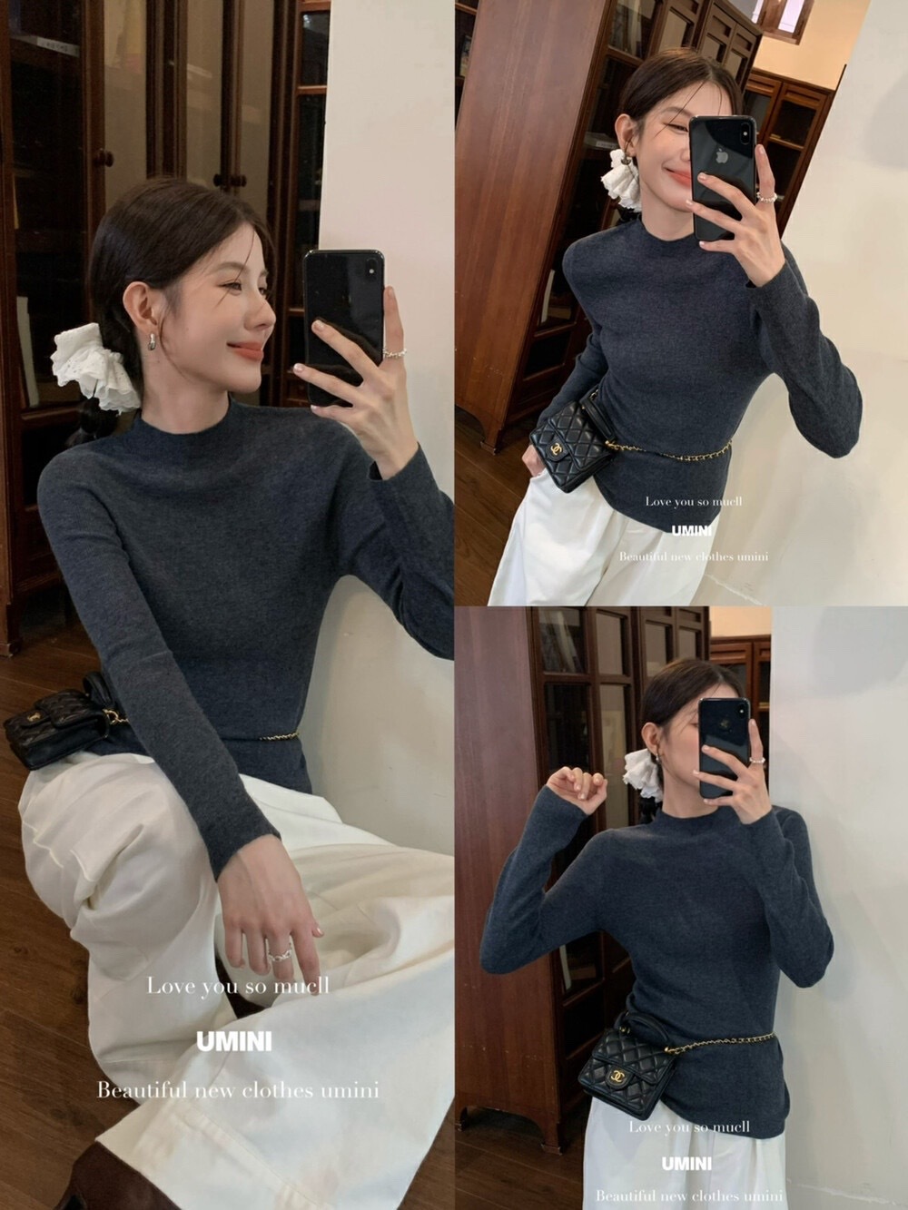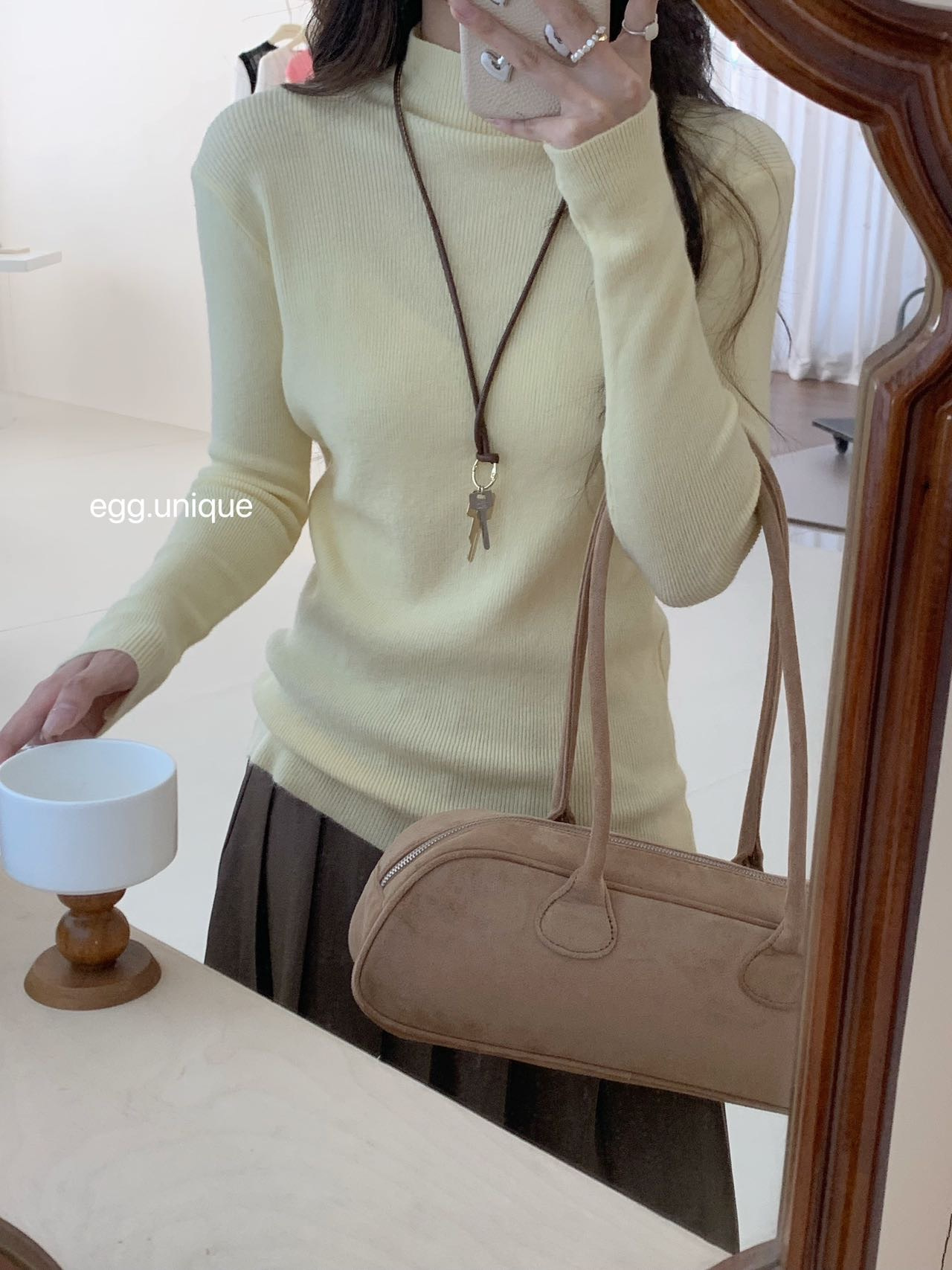 含兔绒材质,整件看着毛茸茸!做了抗起球处理!比普通针织打底不容易起球!